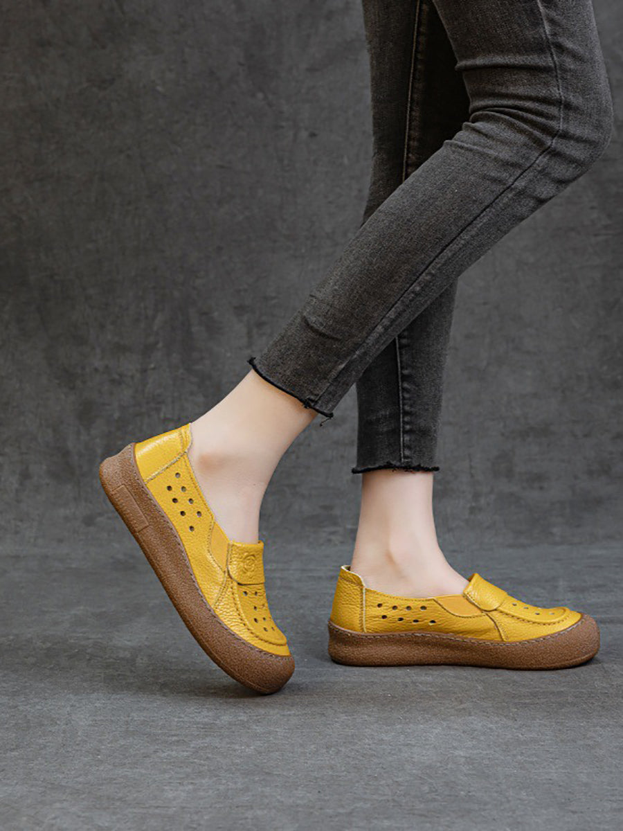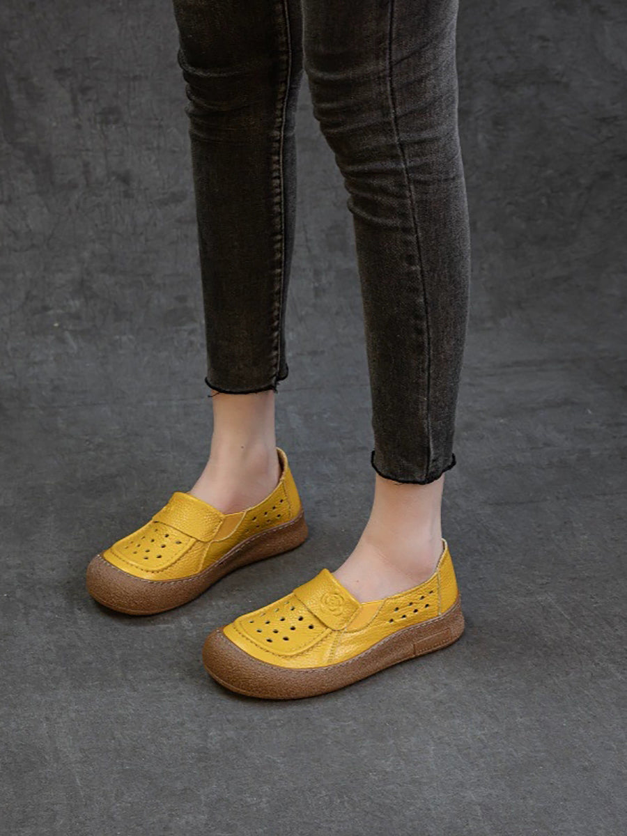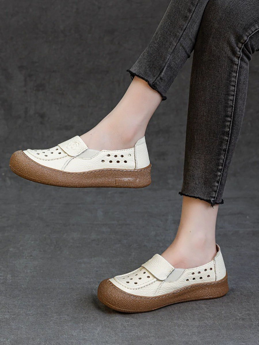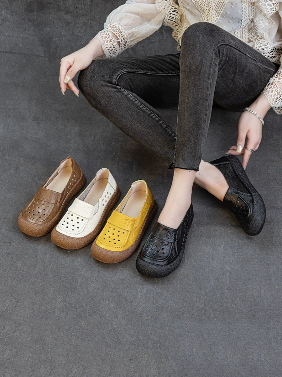 Zapatos planos calados de cuero genuino de verano para mujer