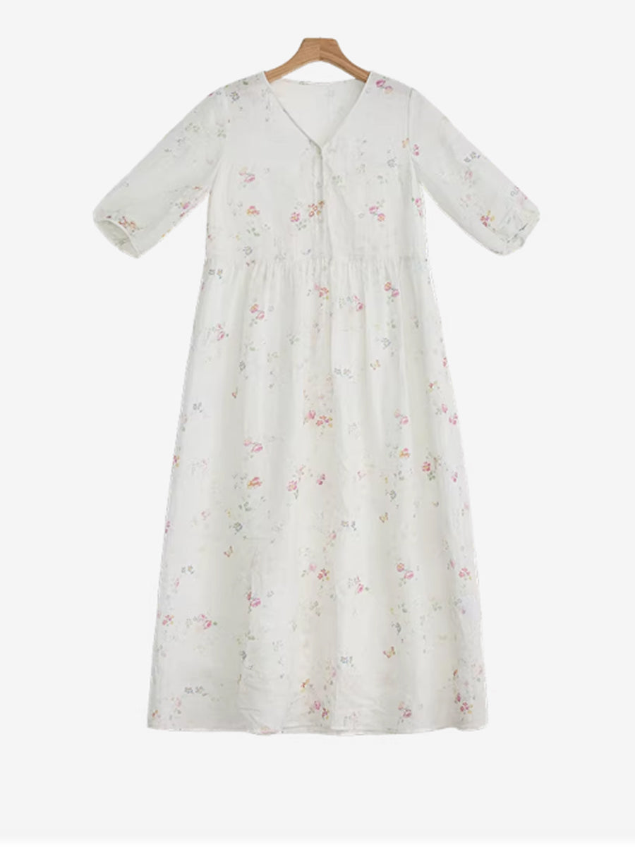 Vestido de verano con cuello en V y estampado floral de ramio para mujer