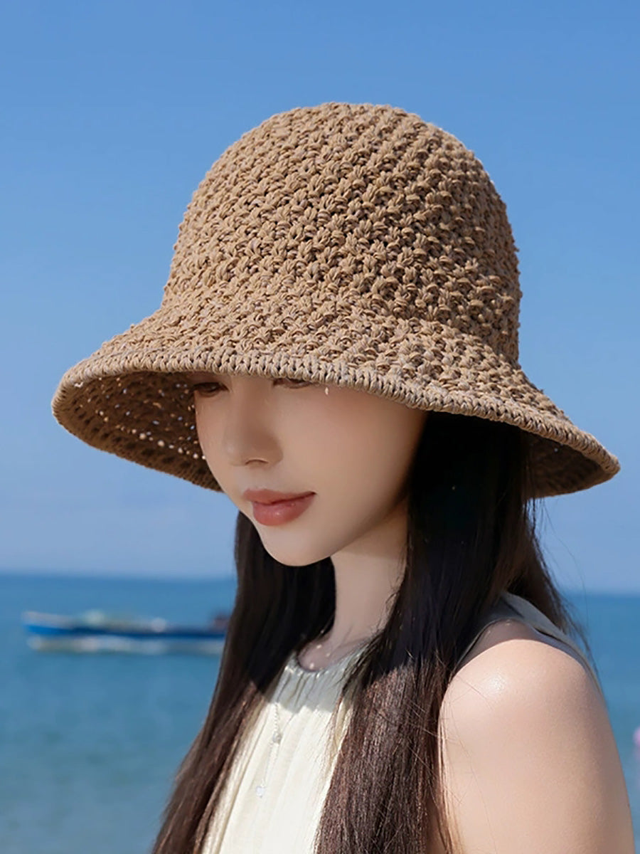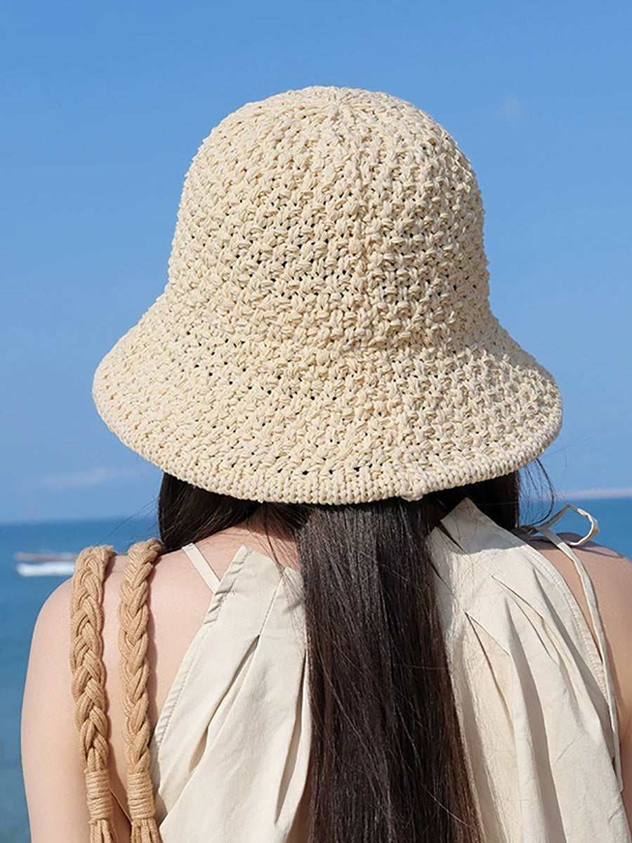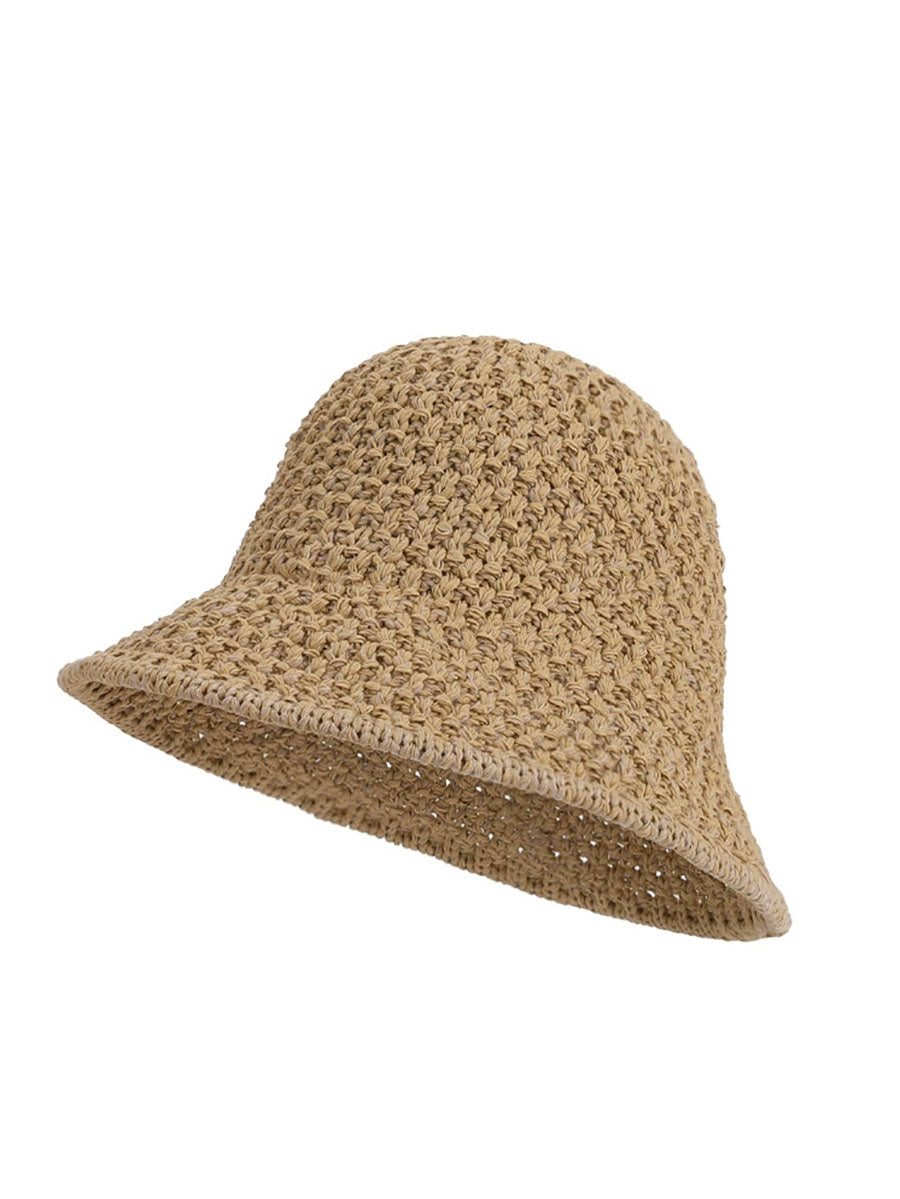 Sombrero de pescador tejido de color puro de verano para mujer