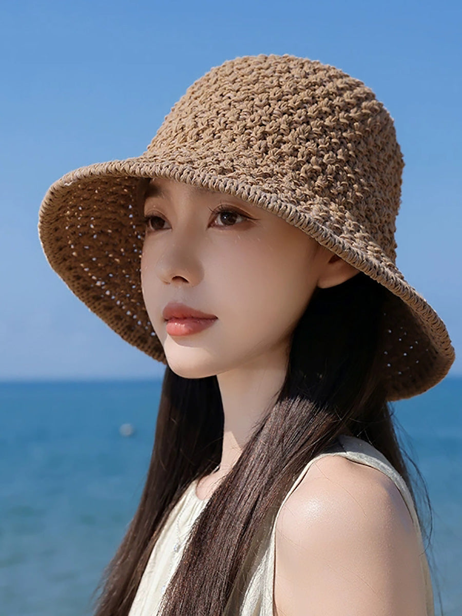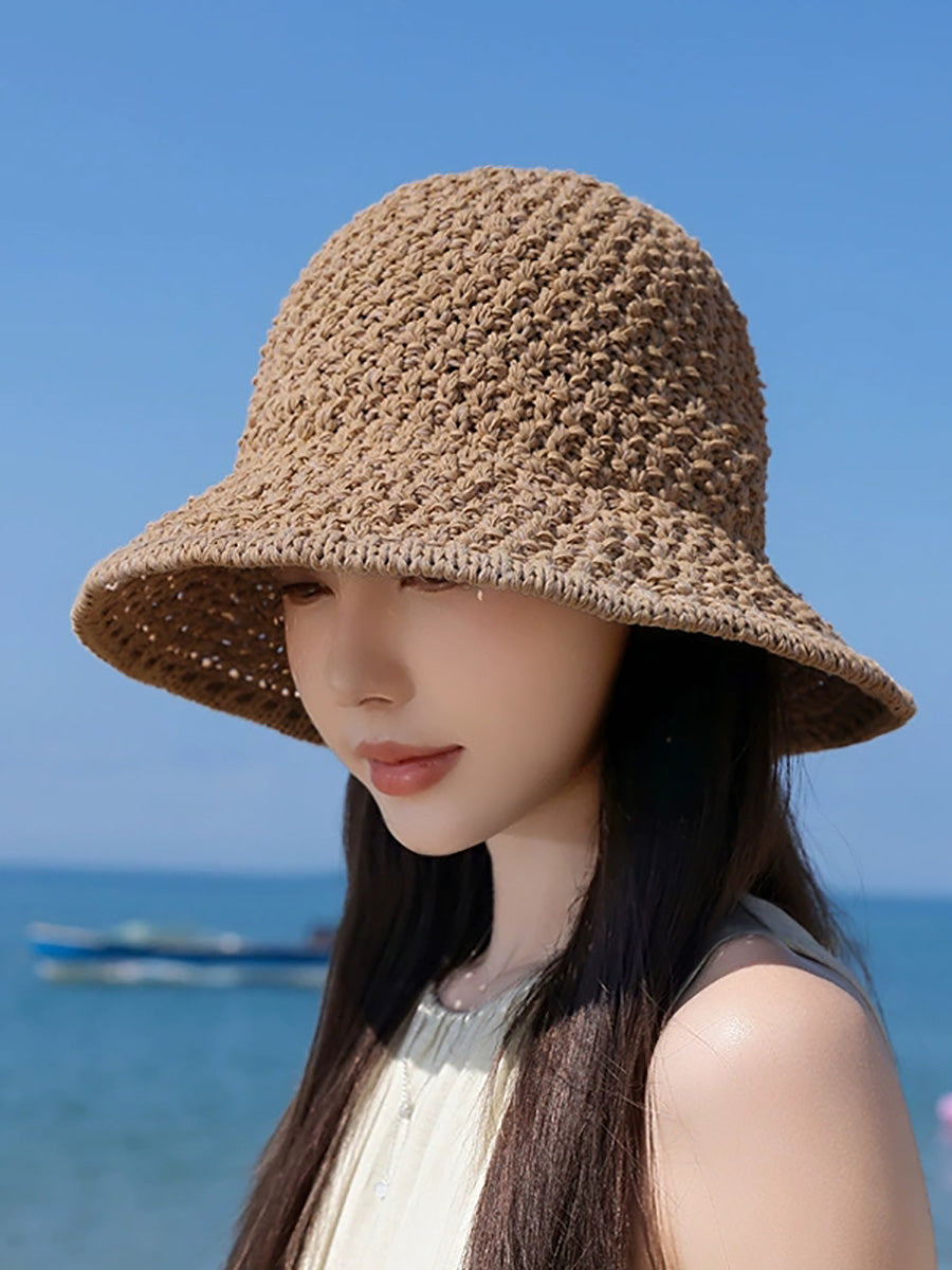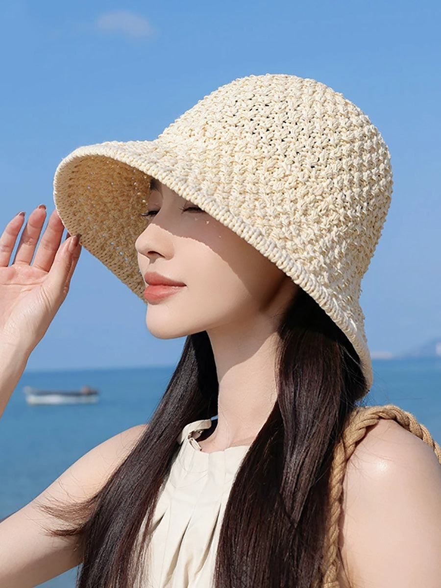 Sombrero de pescador tejido de color puro de verano para mujer