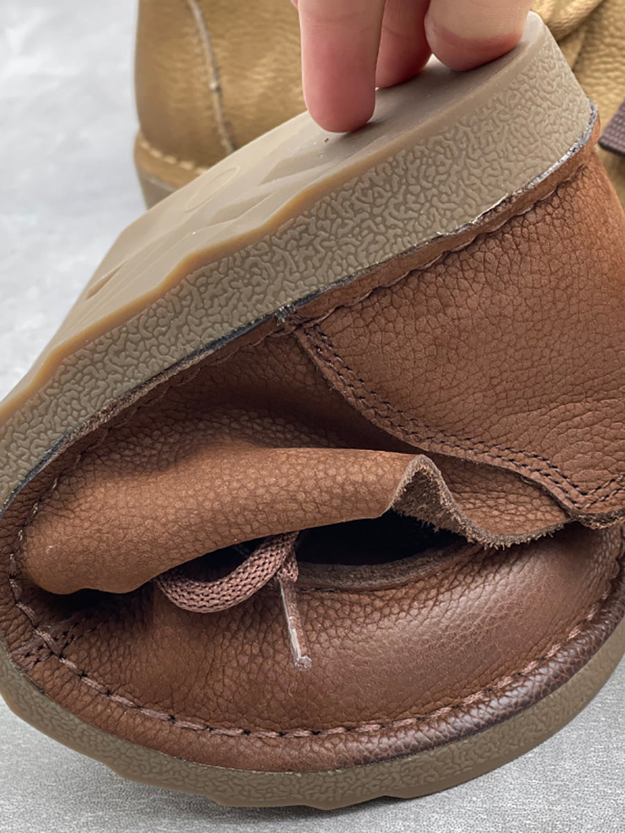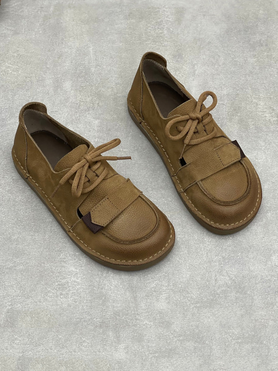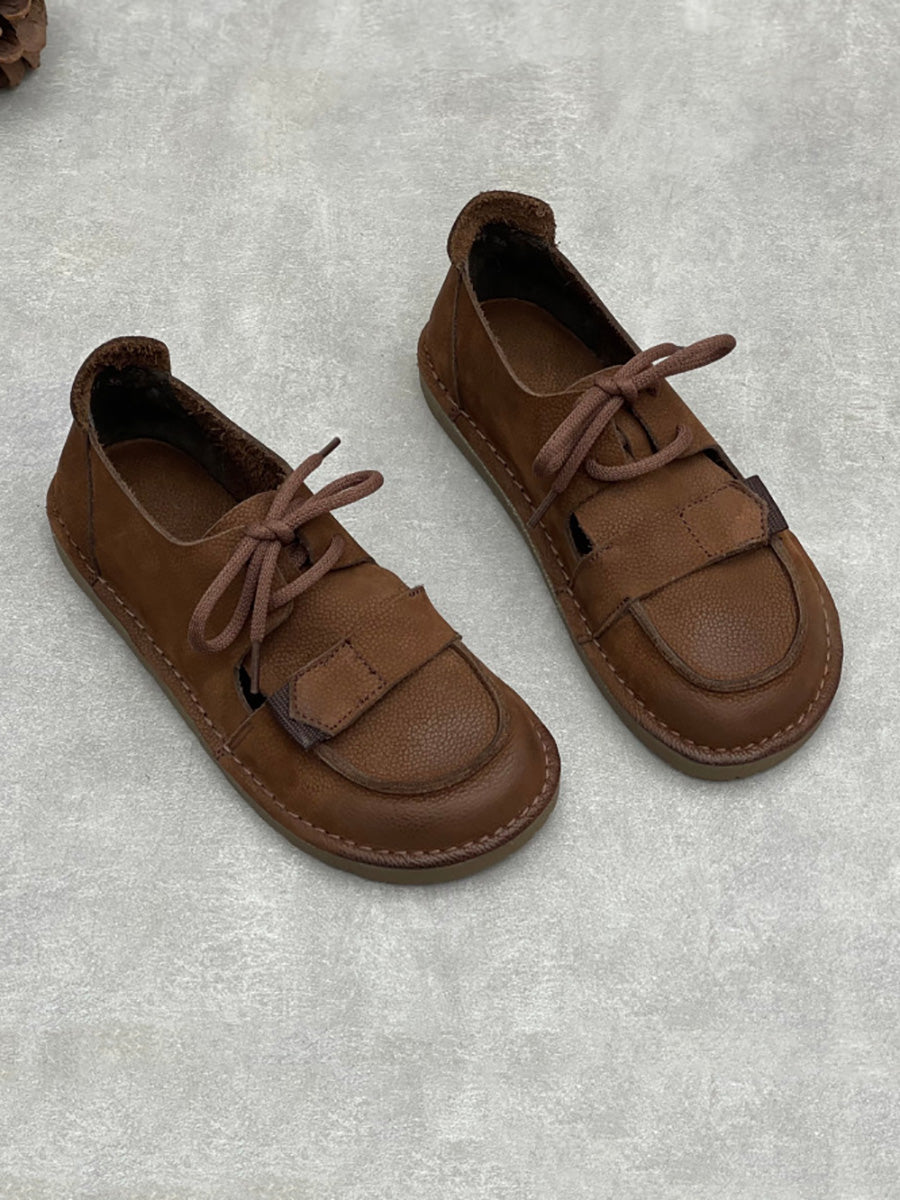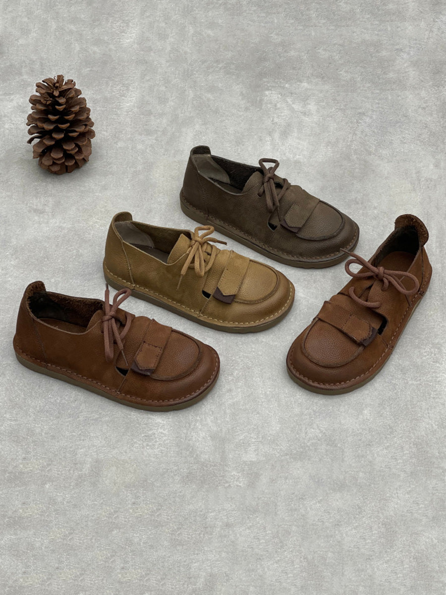 Zapatos planos vintage de piel auténtica para mujer
