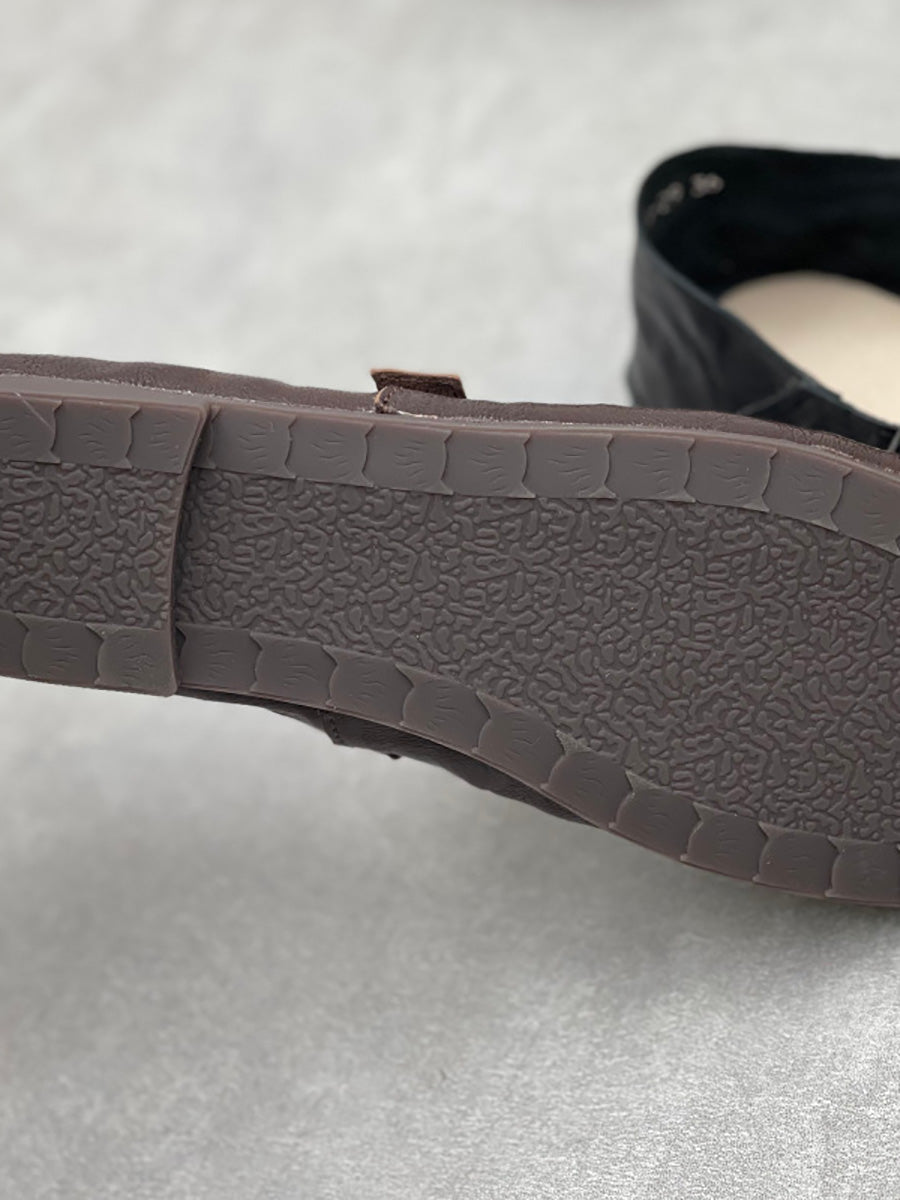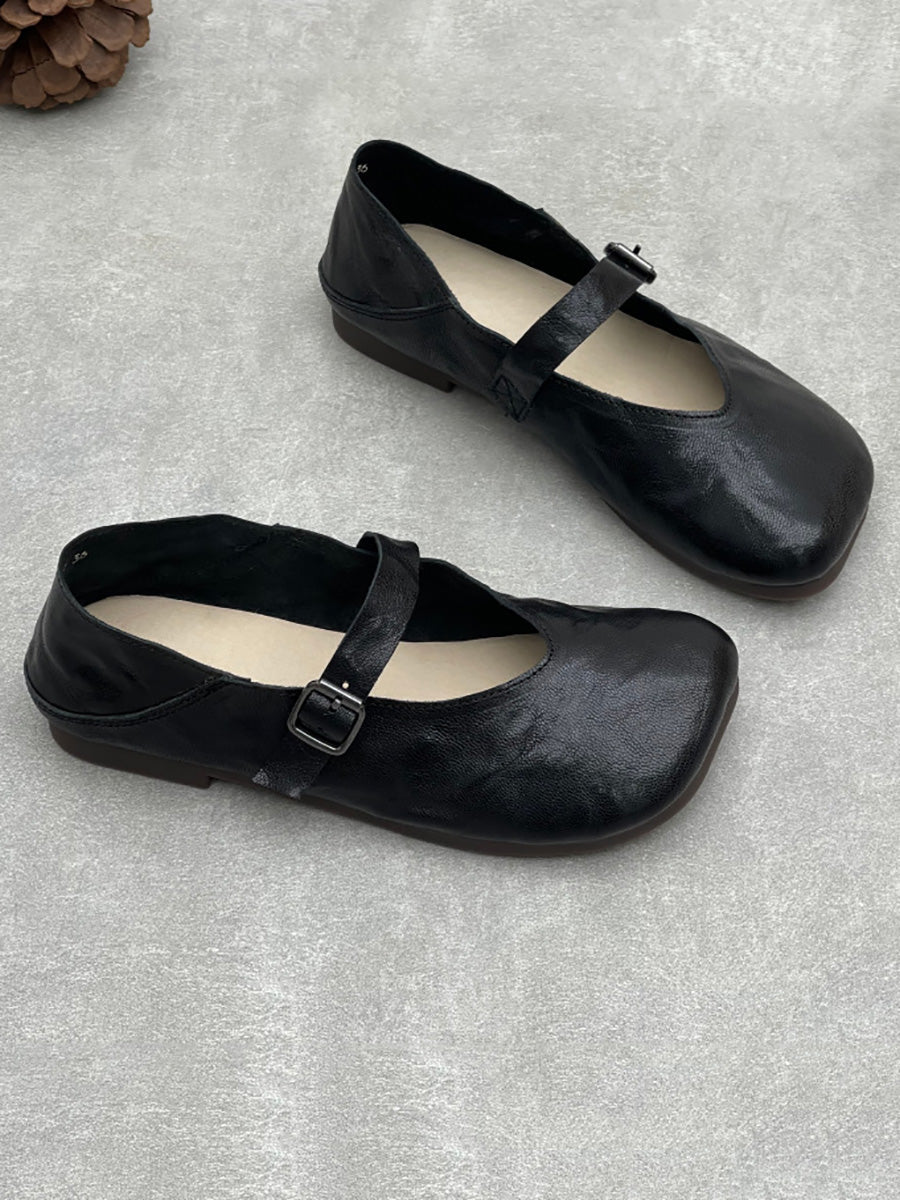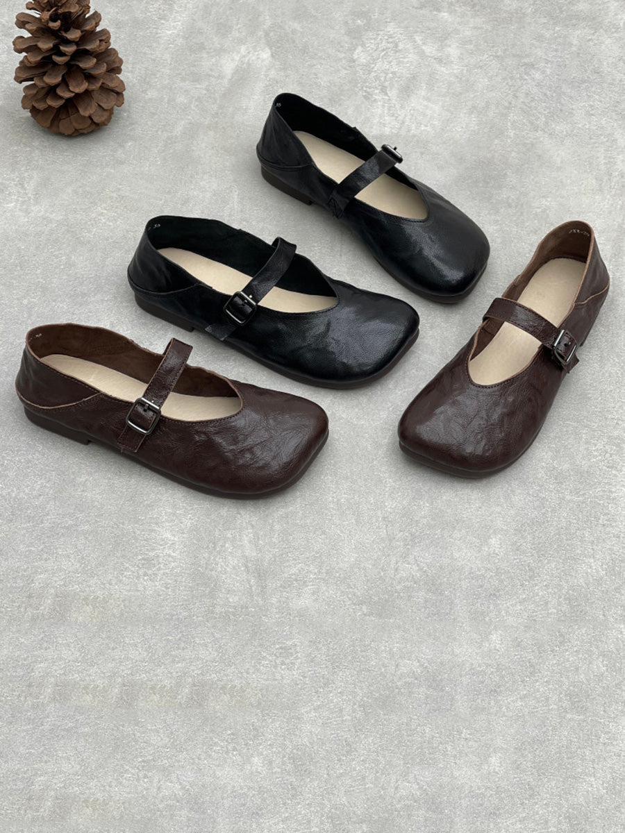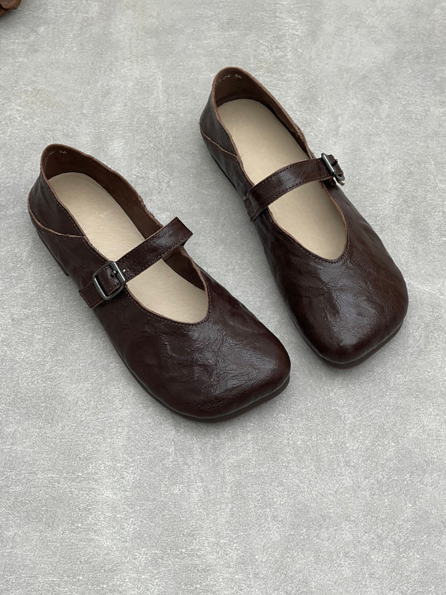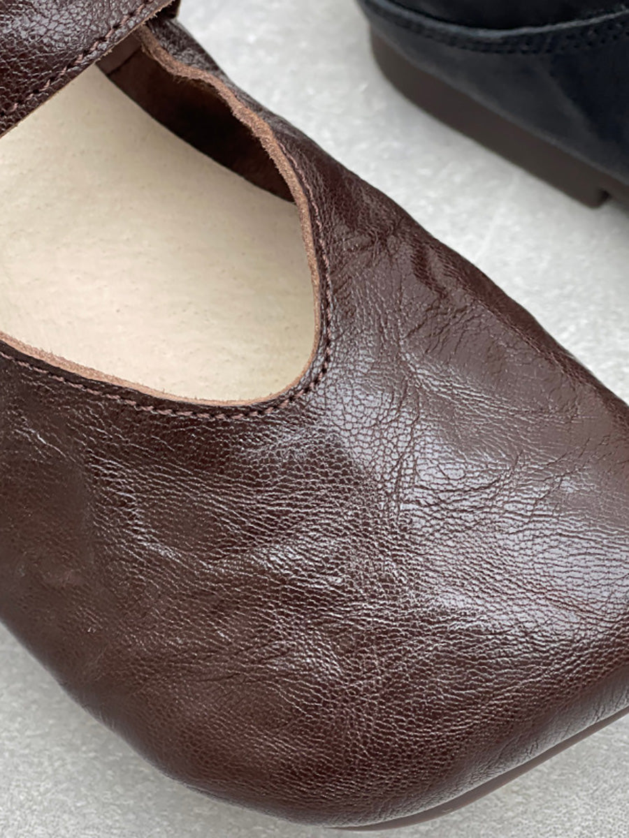 Zapatos de tacón bajo vintage de piel auténtica suave para mujer