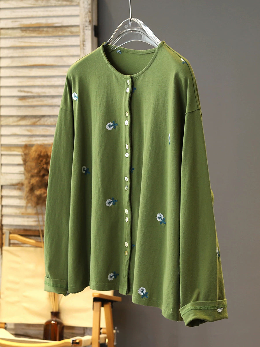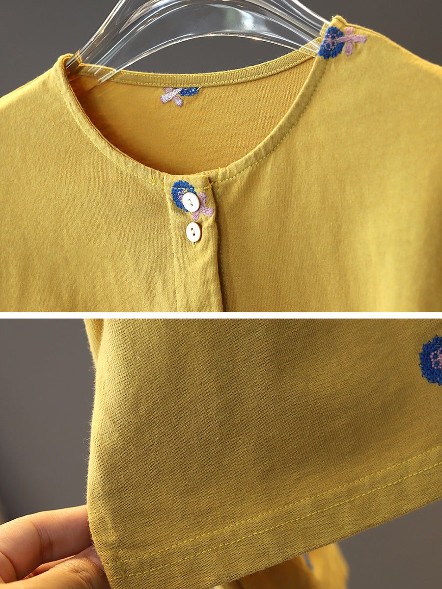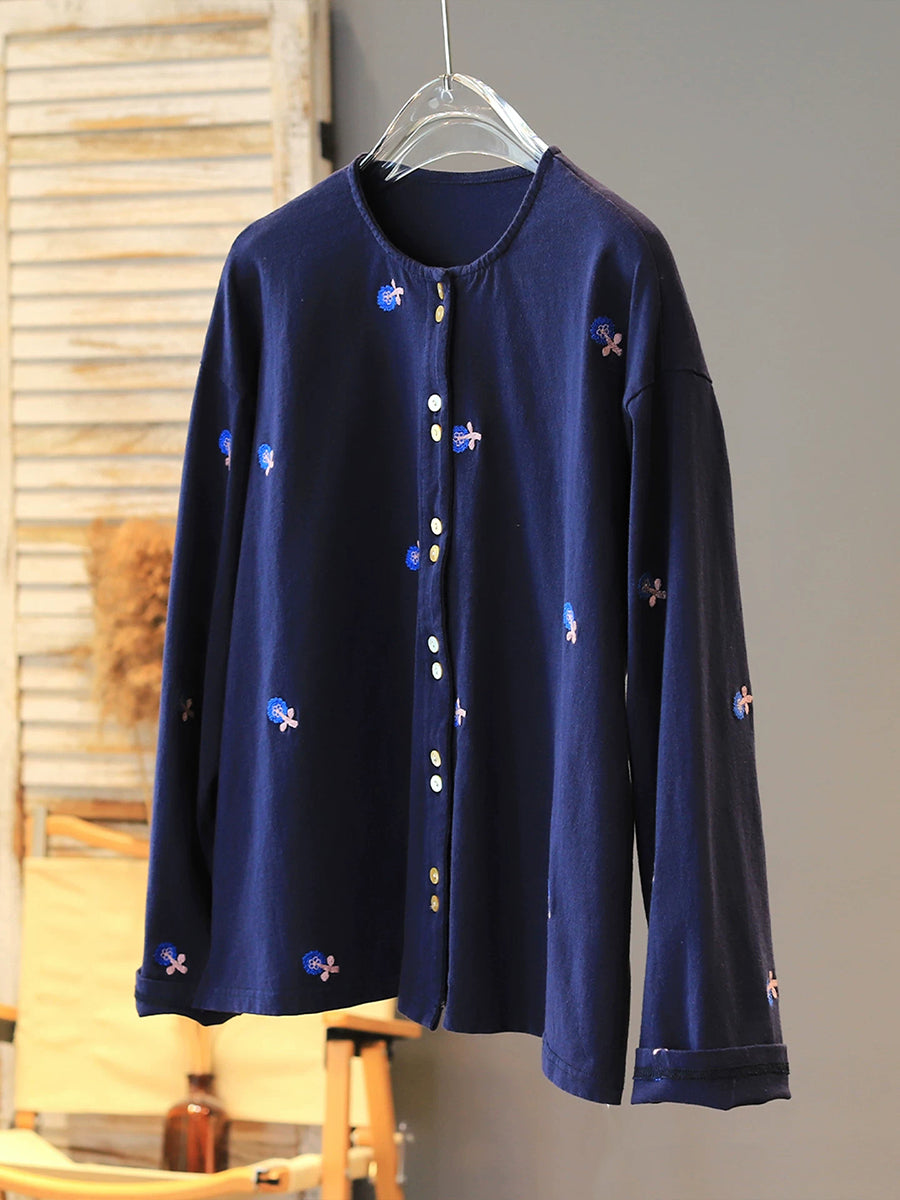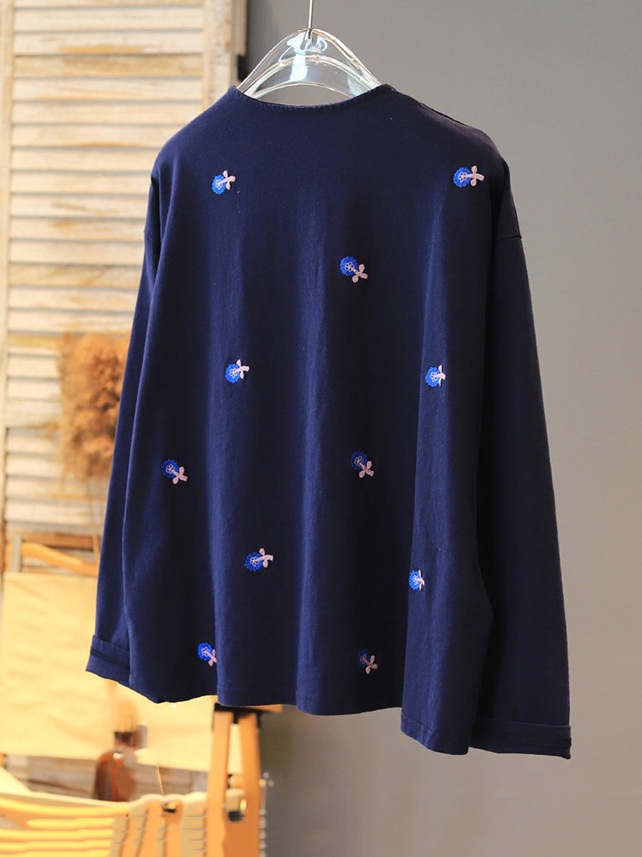 Blusa de cuello redondo con bordado de flores de primavera para mujer