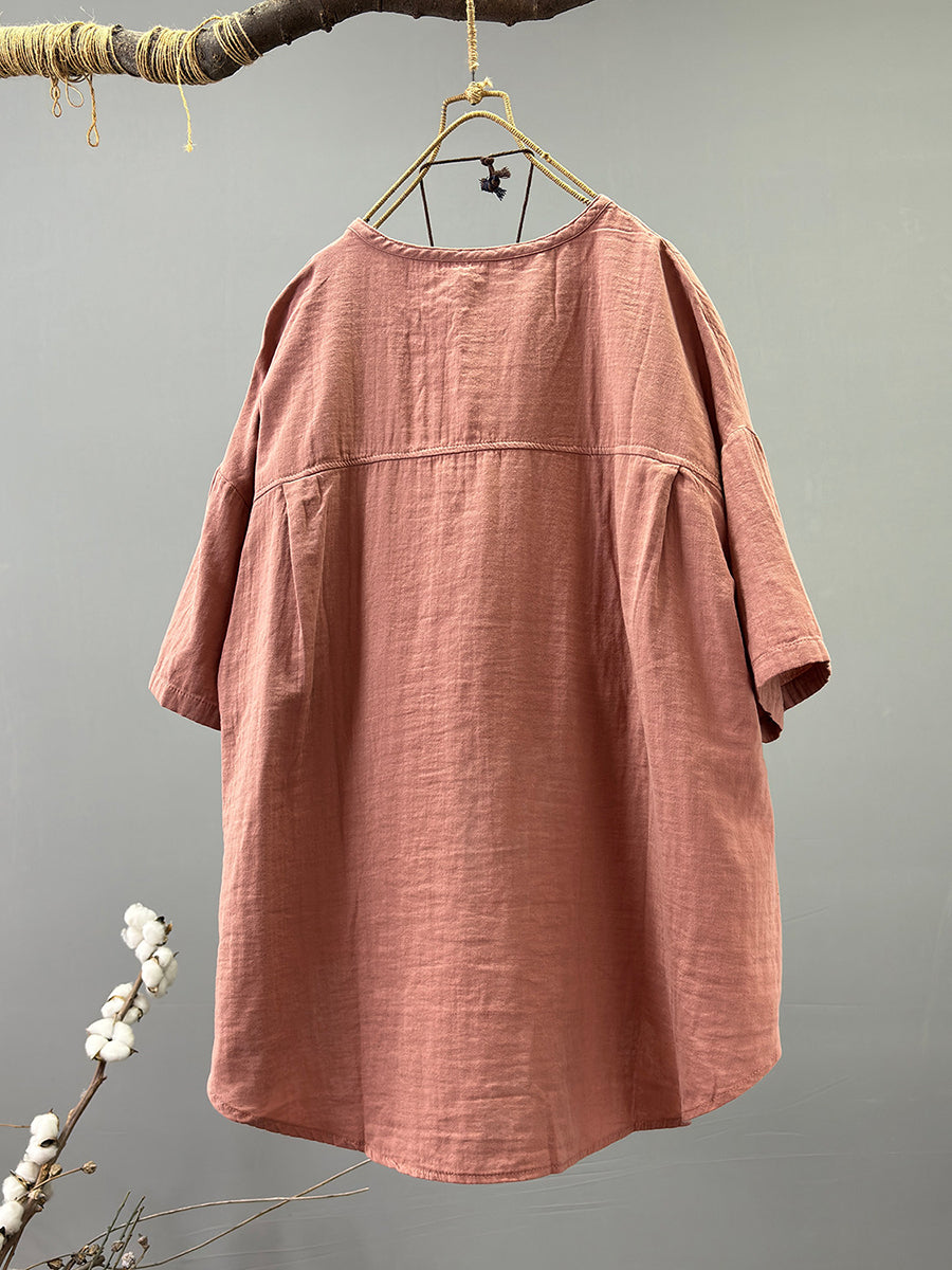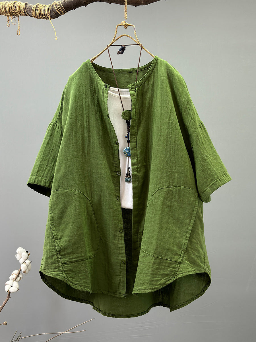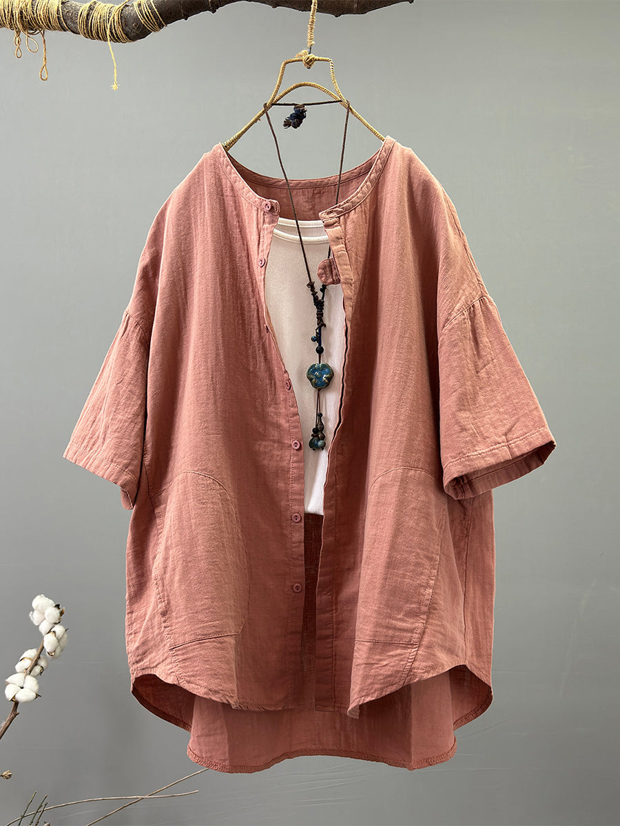 Camisa informal de verano para mujer, 100 % algodón, color puro