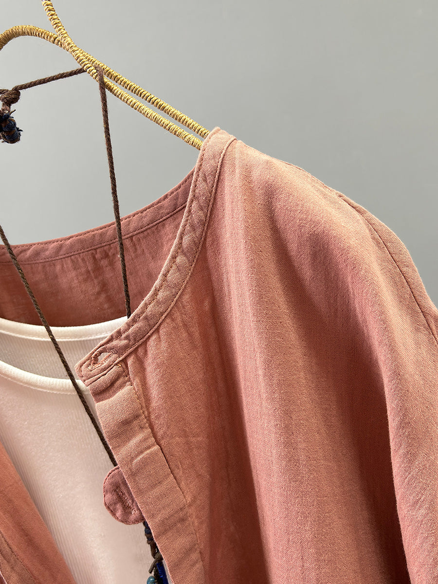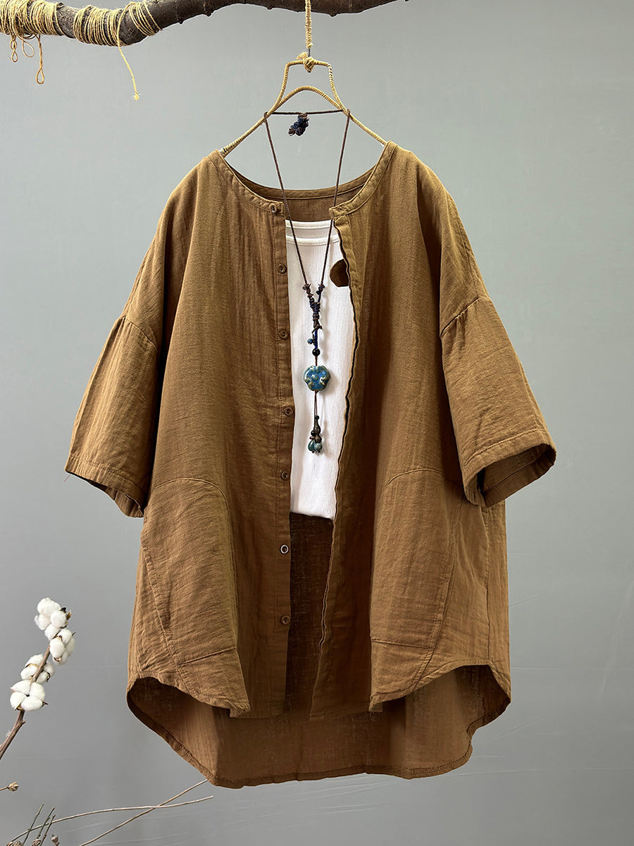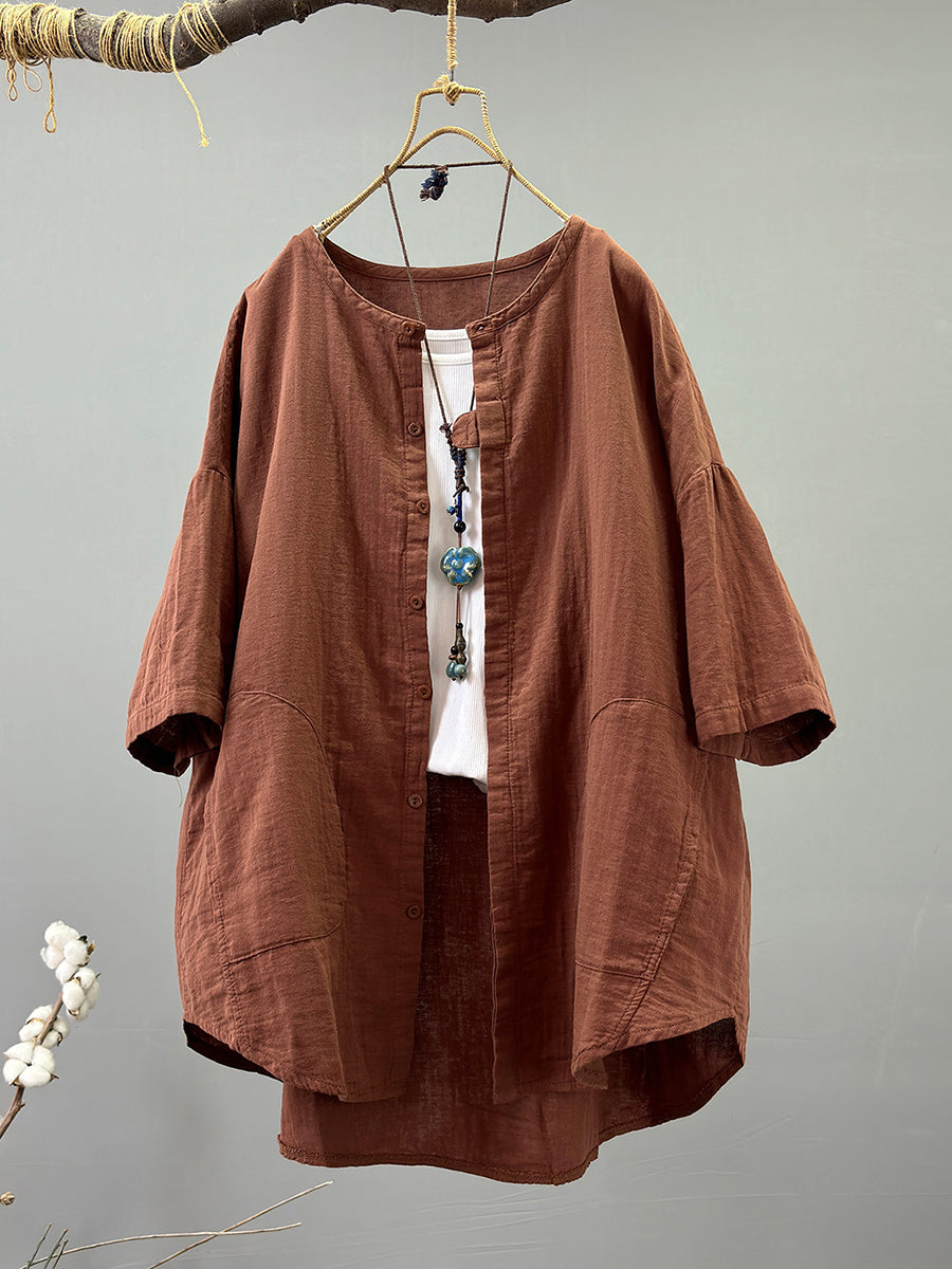 Camisa informal de verano para mujer, 100 % algodón, color puro