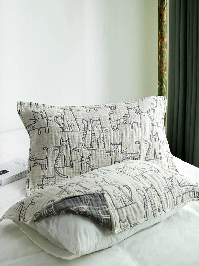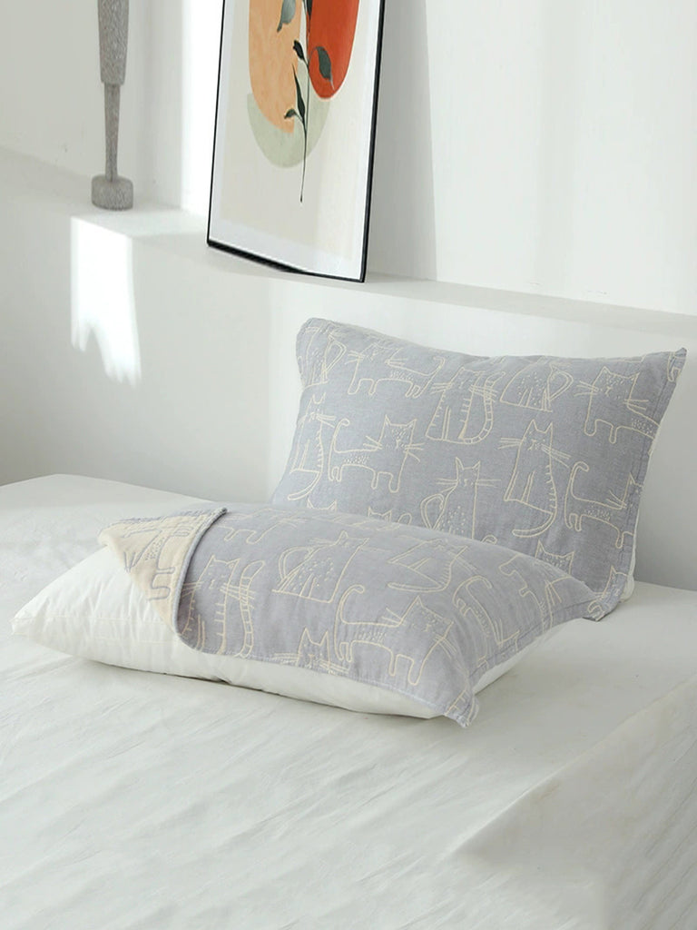 Funda de almohada gruesa de gasa de tres capas de algodón con dibujos animados para adultos, niños y estudiantes