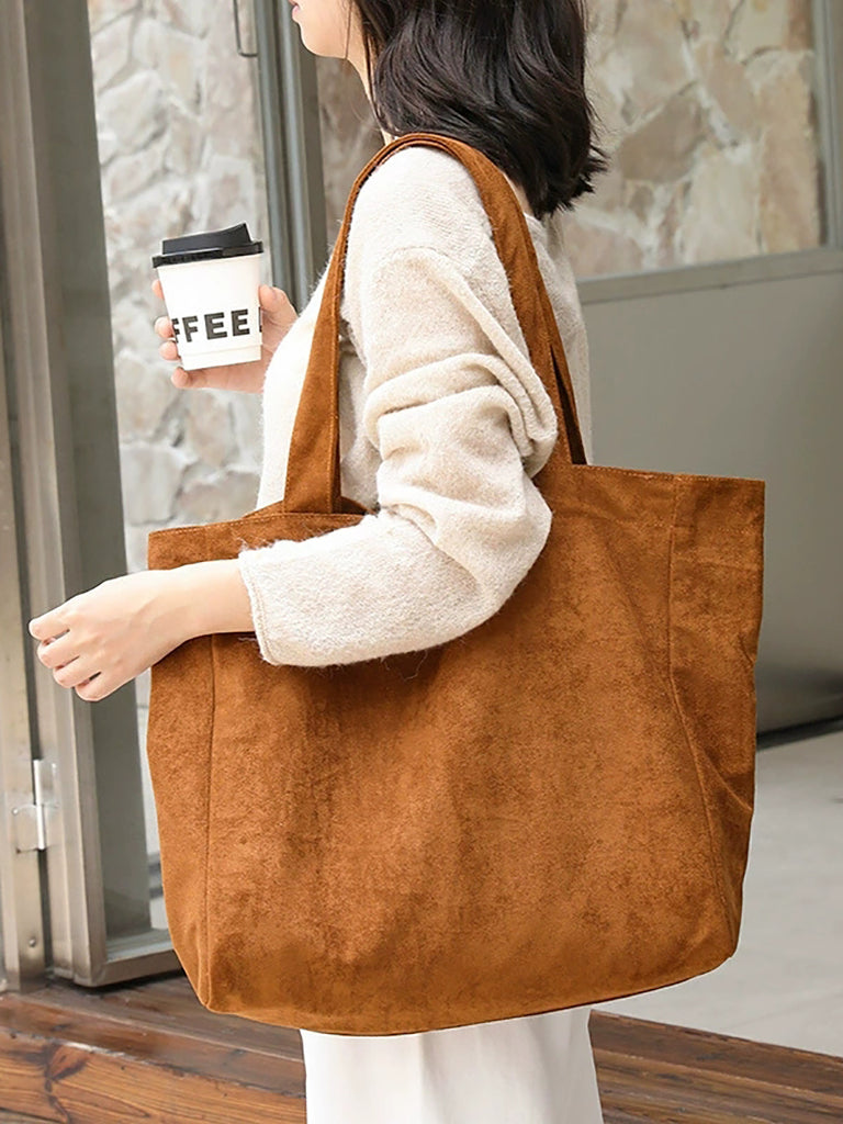 Bolso tote de ante, bolso de hombro de terciopelo de gran capacidad