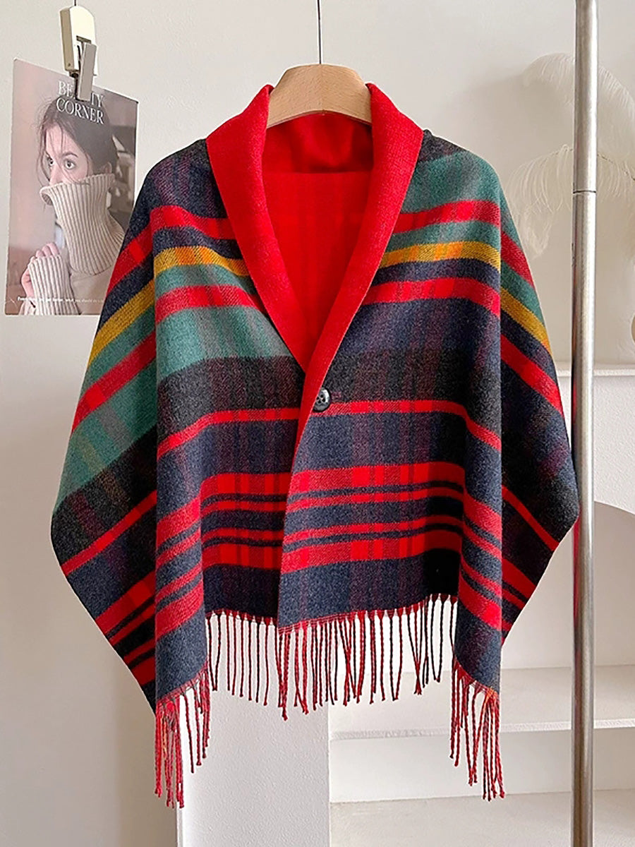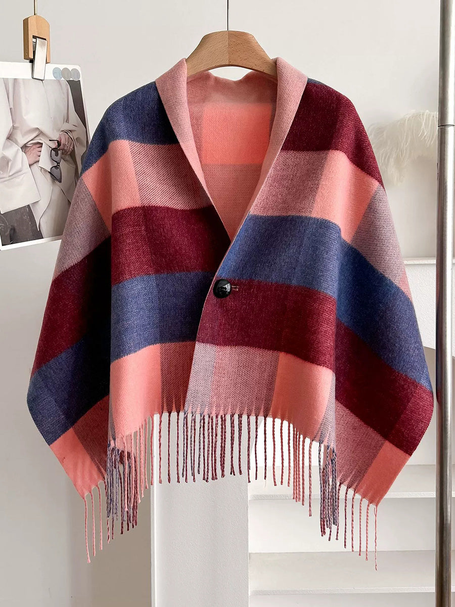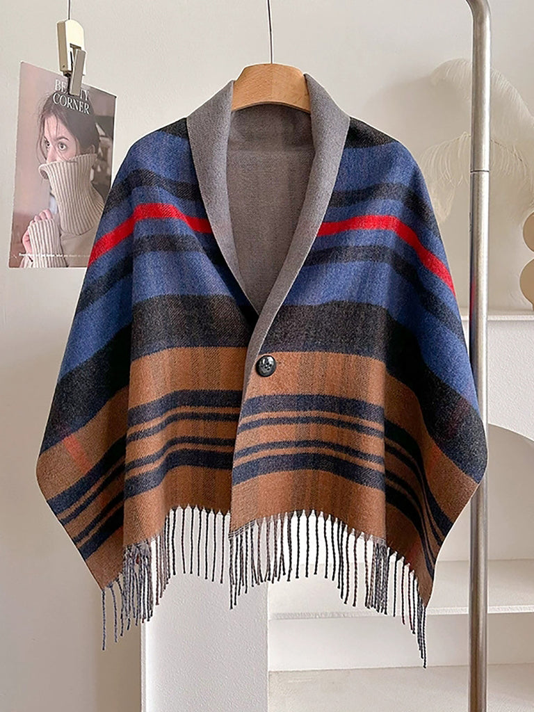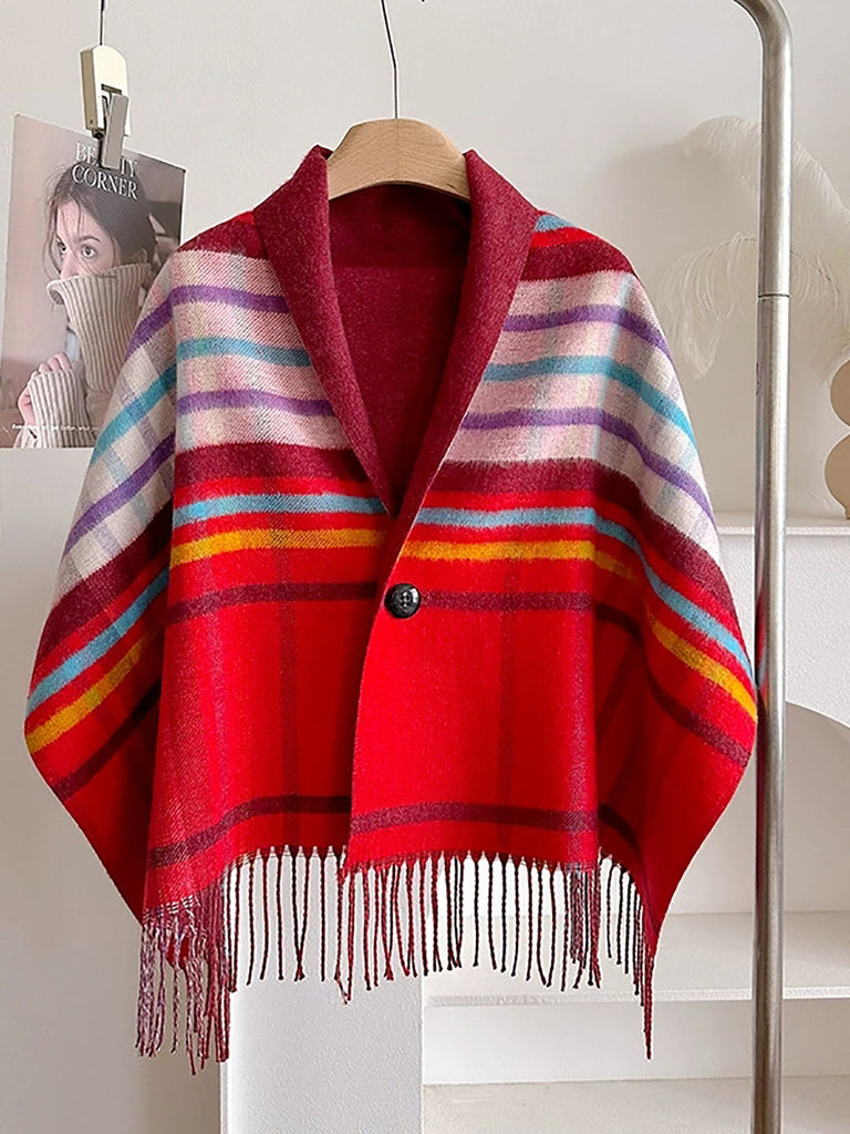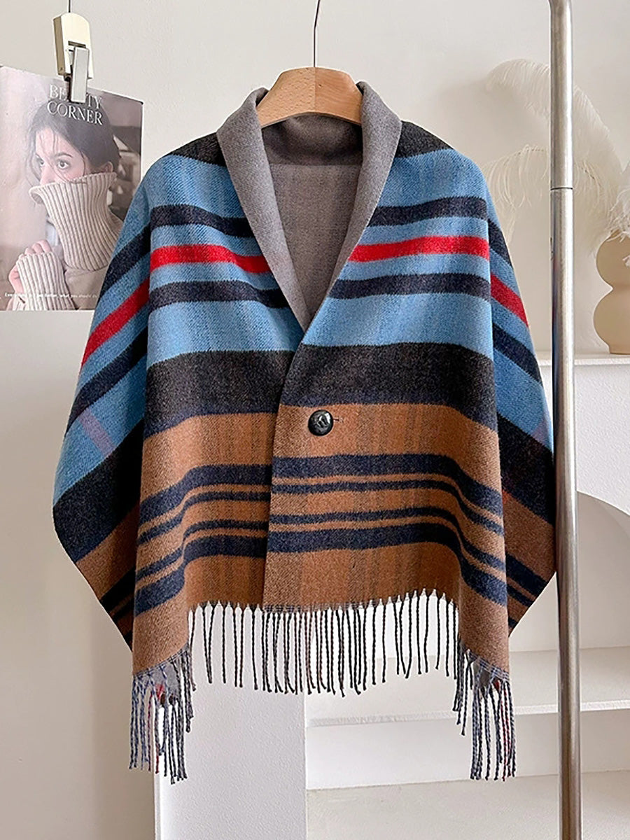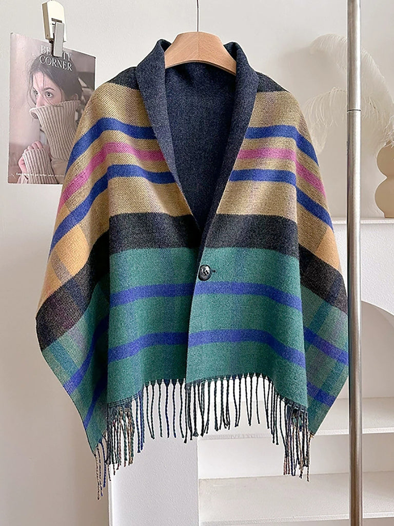 Chal de invierno con flecos, rayas y cuadros, estilo chal.