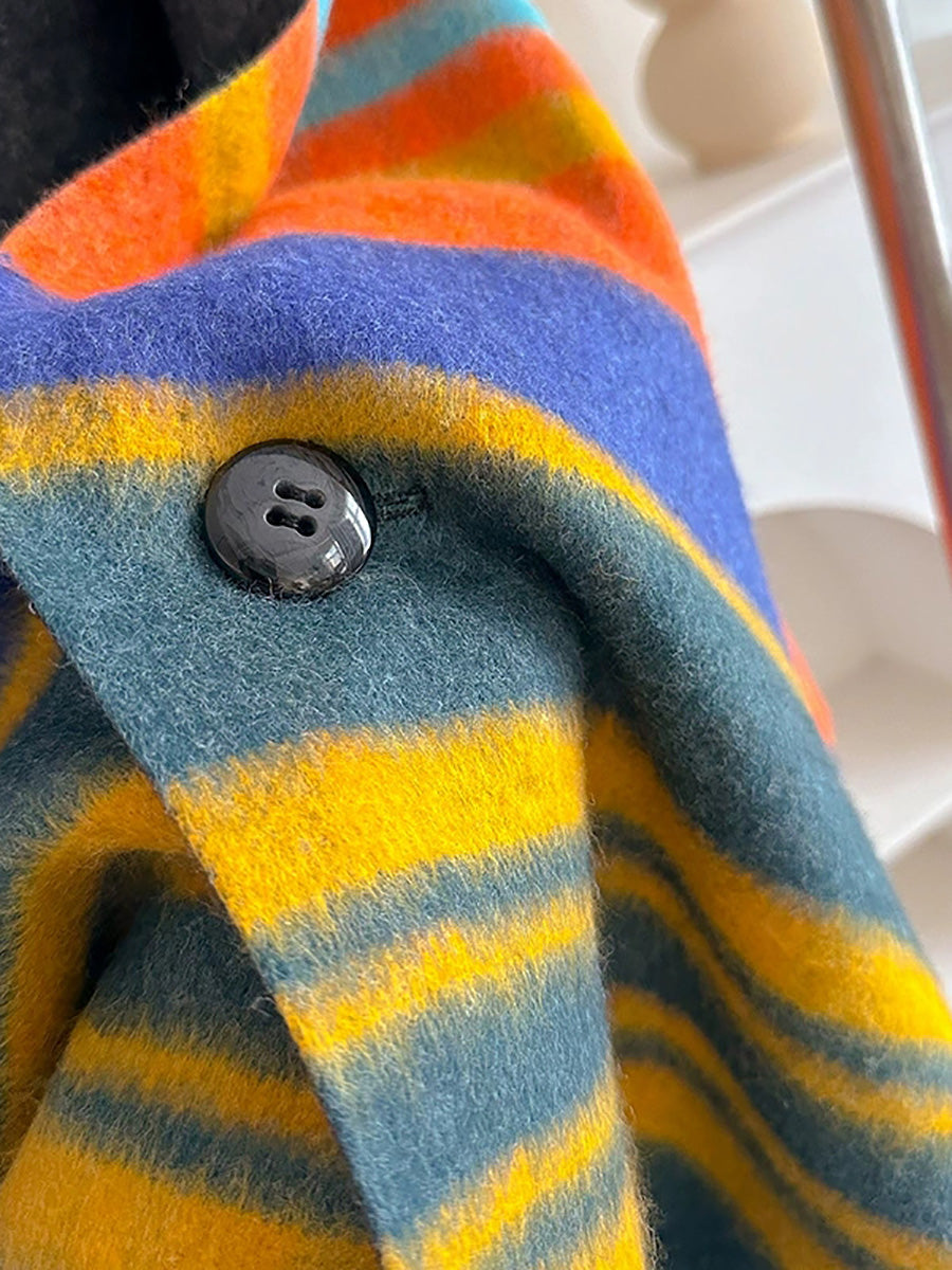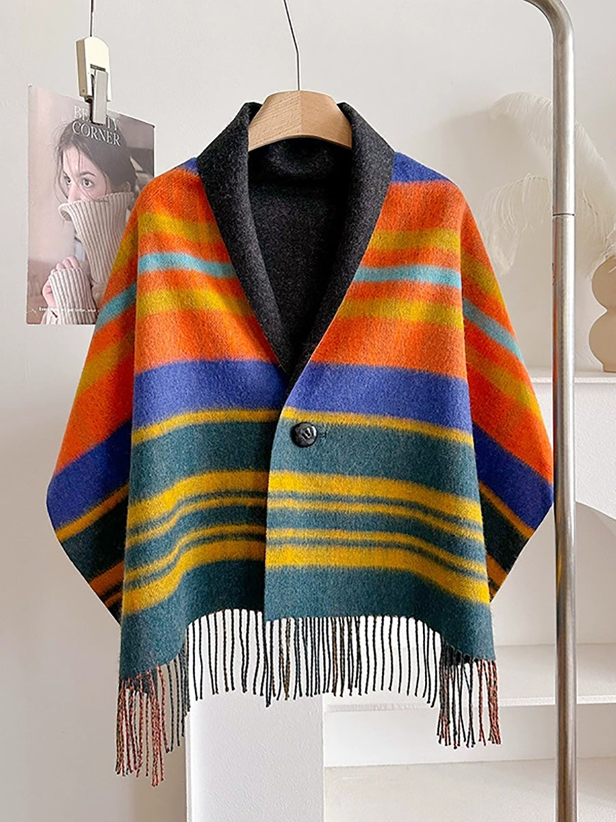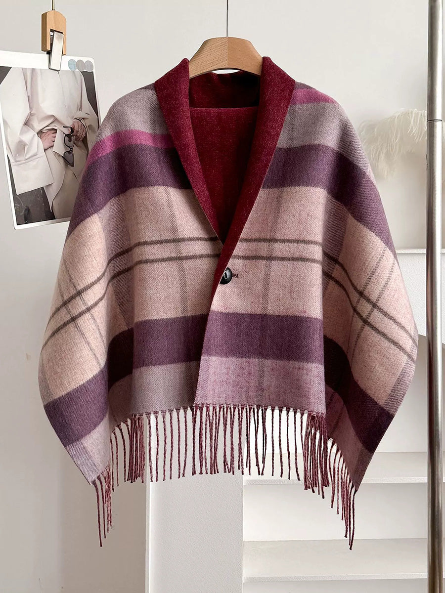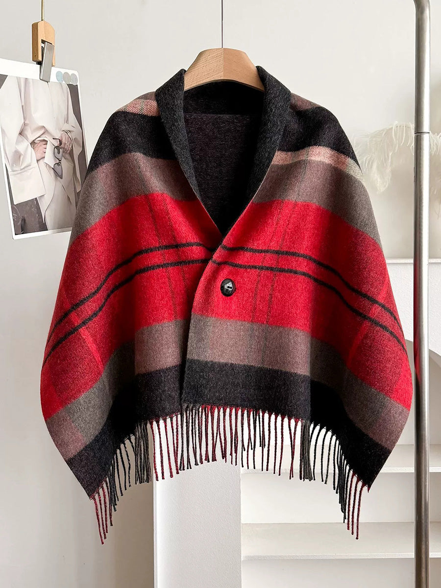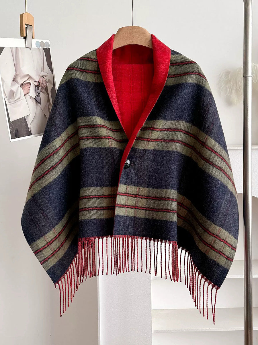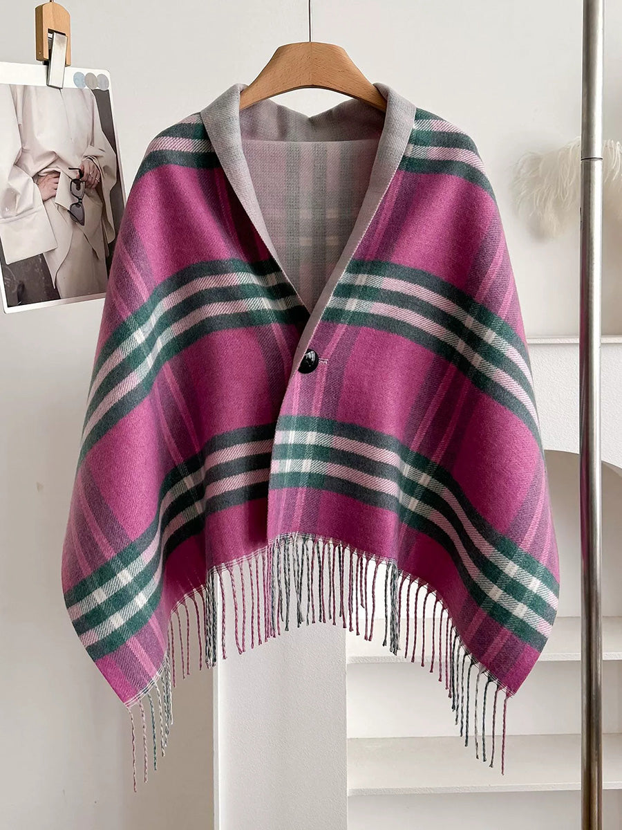 Chal de invierno con flecos, rayas y cuadros, estilo chal.