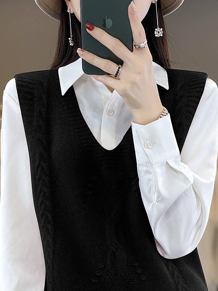 Chaleco de punto con cuello en V de color puro informal de otoño para mujer