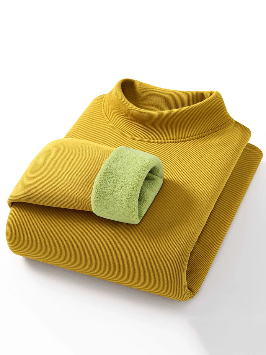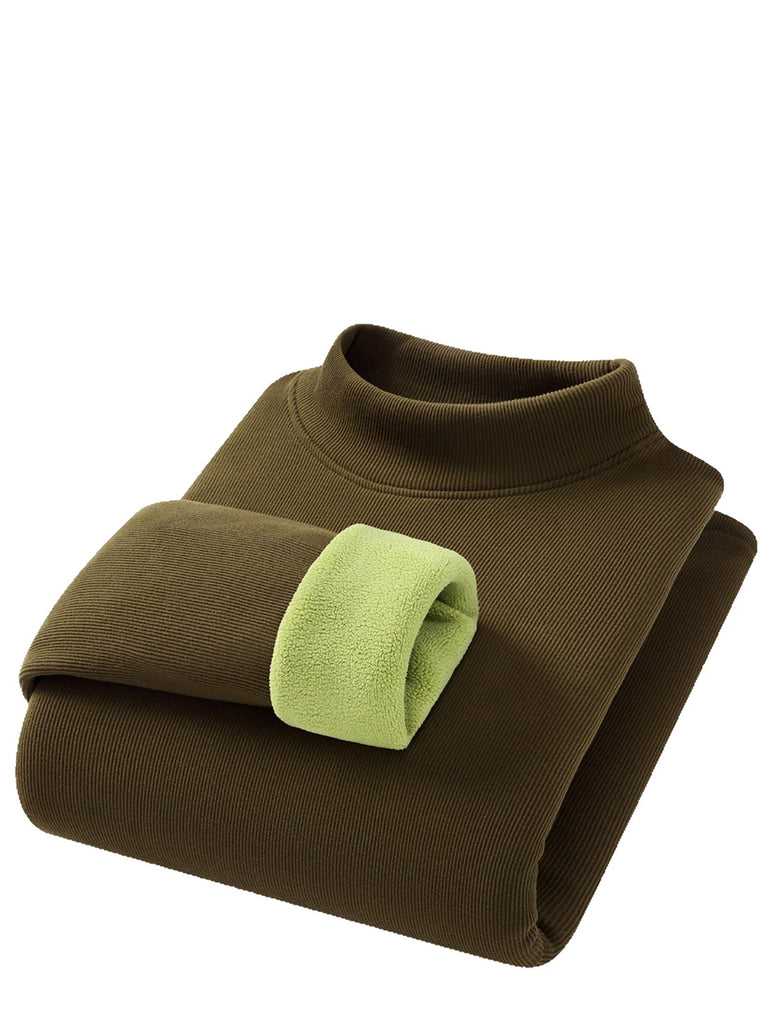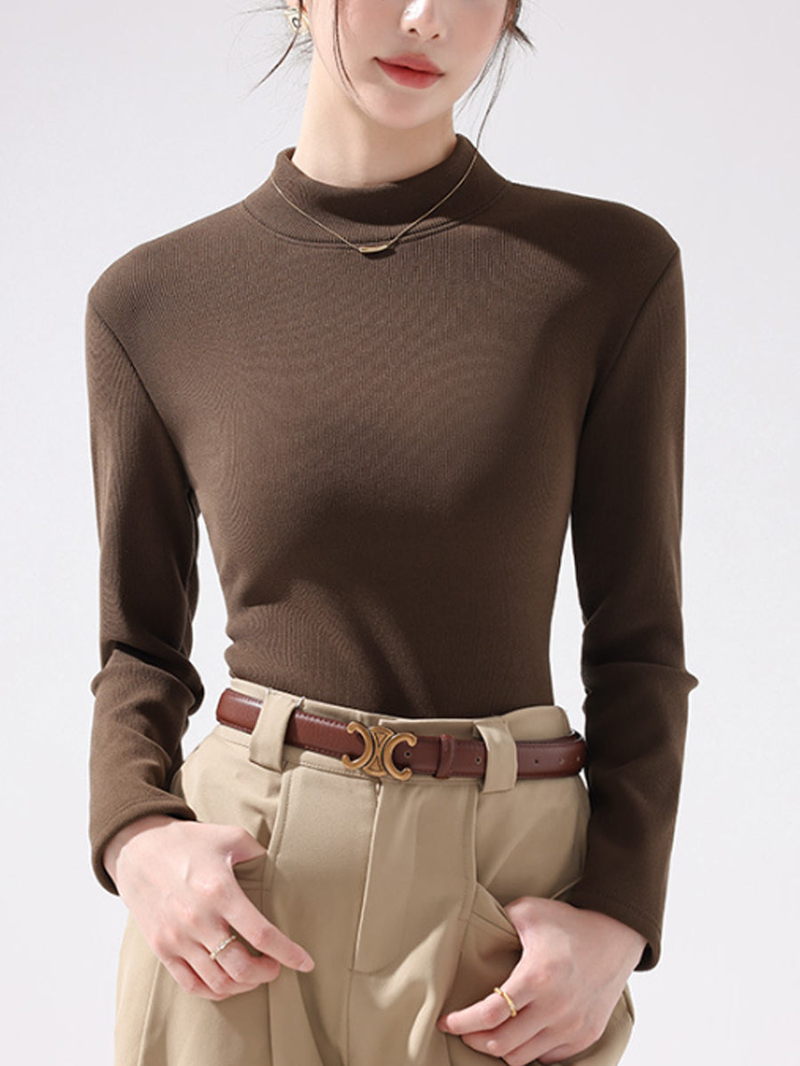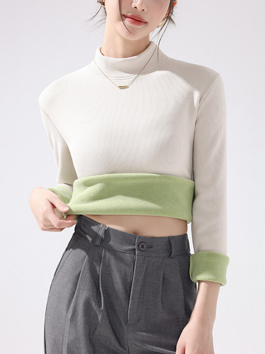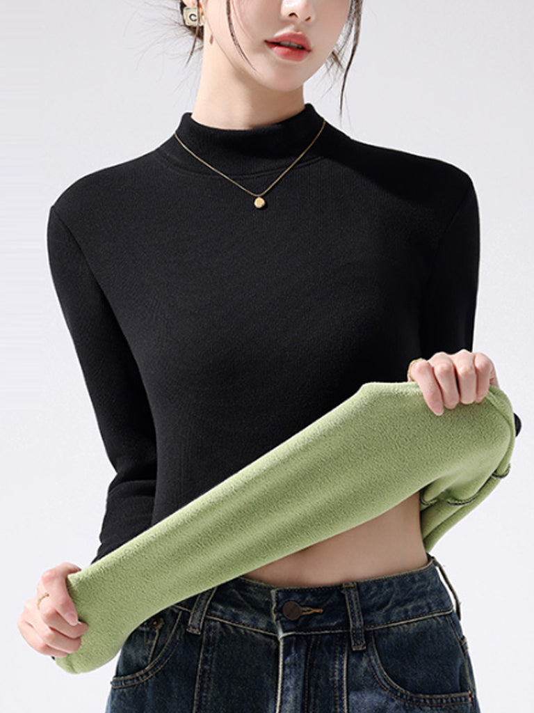 Blusa de cuello alto de color liso con forro polar para mujer, ideal para otoño.