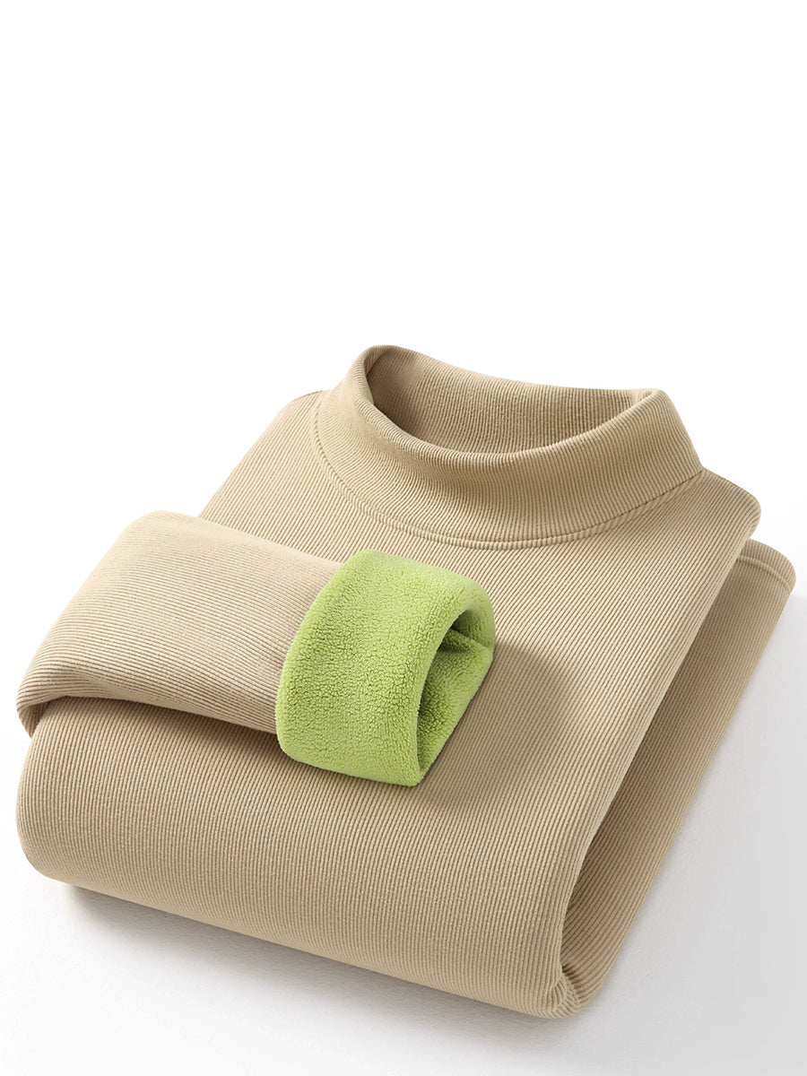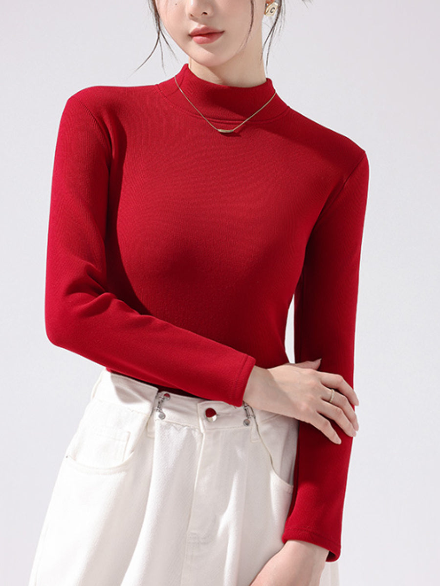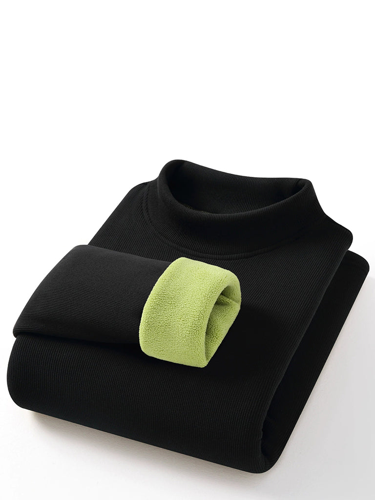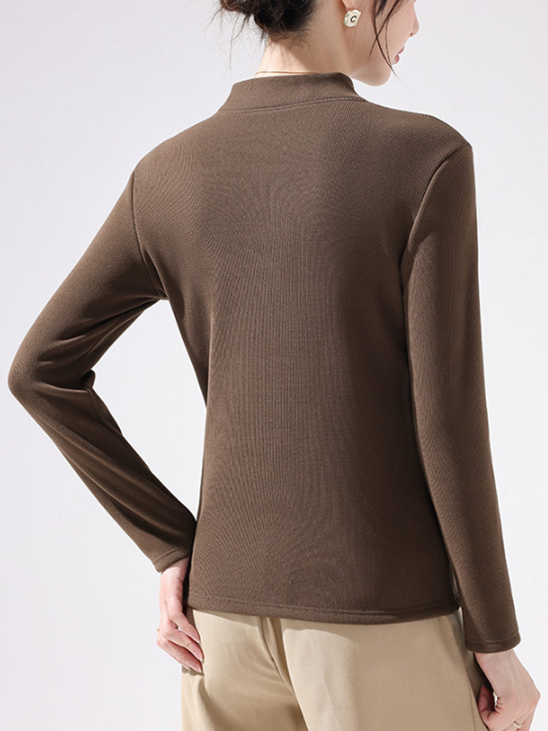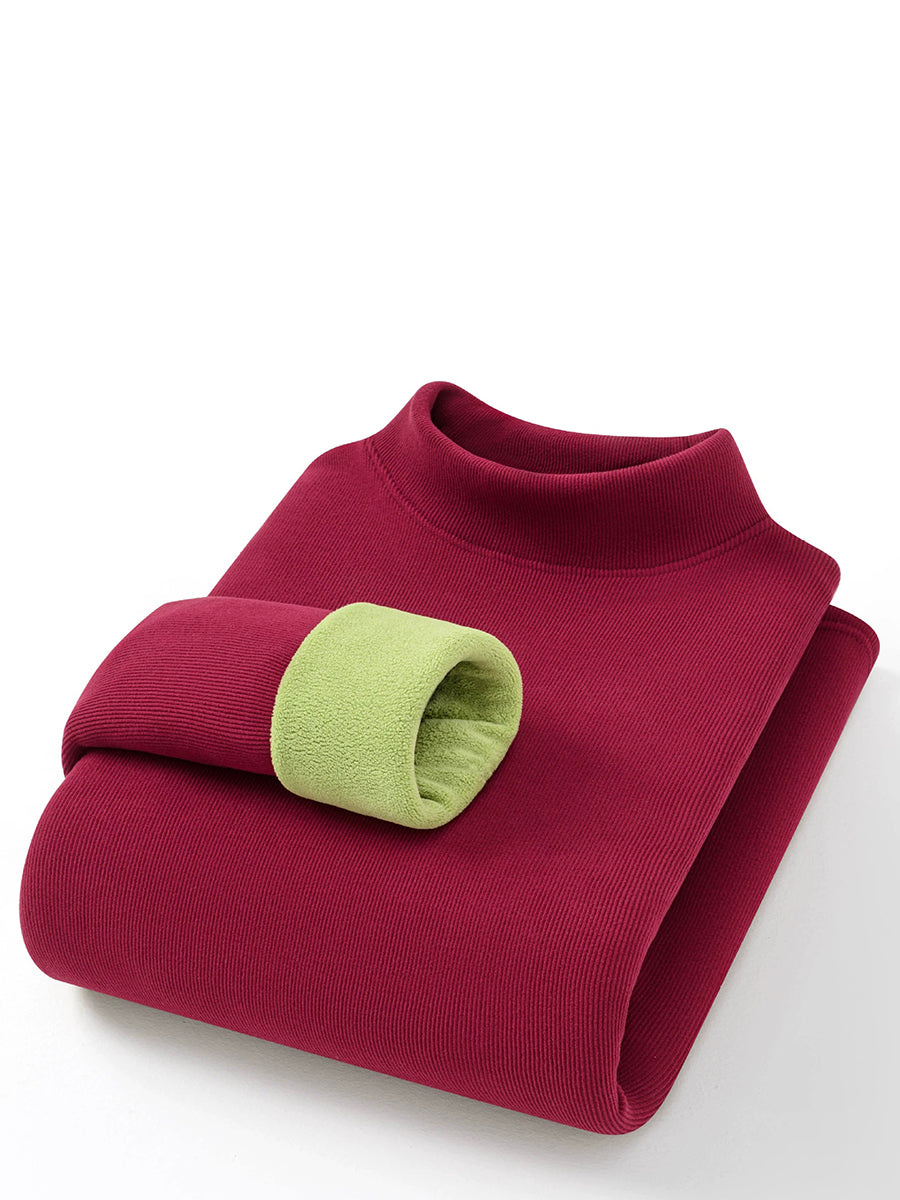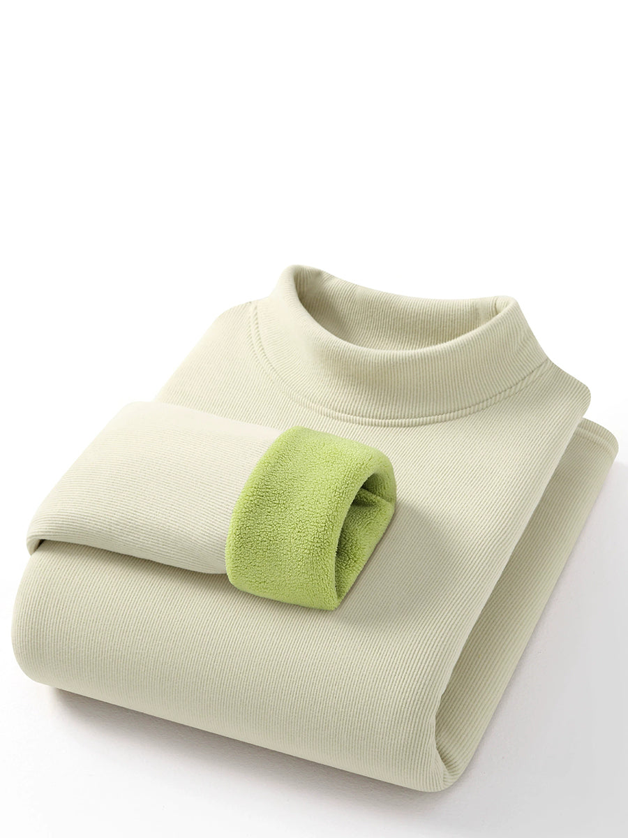 Blusa de cuello alto de color liso con forro polar para mujer, ideal para otoño.