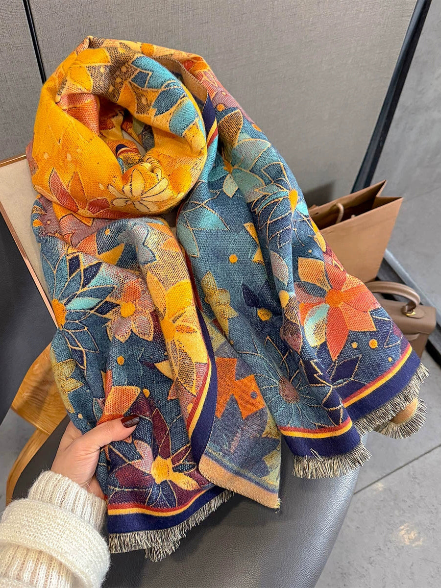 Bufanda tipo chal de jacquard con flores vintage para mujer