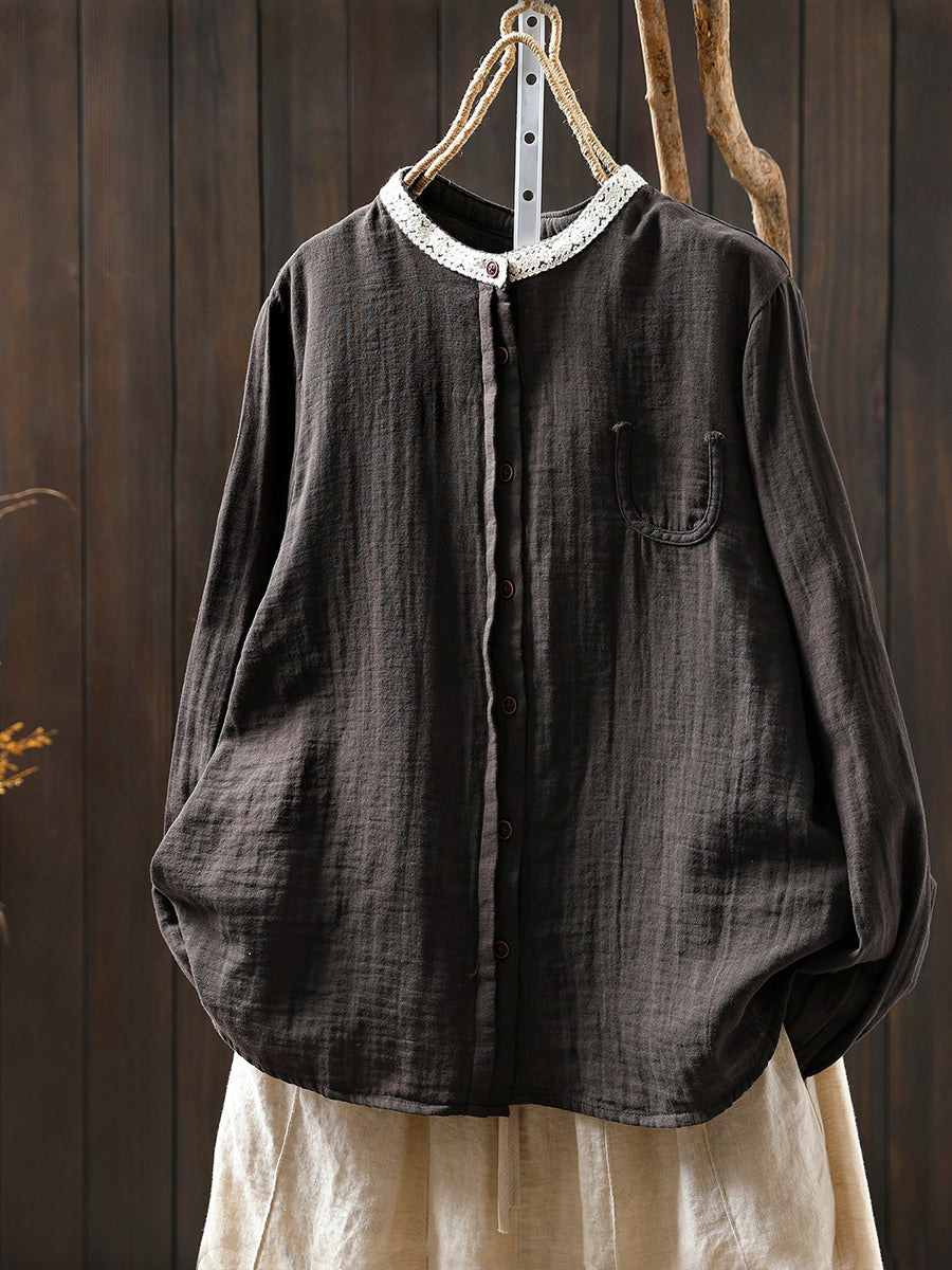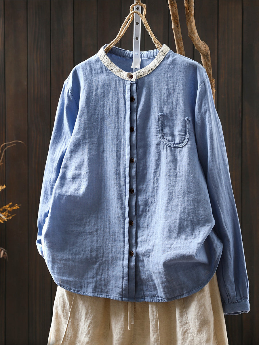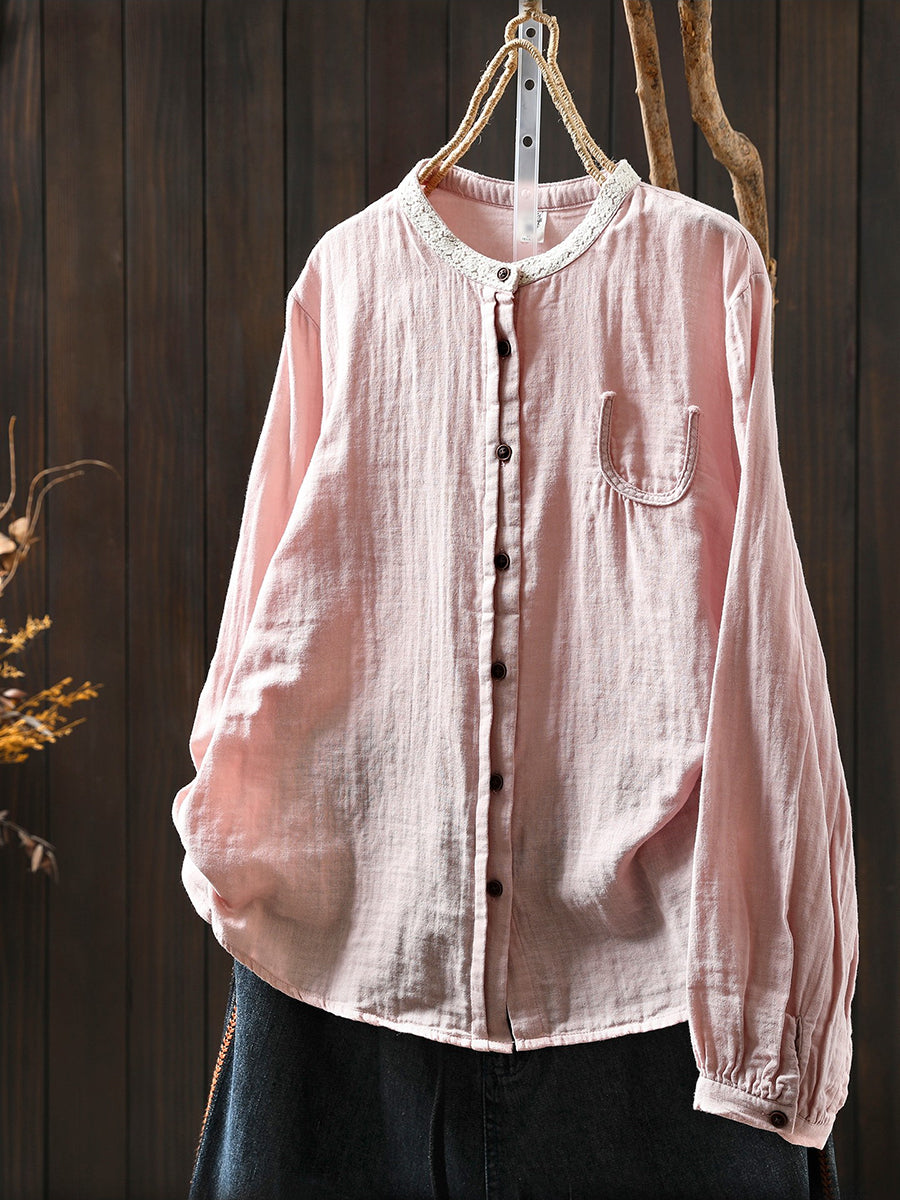 Camisa de primavera para mujer, 100 % algodón, con bloques de color artísticos
