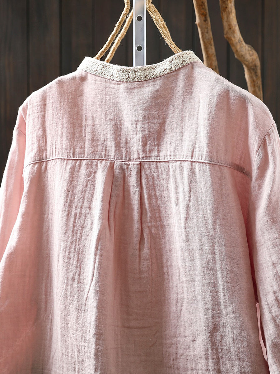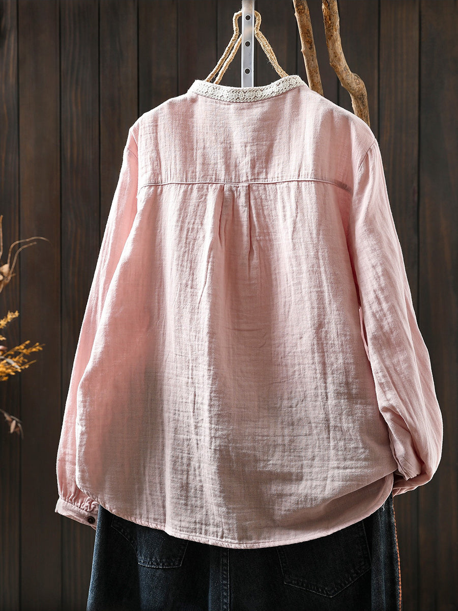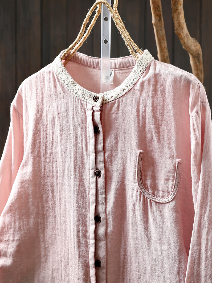 Camisa de primavera para mujer, 100 % algodón, con bloques de color artísticos