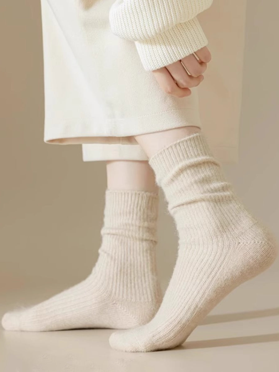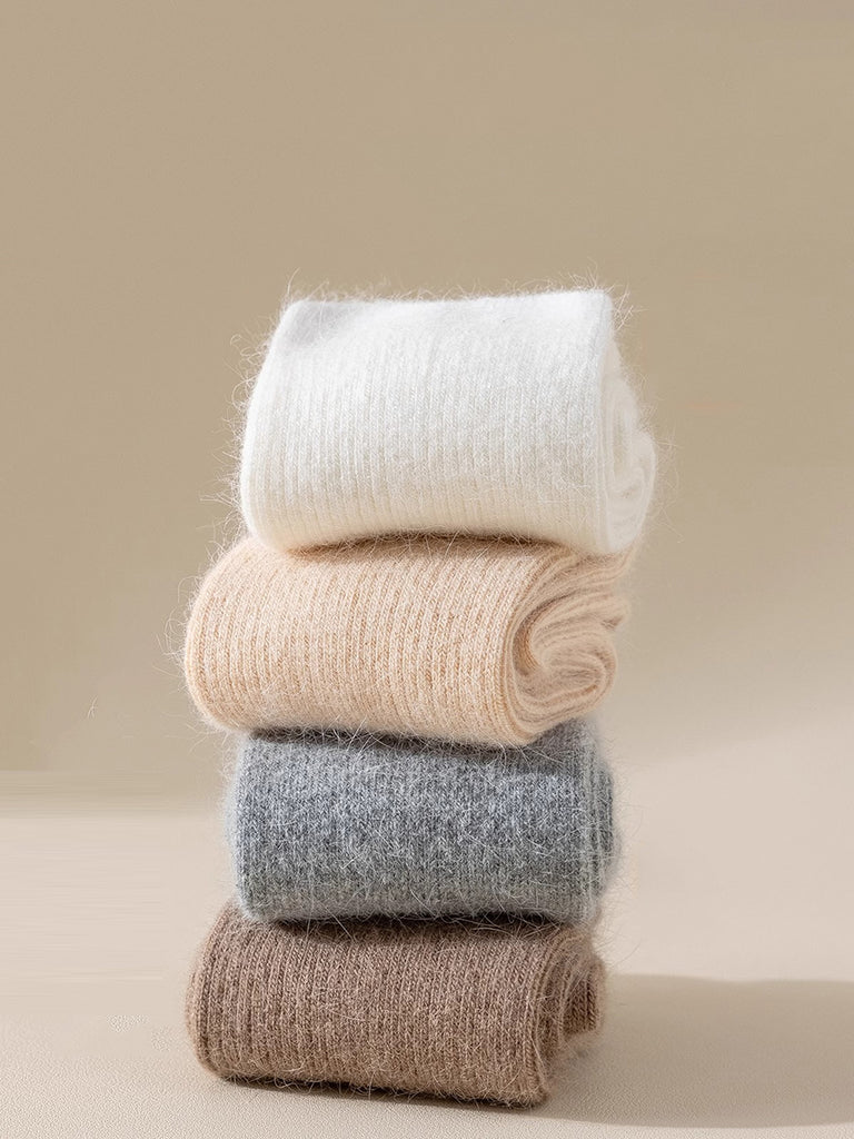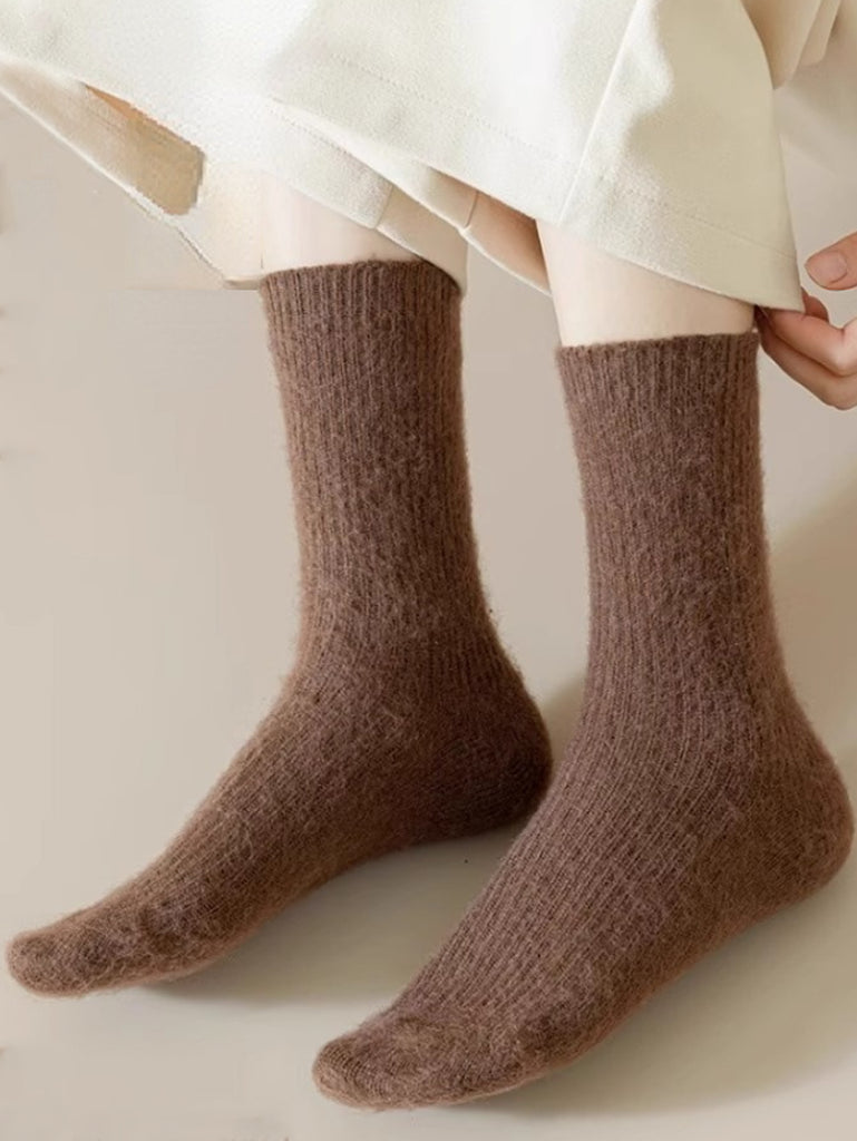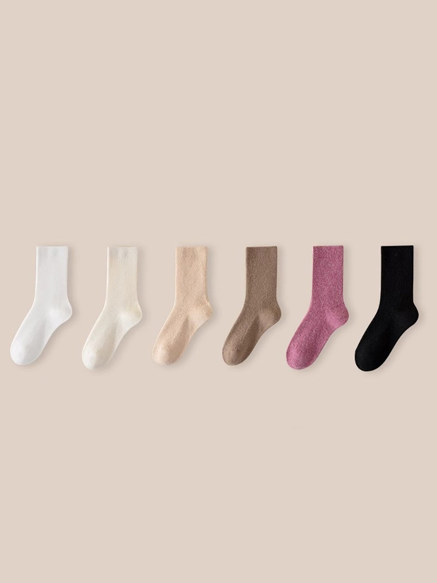 6 pares de calcetines de lana de color puro para mujer para invierno