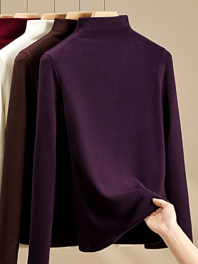 Suéter informal de otoño con cuello alto y color puro para mujer