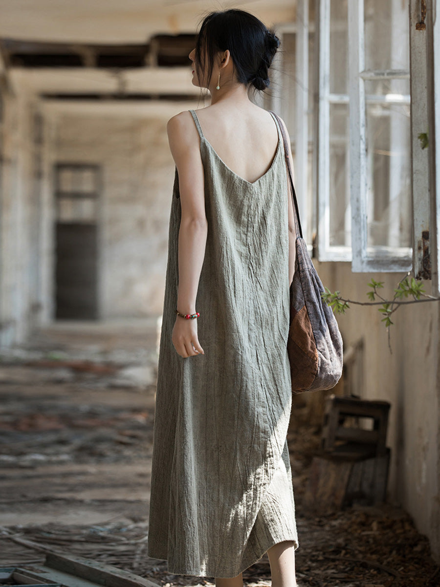 Vestido tipo chaleco de lino y algodón, holgado, liso, vintage, de verano para mujer