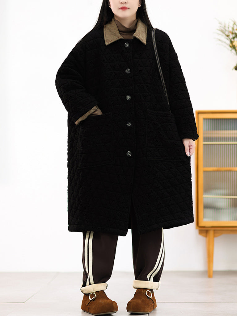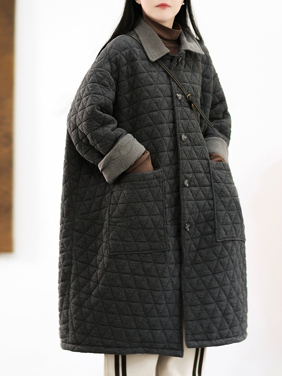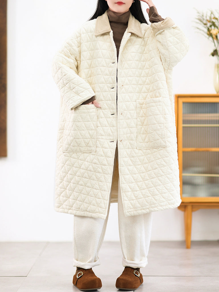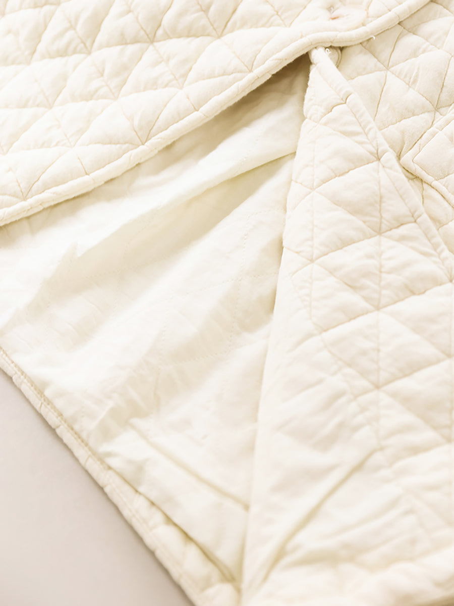 Confeccionado en algodón de primera calidad, este abrigo acolchado de largo extendido luce un clásico cuello vuelto y mangas raglán que brindan libertad de movimiento y una comodidad moderna. Su discreto color liso ofrece una versatilidad excepcional para combinar con otras prendas y crear diferentes estilos durante todo el año. Gracias a su diseño de inspiración vintage y sus mangas largas, esta prenda proporciona una calidez considerable durante los meses de otoño e invierno, manteniendo a la vez una apariencia elegante y sofisticada.