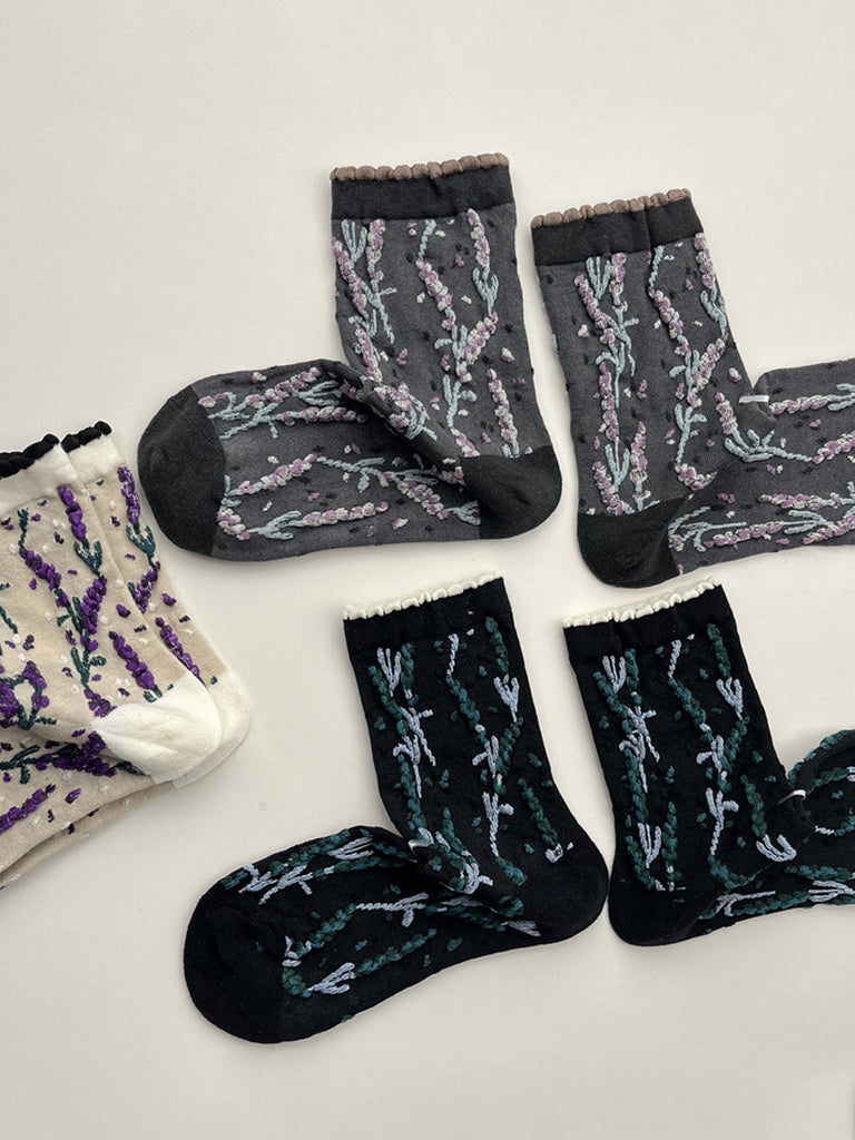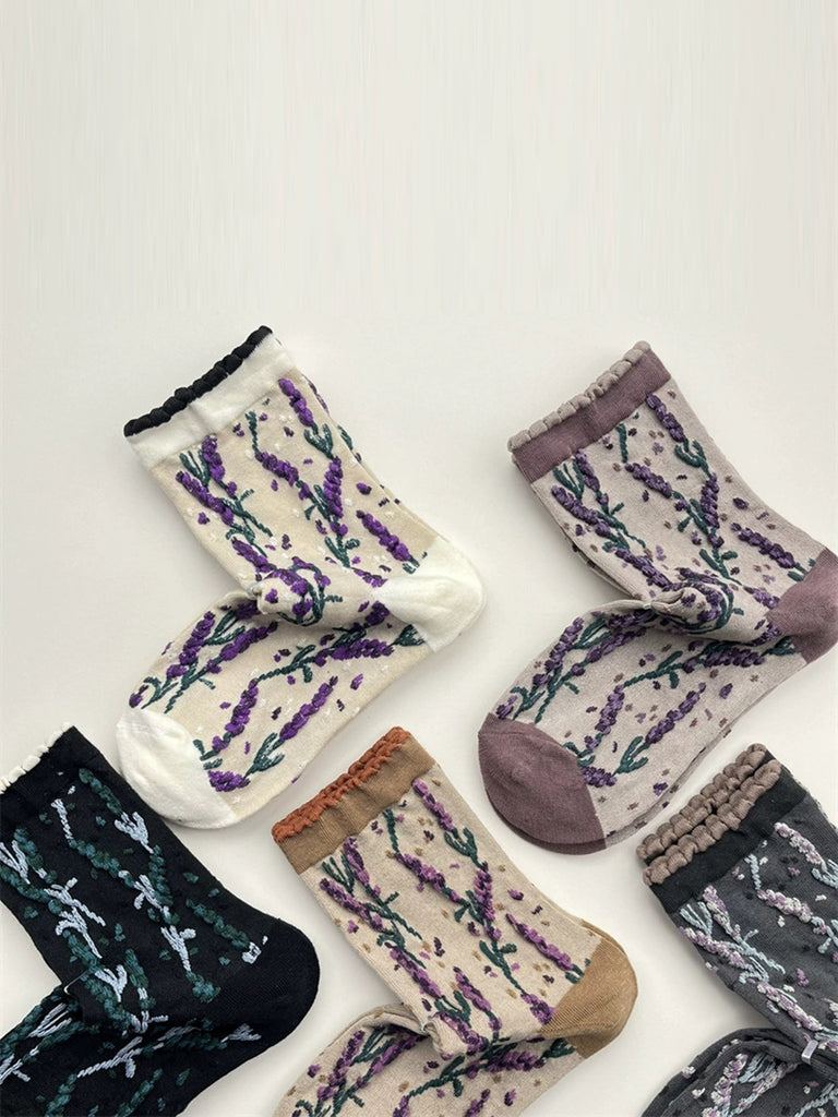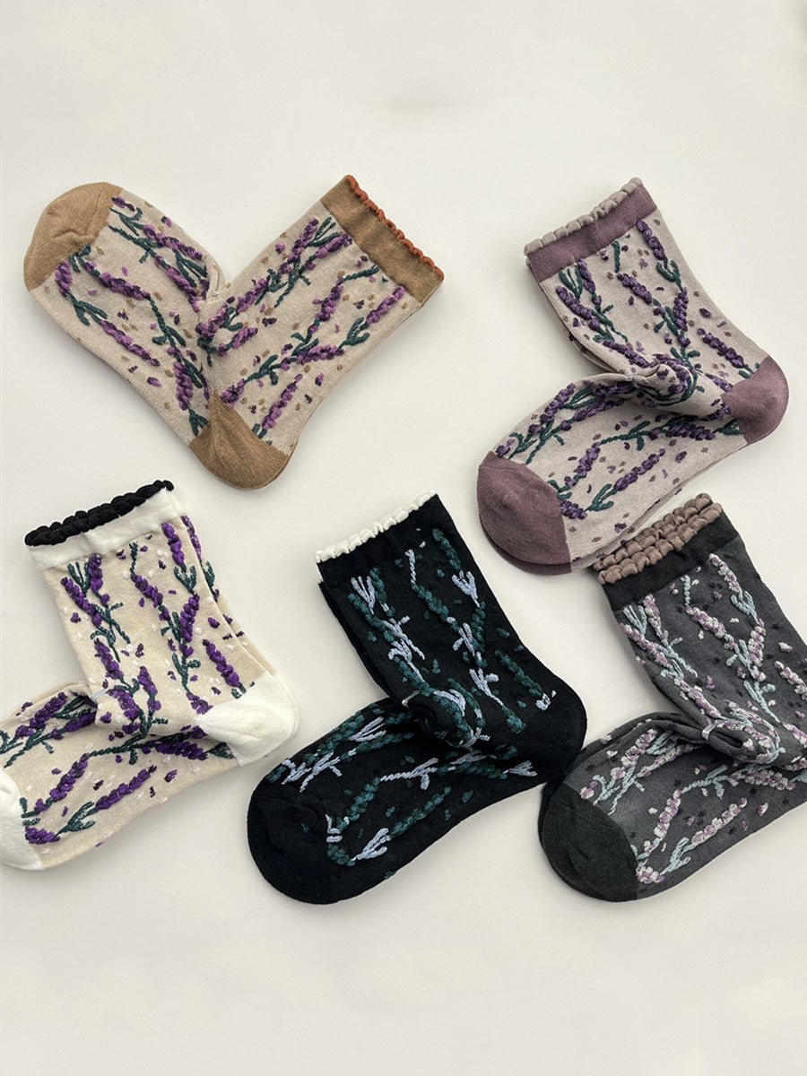 5 pares de calcetines de algodón jacquard con estampado floral para mujer, ideales para el invierno.