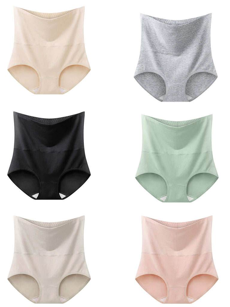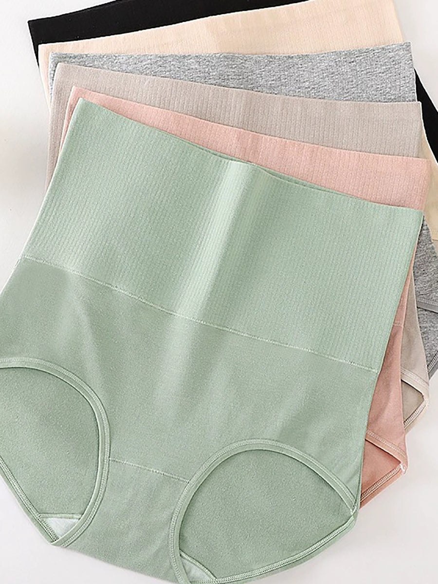 Conjunto de ropa interior femenina casual de cintura alta en color liso (6 piezas)