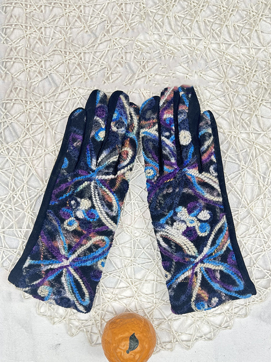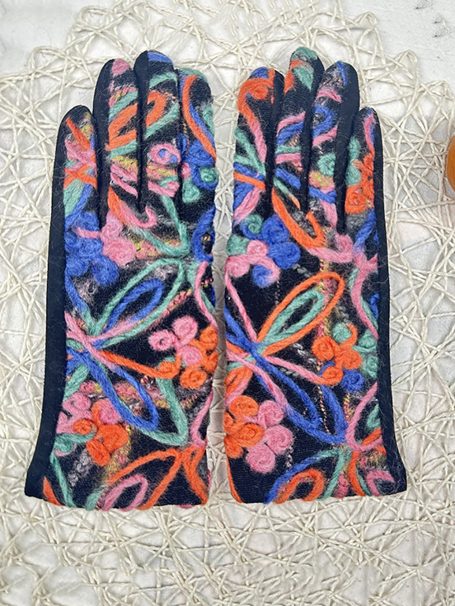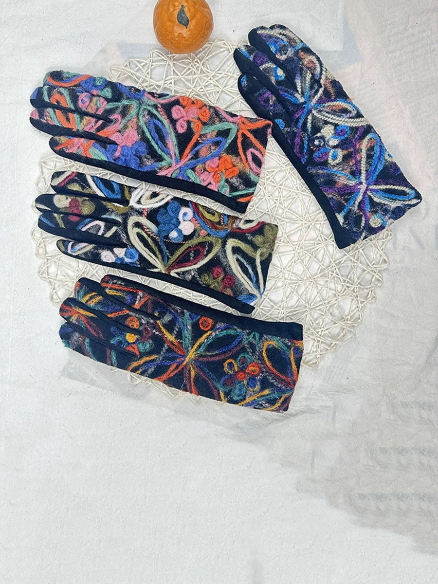 Guantes de ciclismo cálidos de punto con flores étnicas para mujer