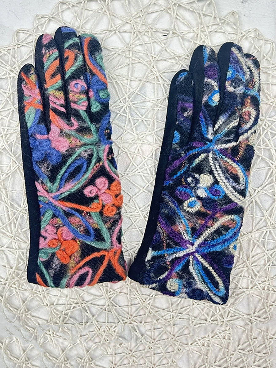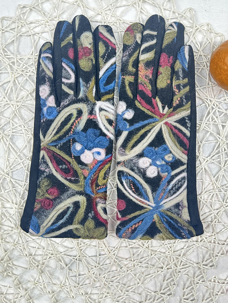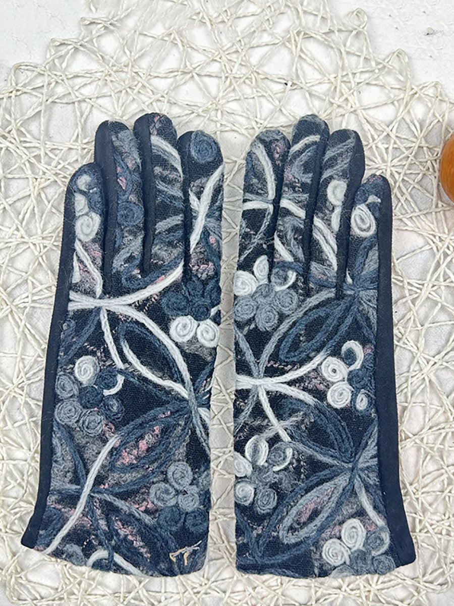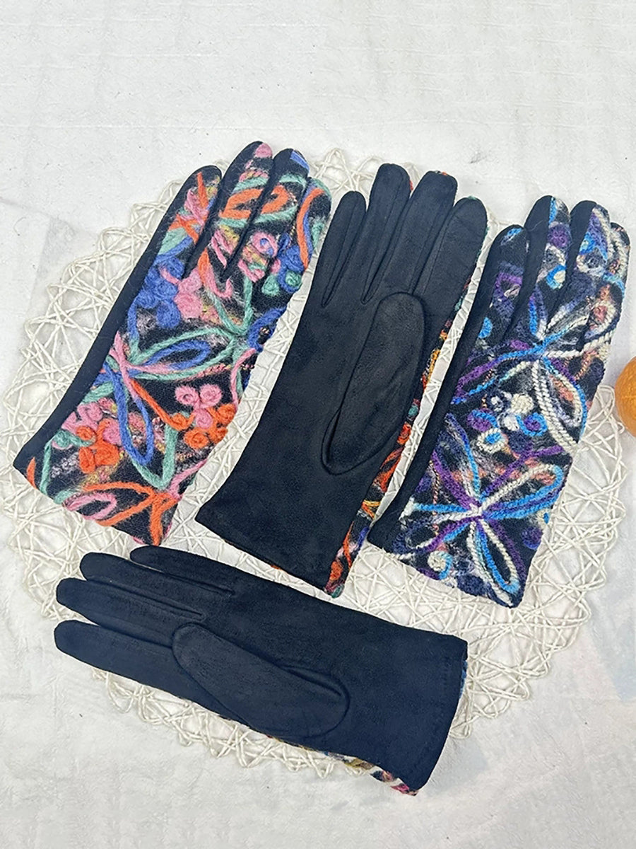 Guantes de ciclismo cálidos de punto con flores étnicas para mujer