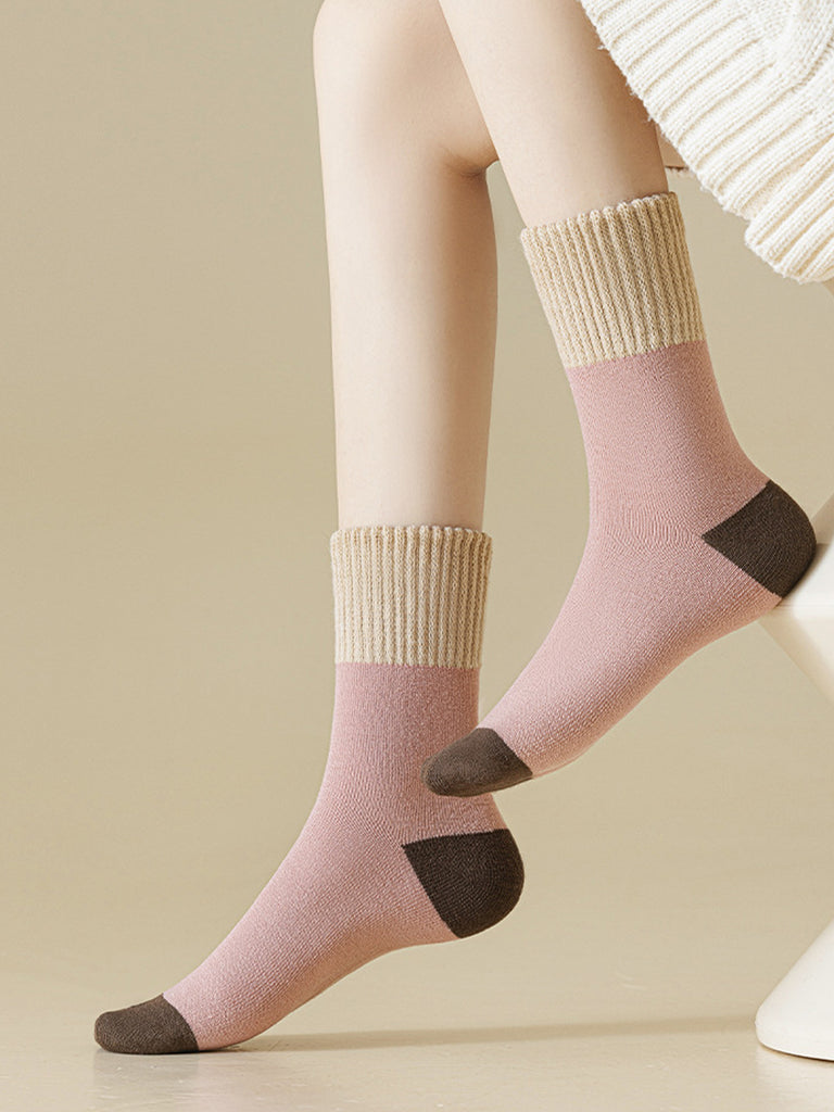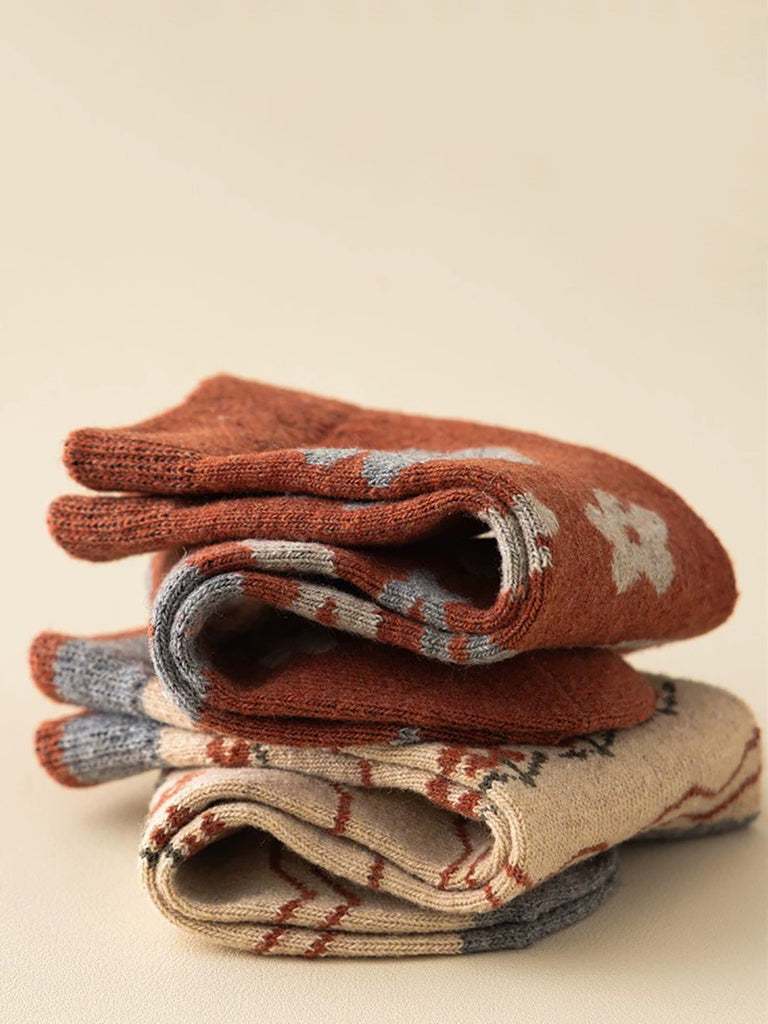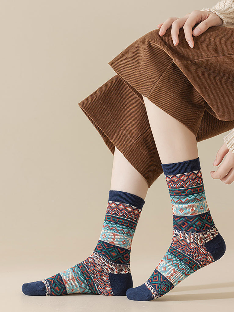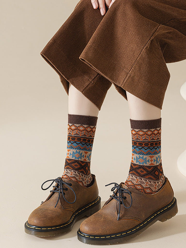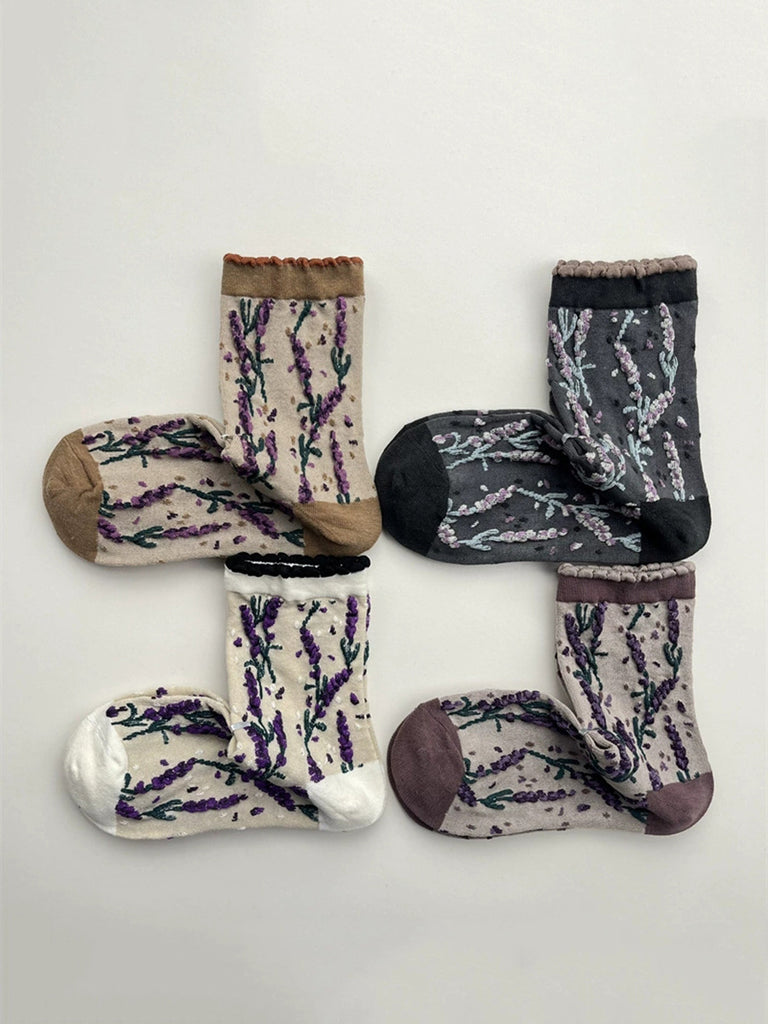 5 pares de calcetines de algodón jacquard con estampado floral para mujer, ideales para el invierno.