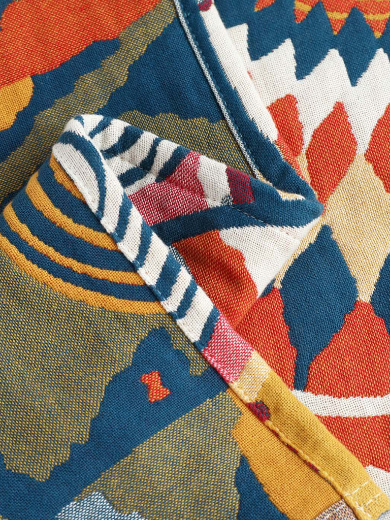 【Proceso de Jacquard teñido con hilo】: Jacquard, tratamiento antibolitas, teñido por proceso reactivo, costura fina de 4 agujas en centímetros