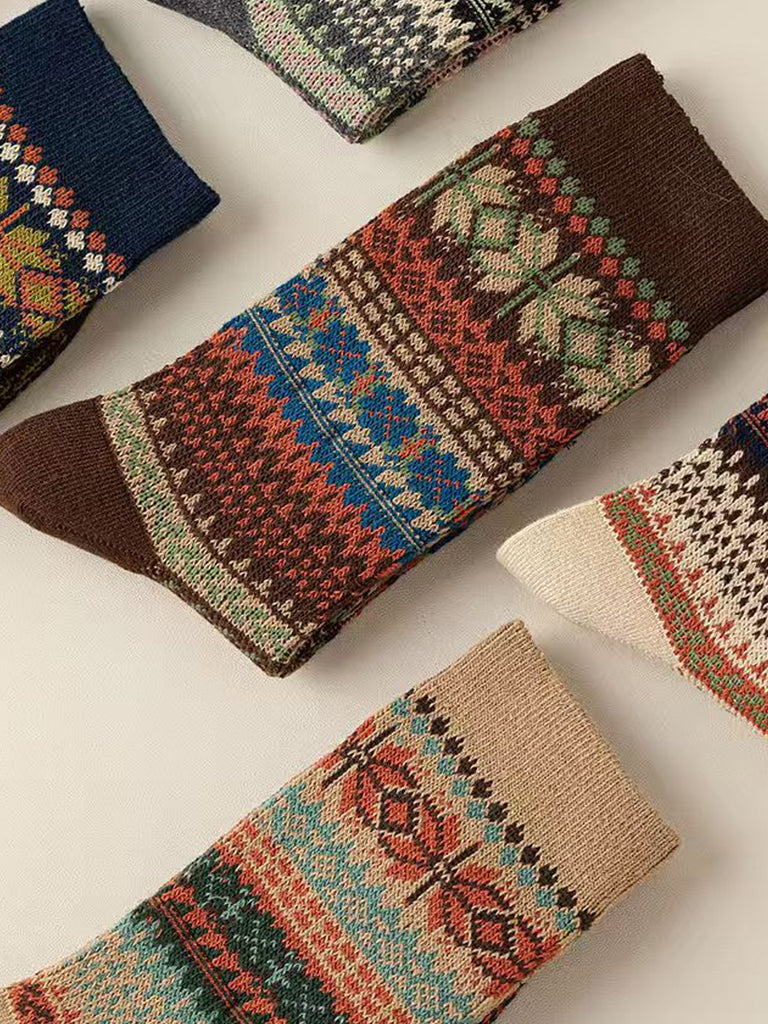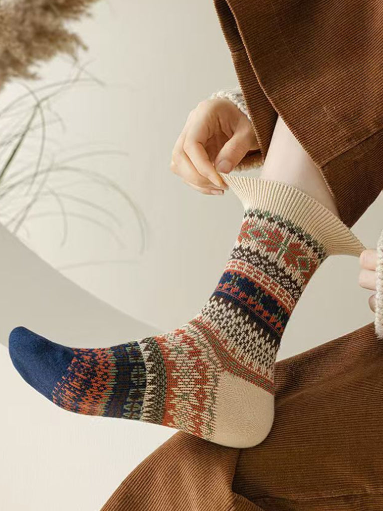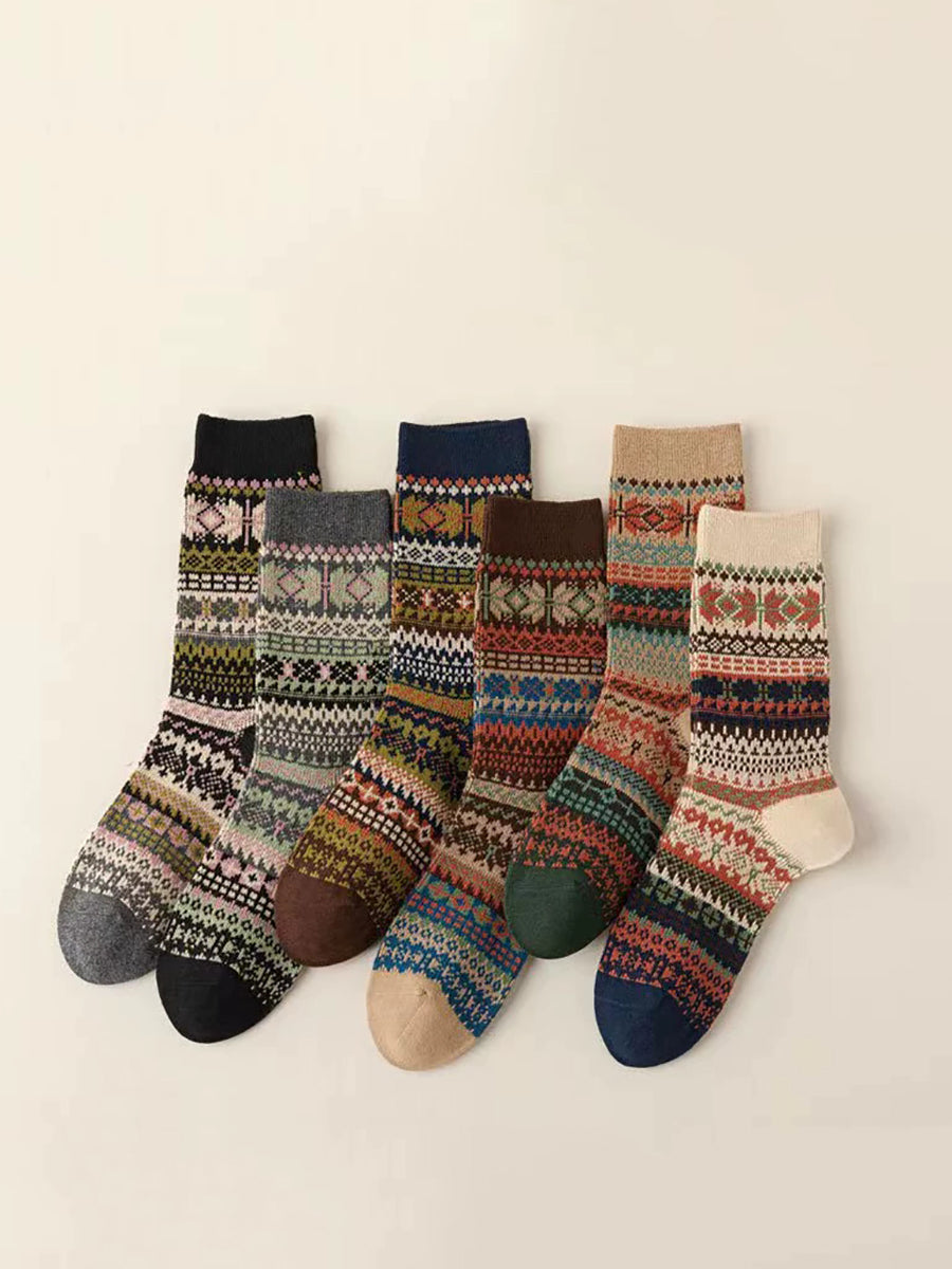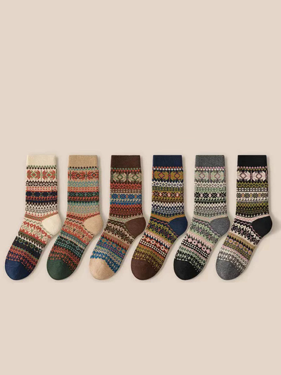 6 pares de calcetines vintage de algodón a rayas de invierno para mujer