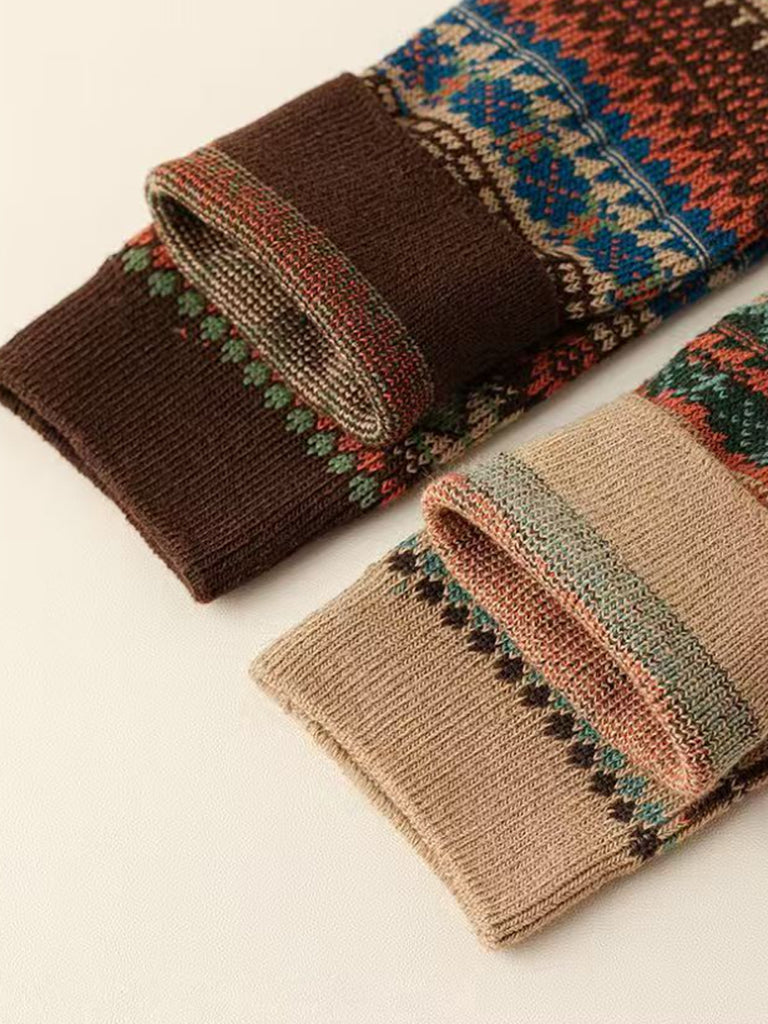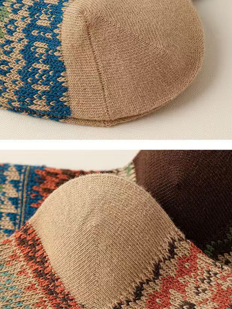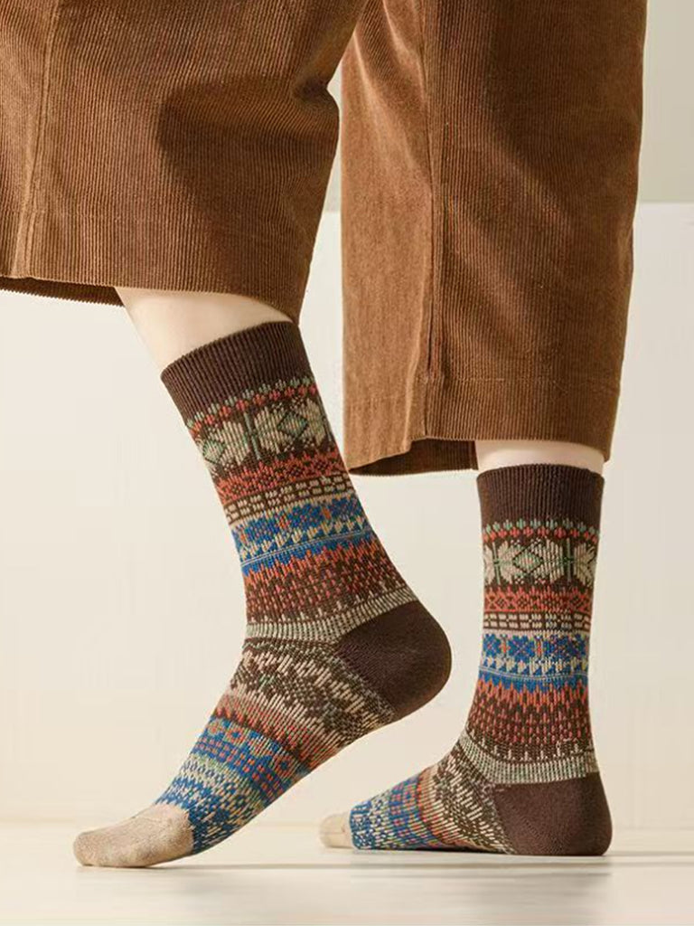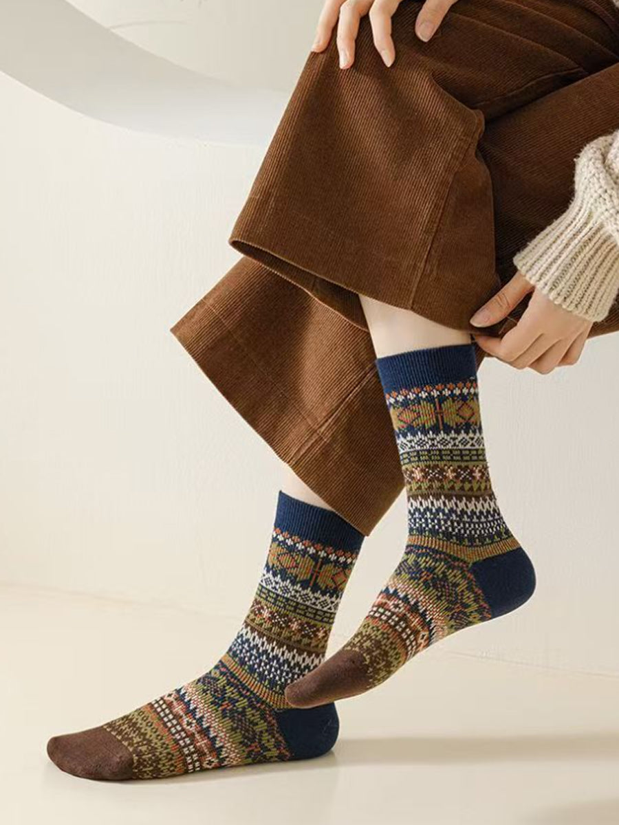 6 pares de calcetines vintage de algodón a rayas de invierno para mujer