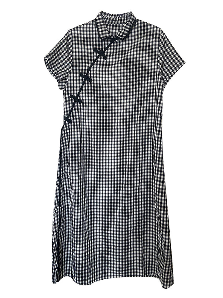 Vestido holgado vintage de verano con estampado de rana y cuadros escoceses para mujer de talla grande
