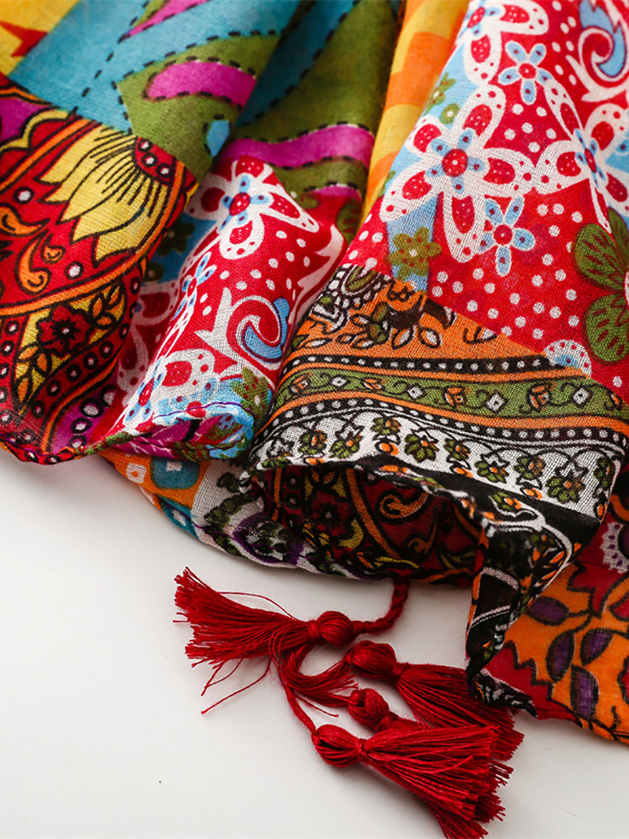 Bufanda tipo chal con borlas empalmadas estilo vintage de verano para mujer