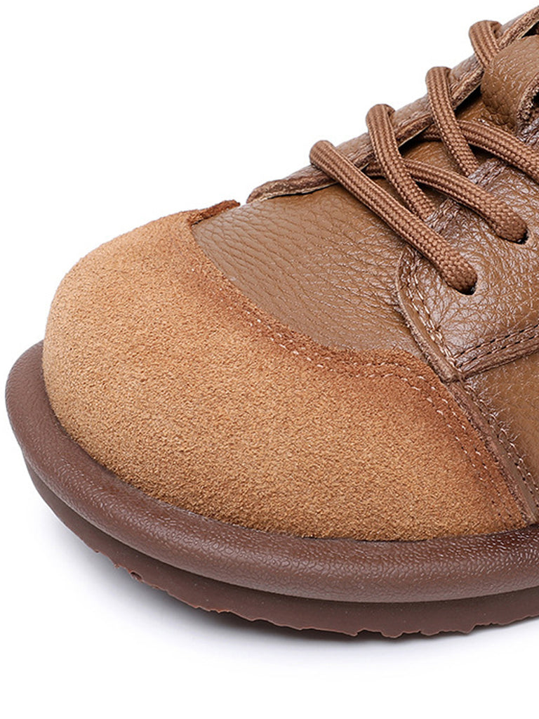 Zapatos planos vintage de cuero con tiras empalmadas para mujer