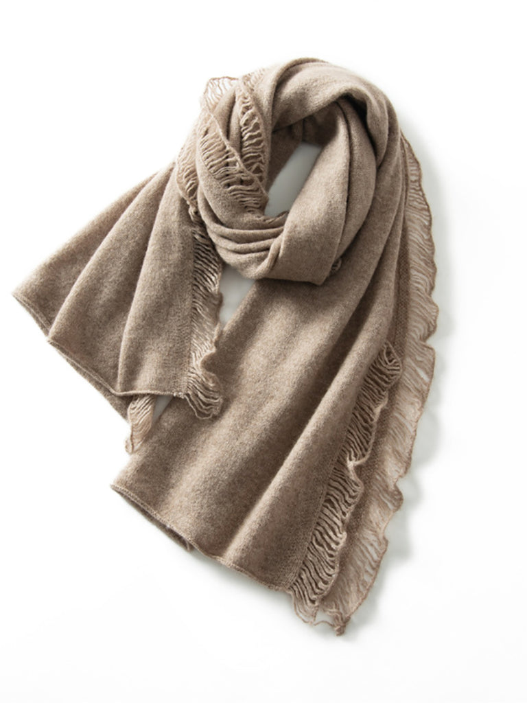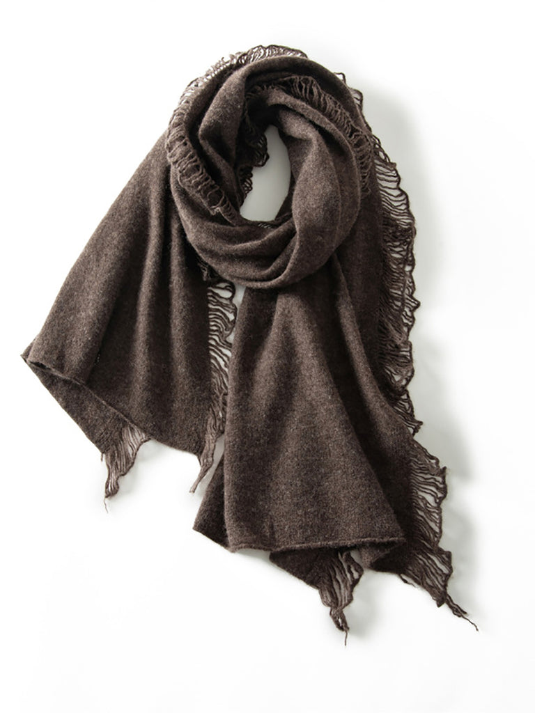 Bufanda con borlas lisas de cachemira cálida vintage para mujer