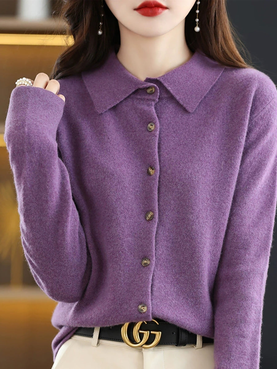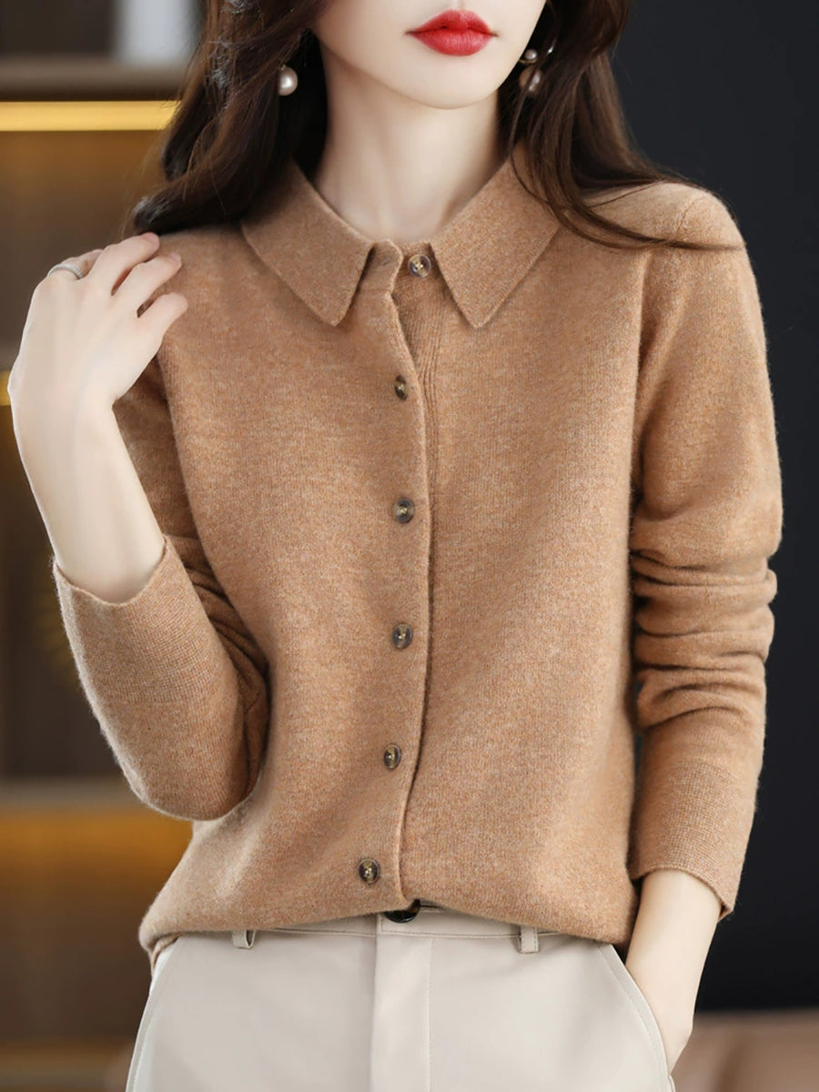 Suéter tipo cárdigan informal con cuello vuelto para mujer, primavera
