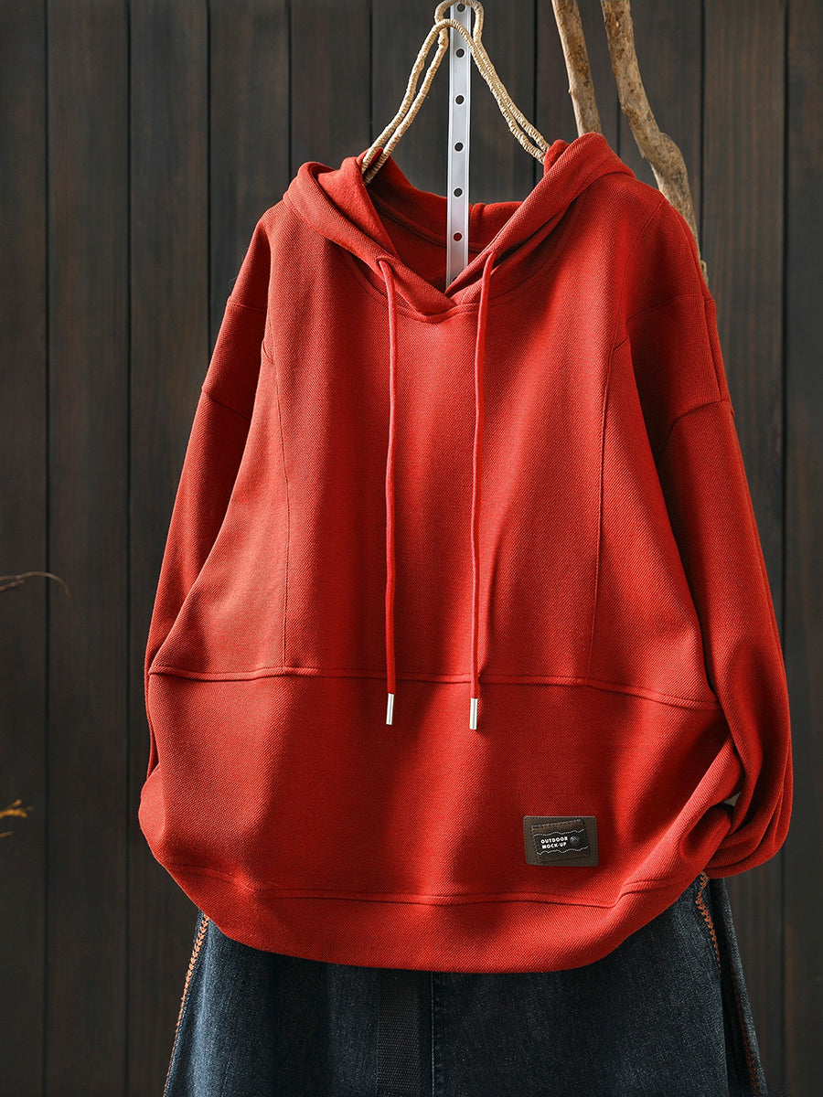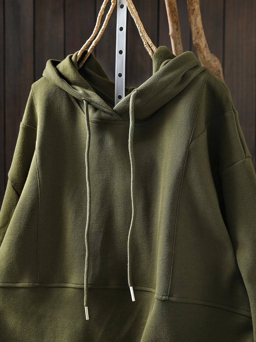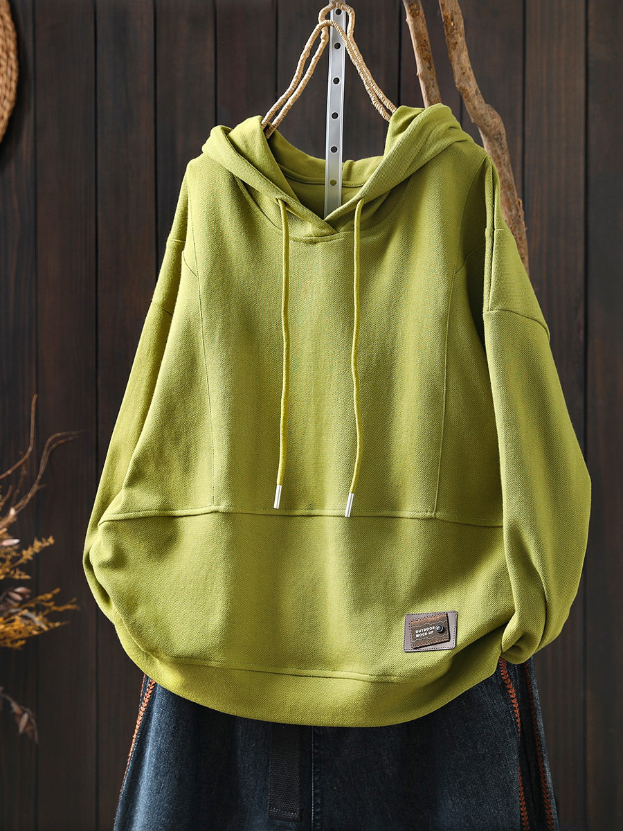 Sudadera con capucha de algodón de color puro informal de primavera para mujer