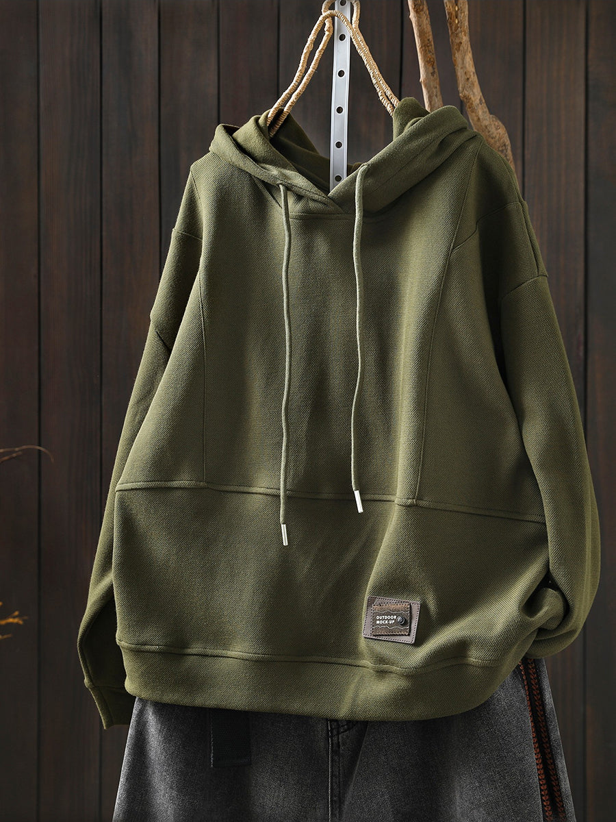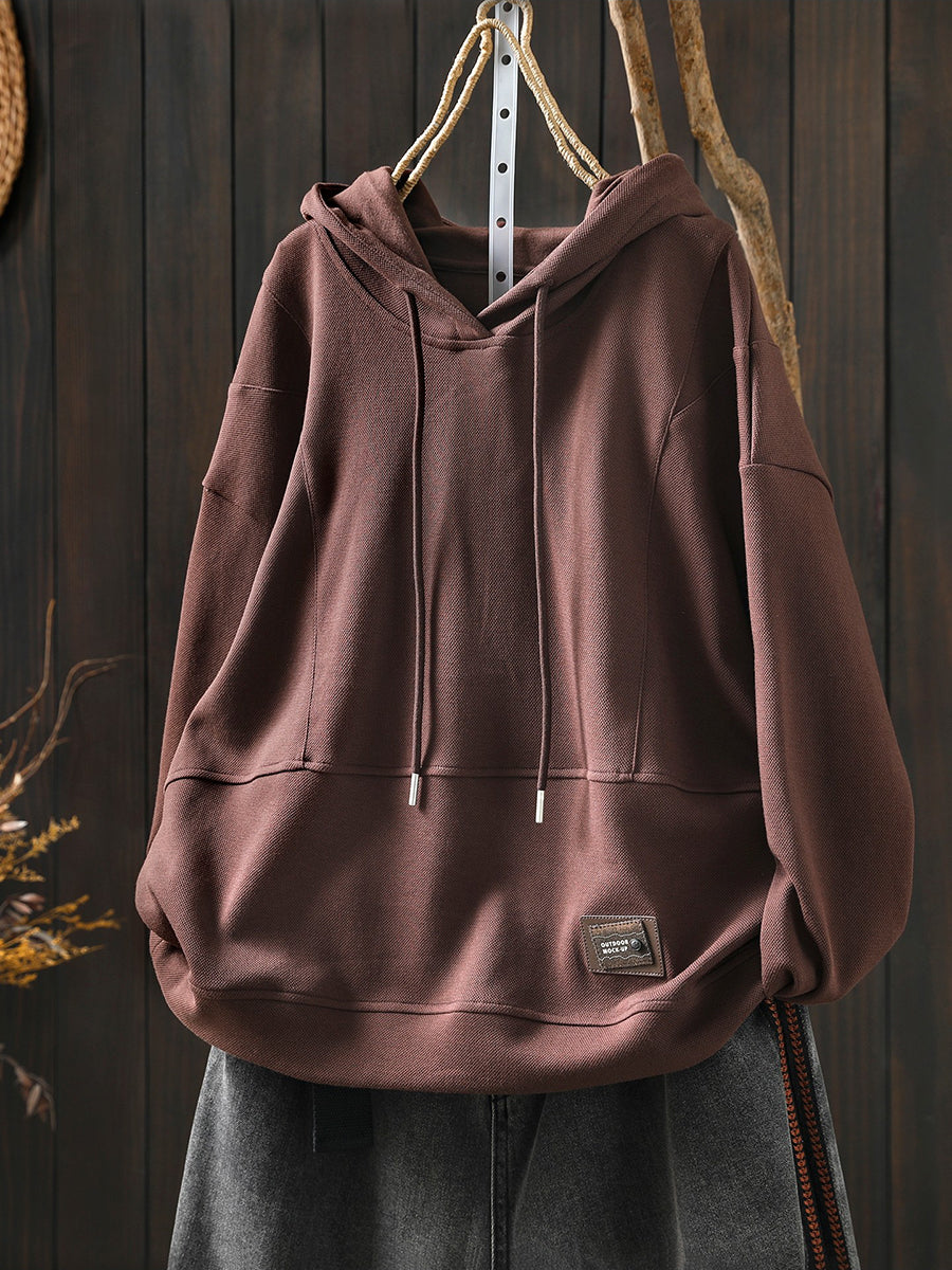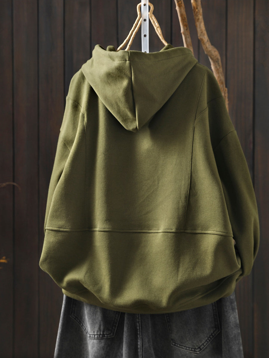 Sudadera con capucha de algodón de color puro informal de primavera para mujer
