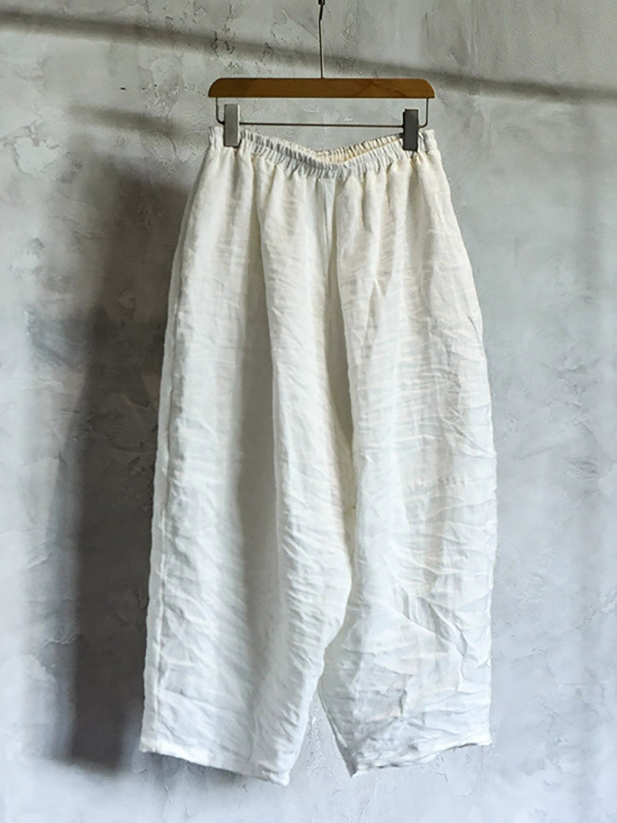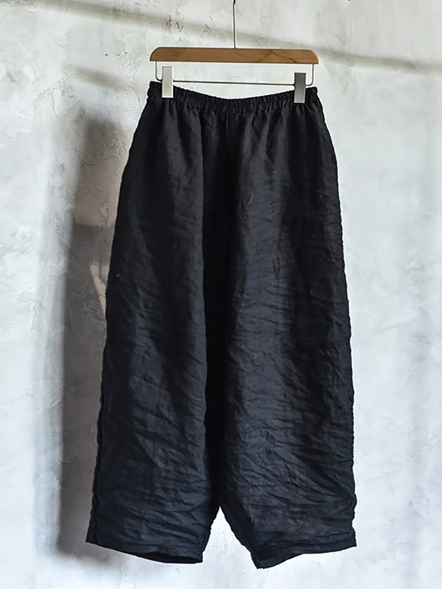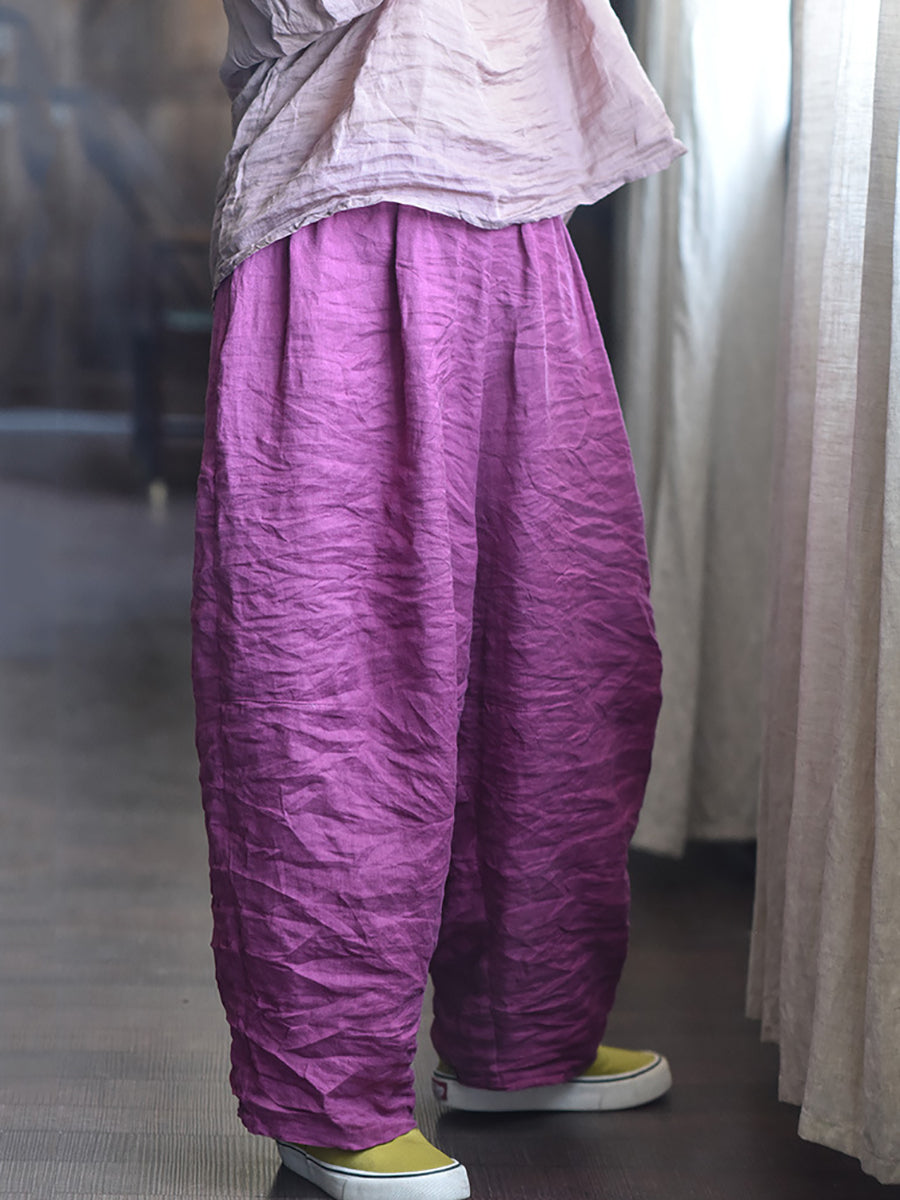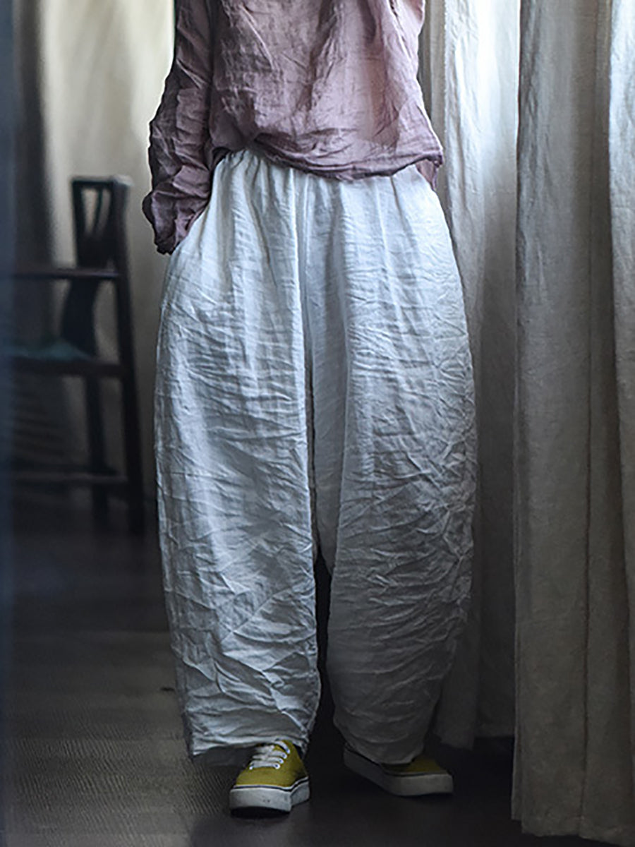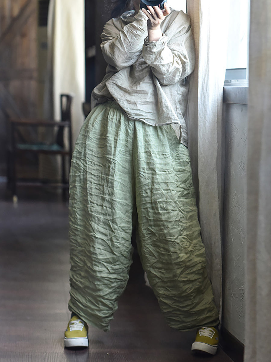 Pantalones anchos de lino de color puro retro de primavera para mujer