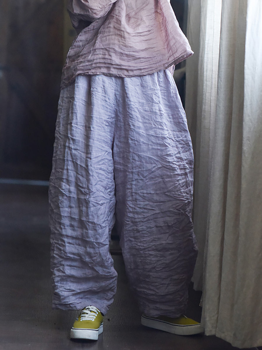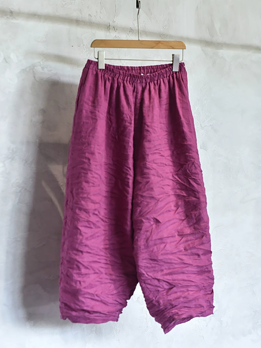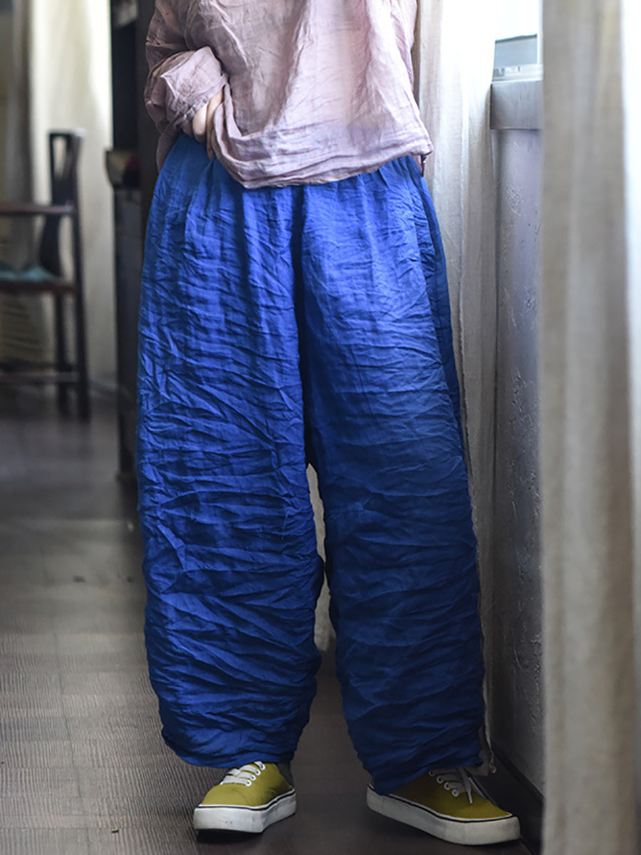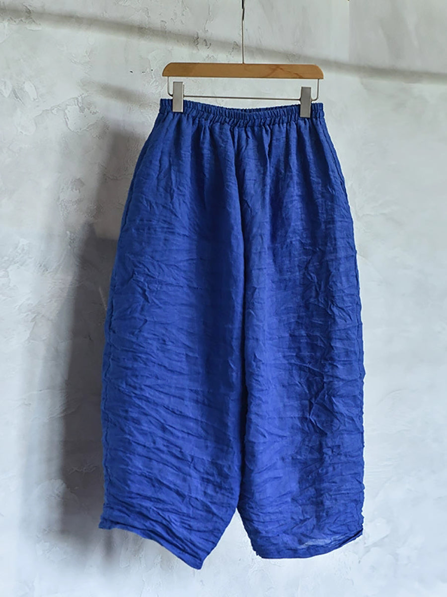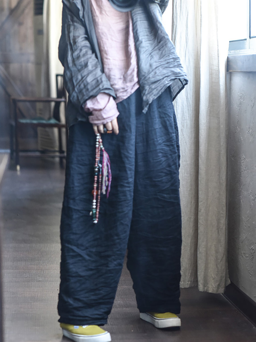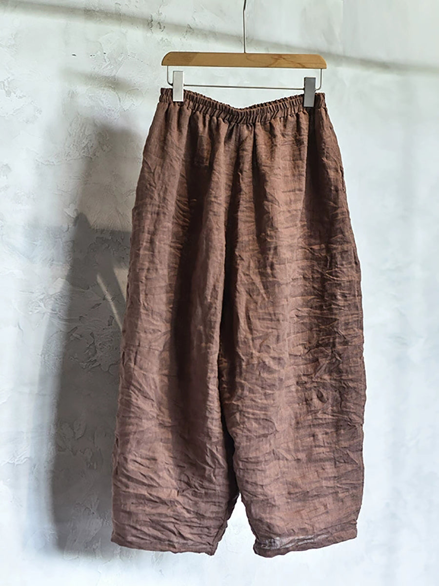 Pantalones anchos de lino de color puro retro de primavera para mujer