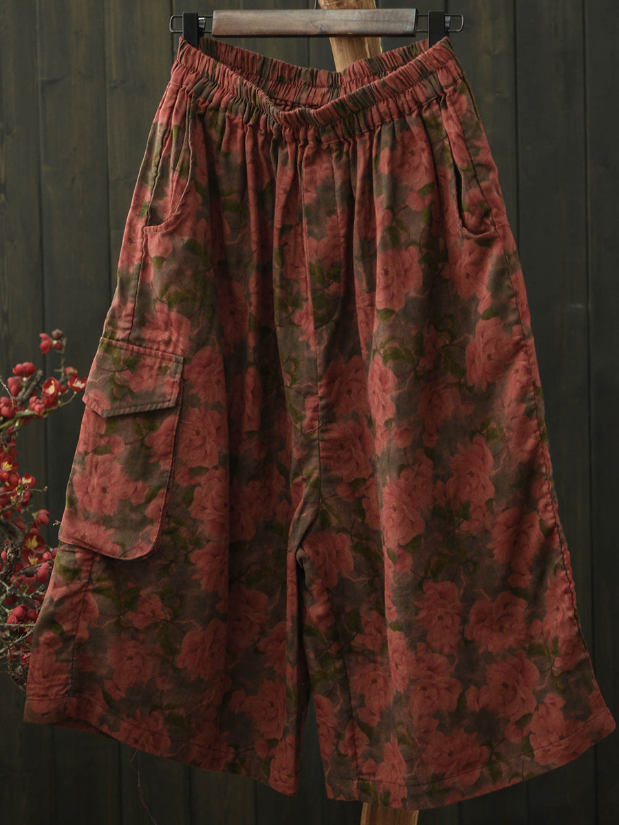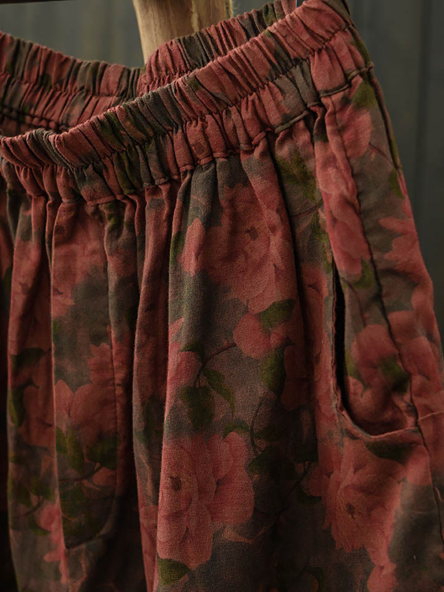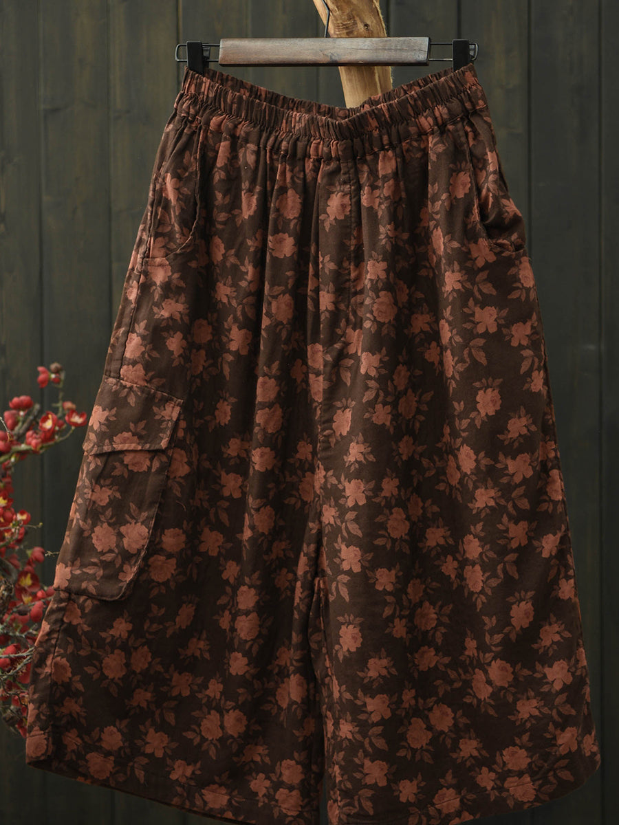 Pantalones anchos de algodón con estampado floral estilo retro para mujer, ideales para el verano.
