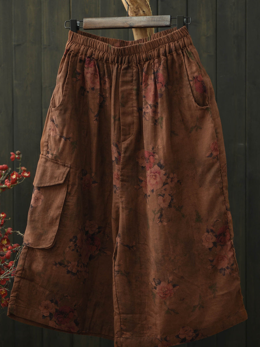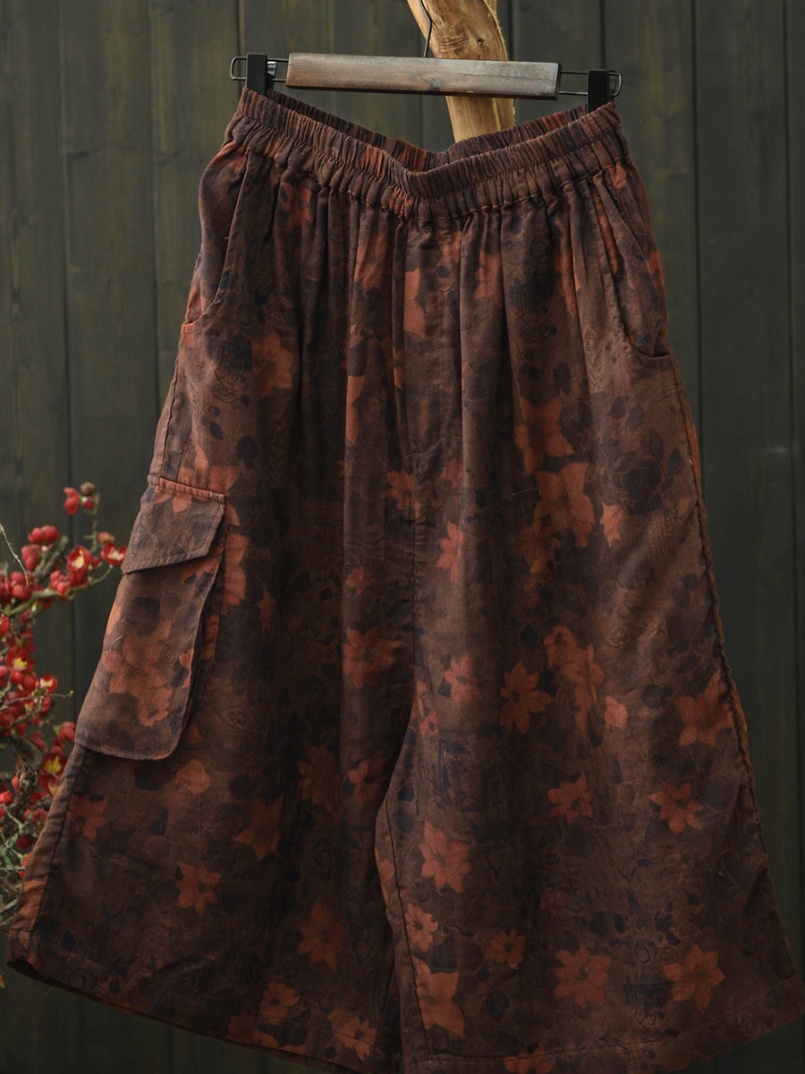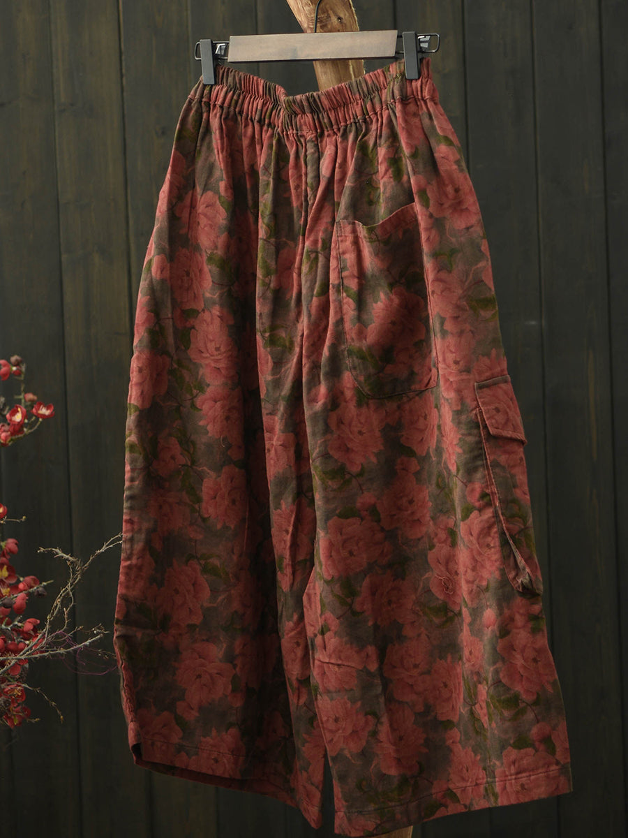 Pantalones anchos de algodón con estampado floral estilo retro para mujer, ideales para el verano.