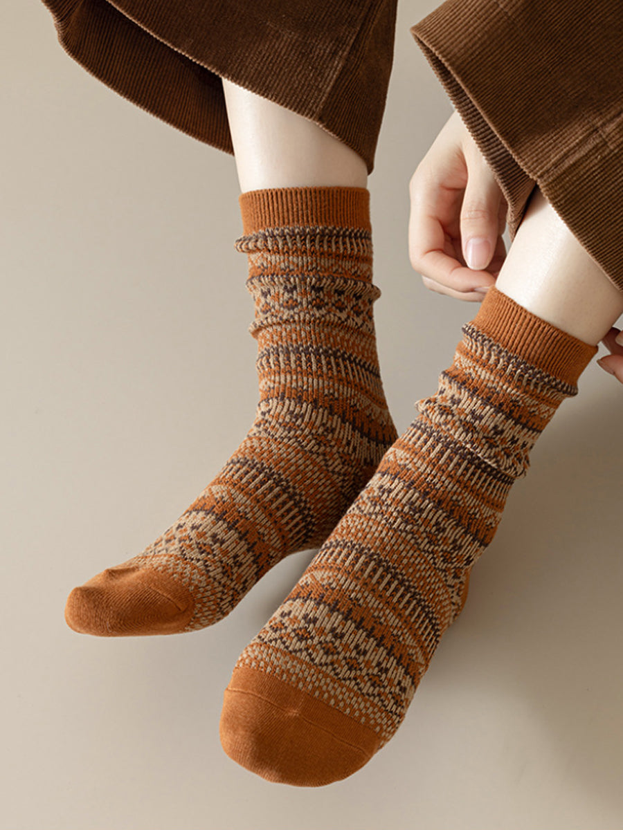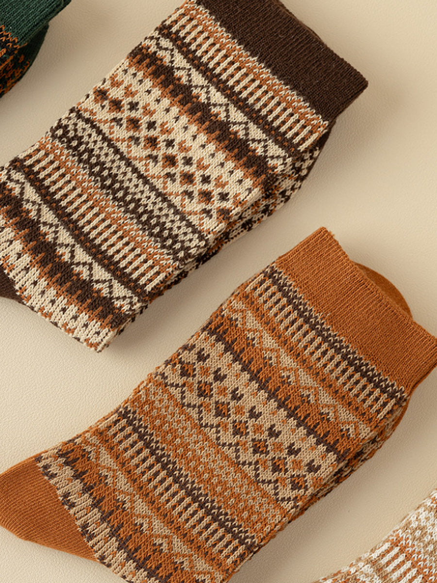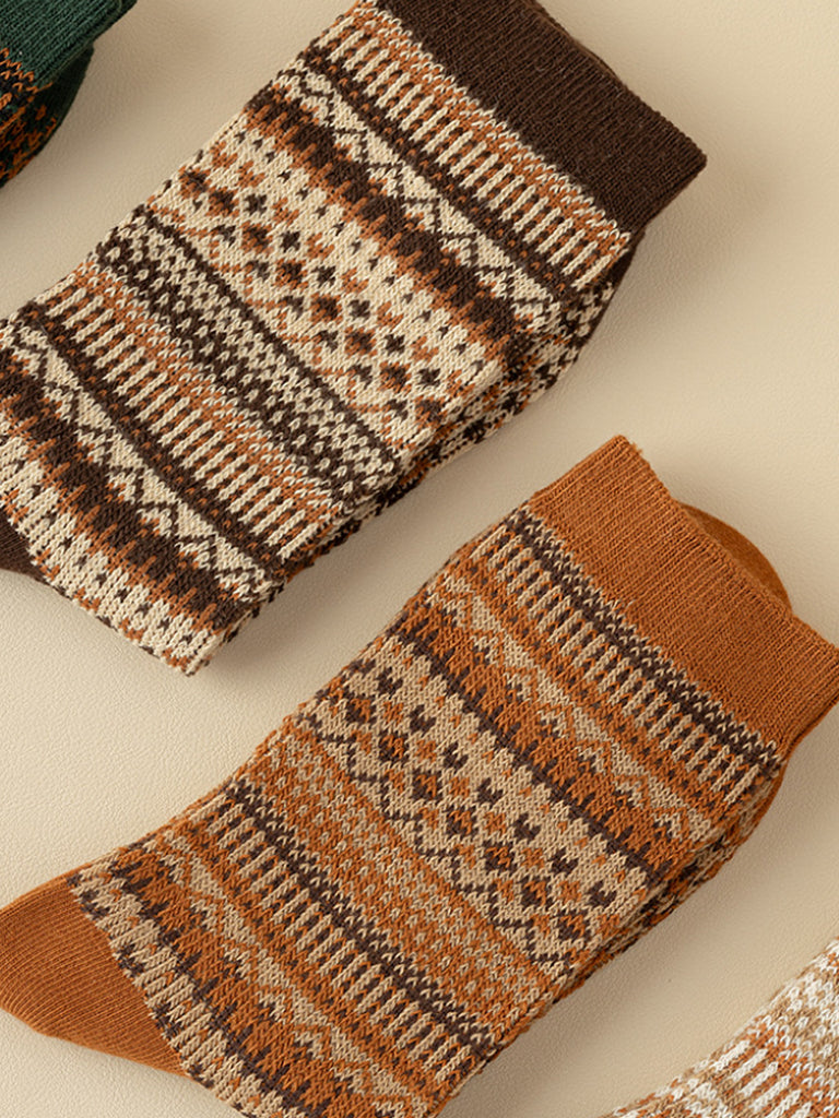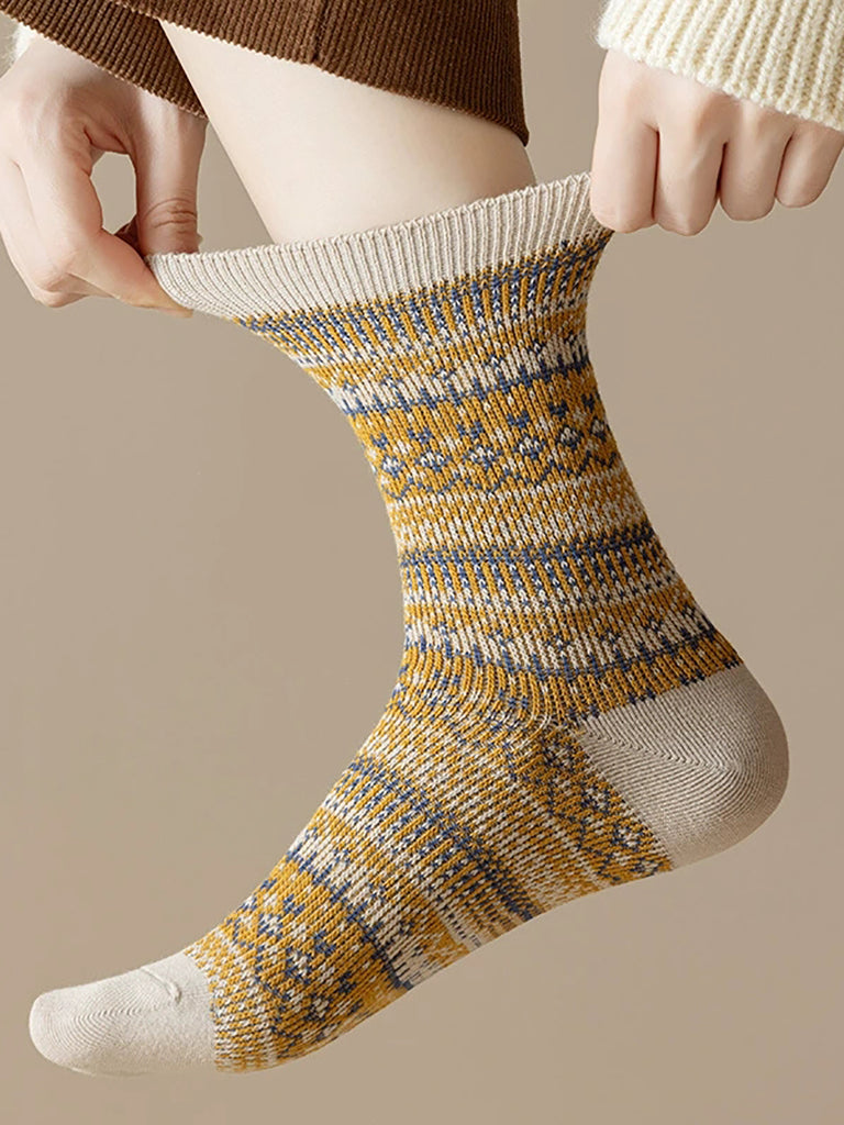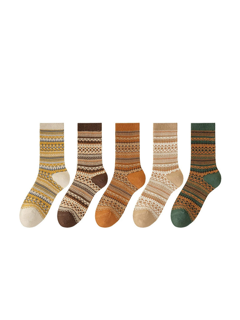 5 pares de calcetines de algodón a rayas vintage de invierno para mujer