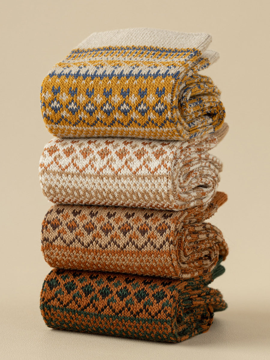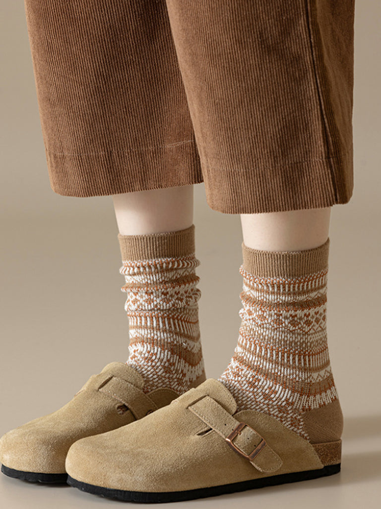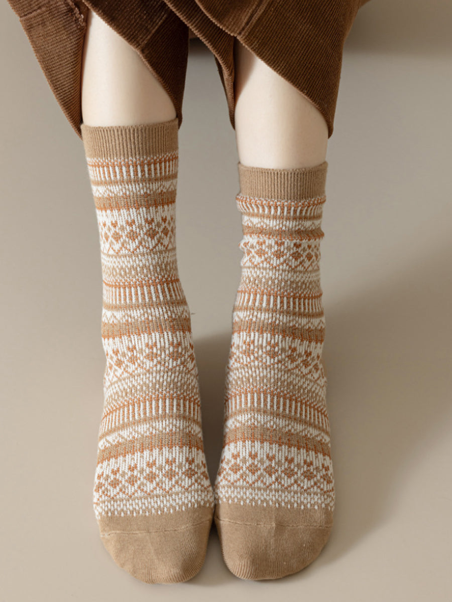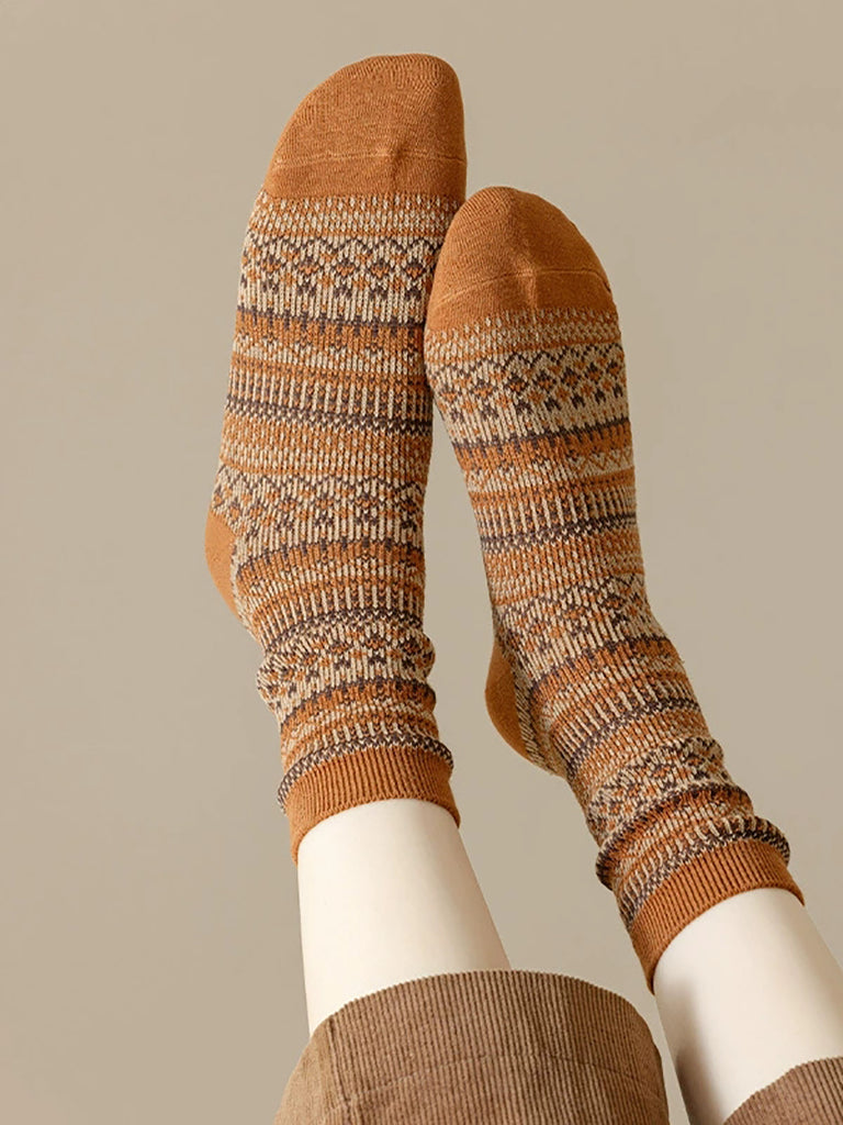 5 pares de calcetines de algodón a rayas vintage de invierno para mujer