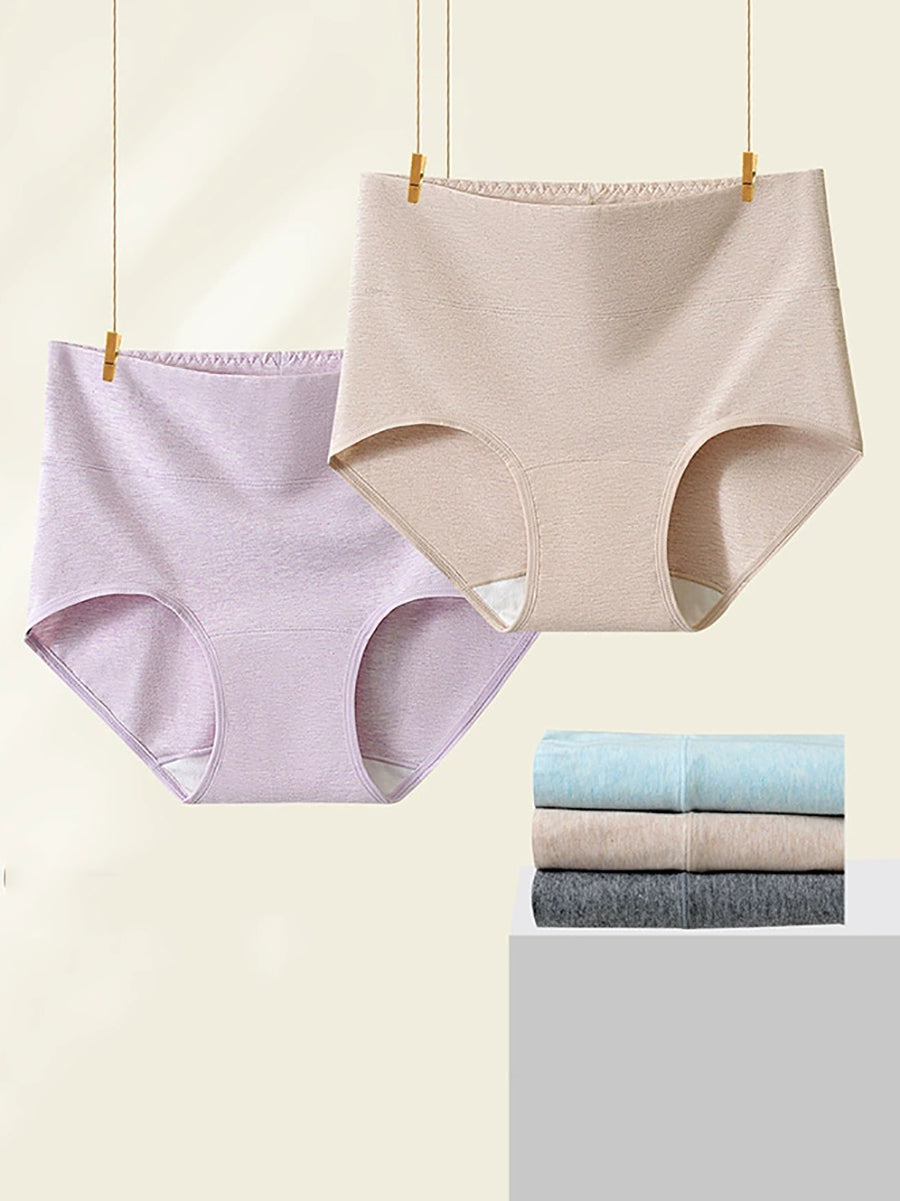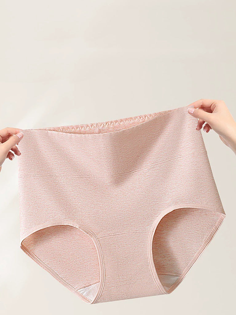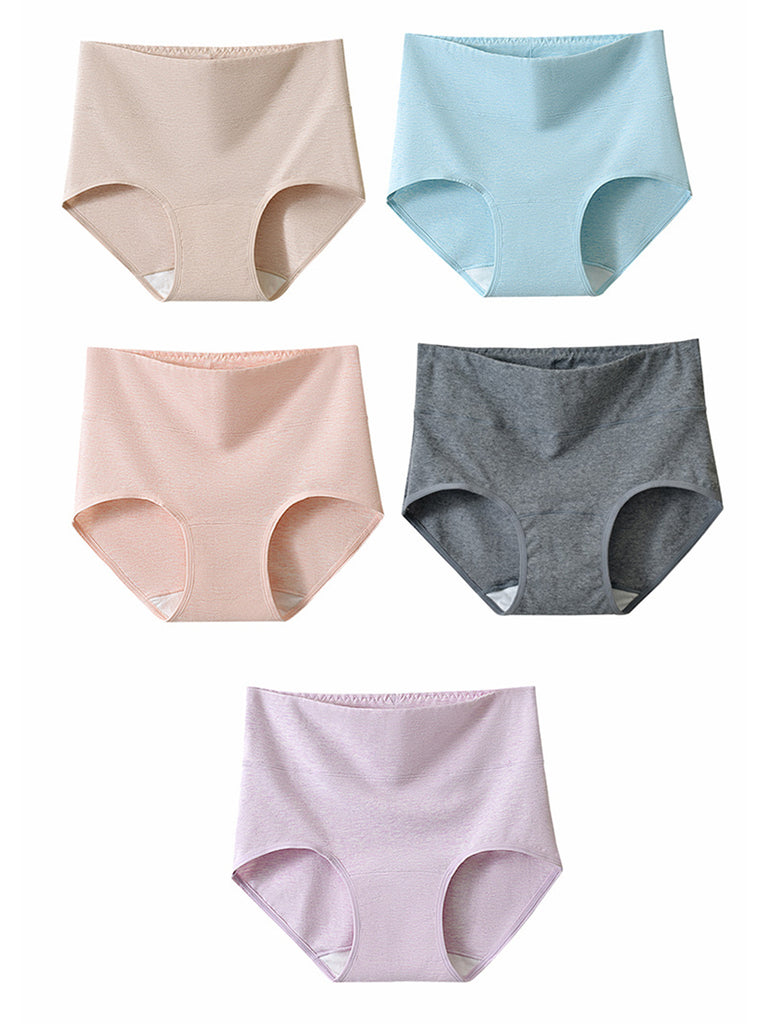 5 piezas de ropa interior de algodón de cintura alta de color puro para mujer