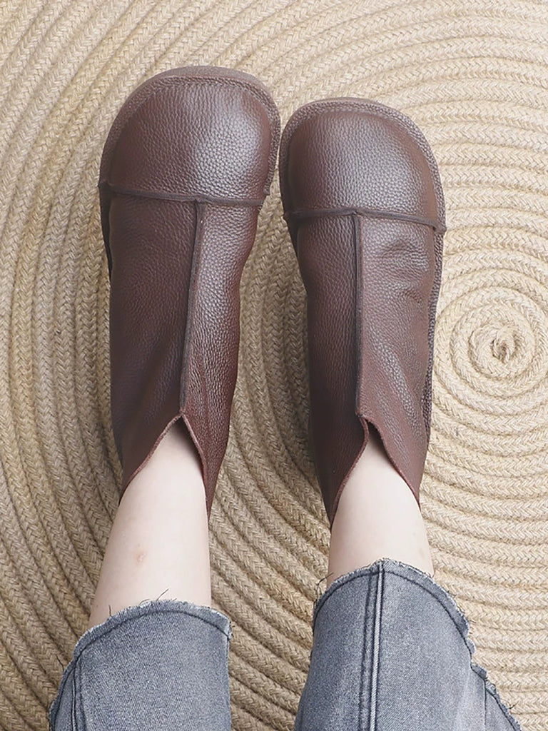 Botas de tacón bajo con empalme de cuero informal de otoño para mujer