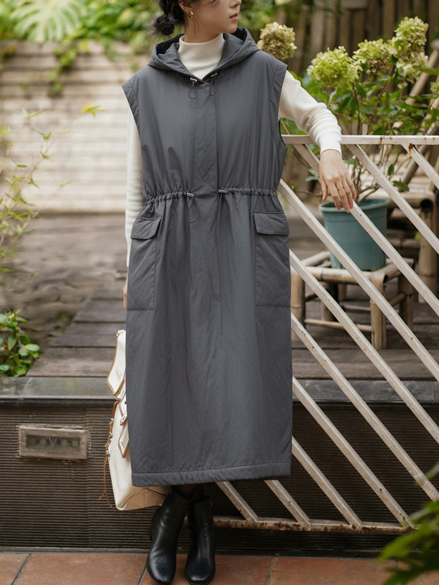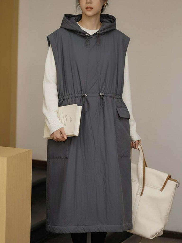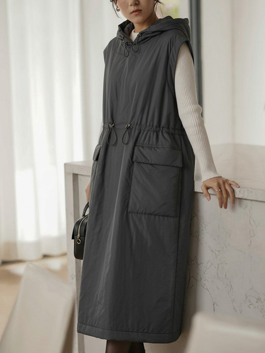 Vestido tipo chaleco con capucha de color puro informal de otoño para mujer