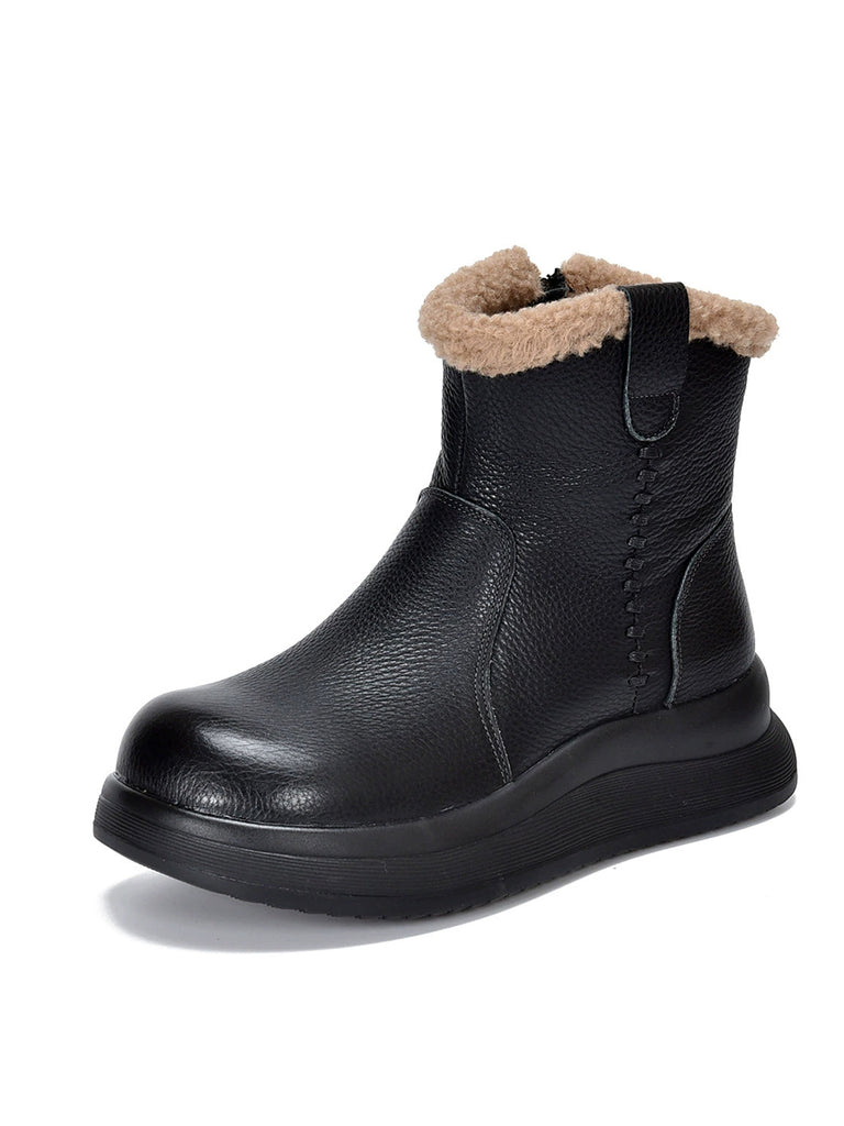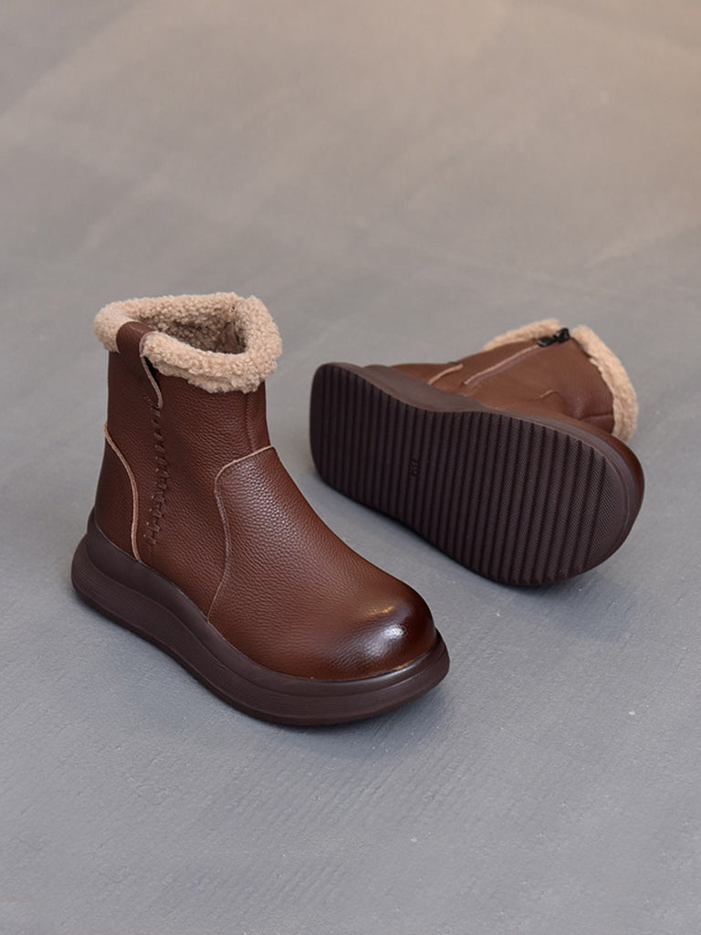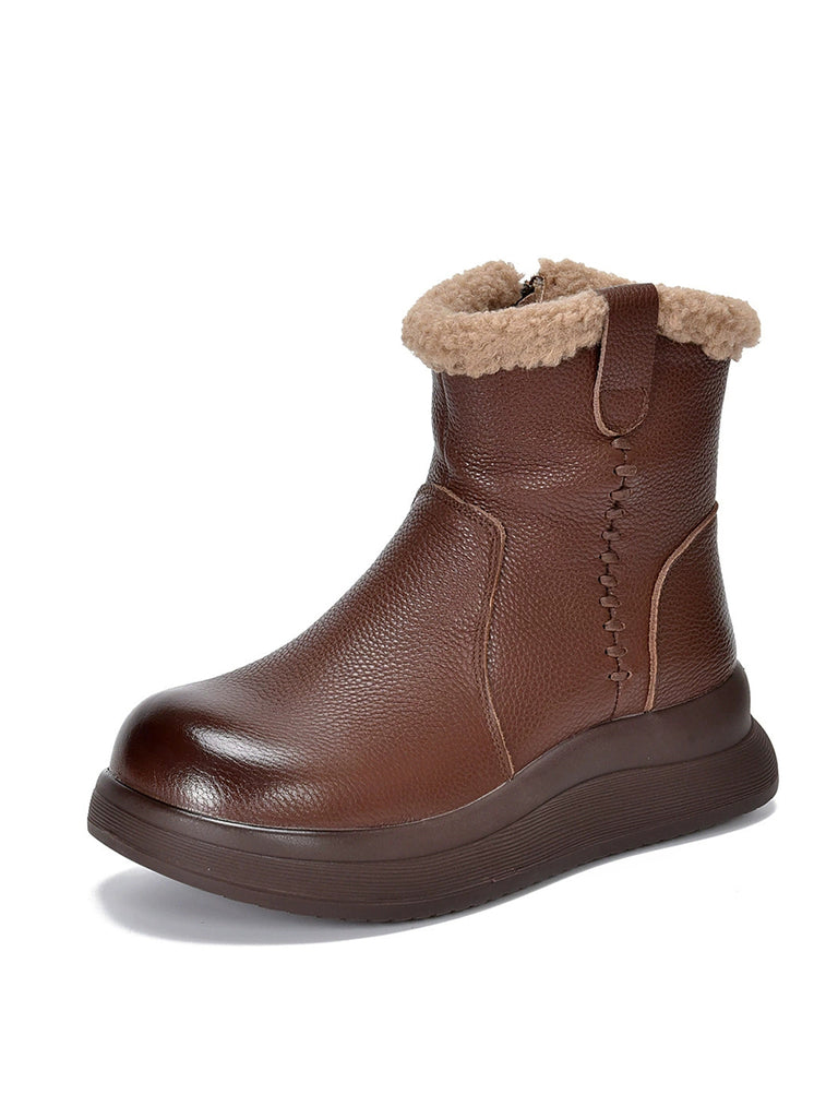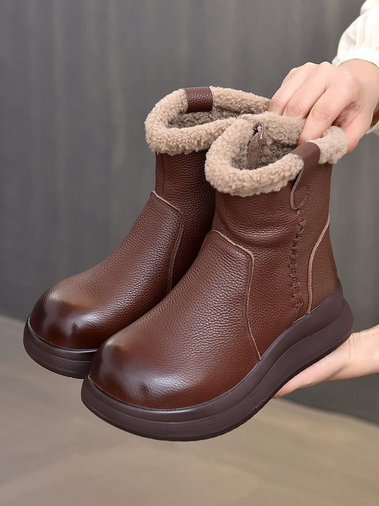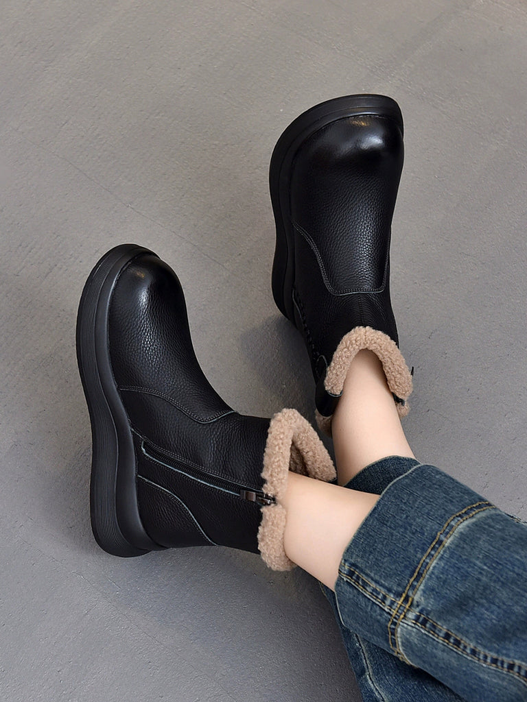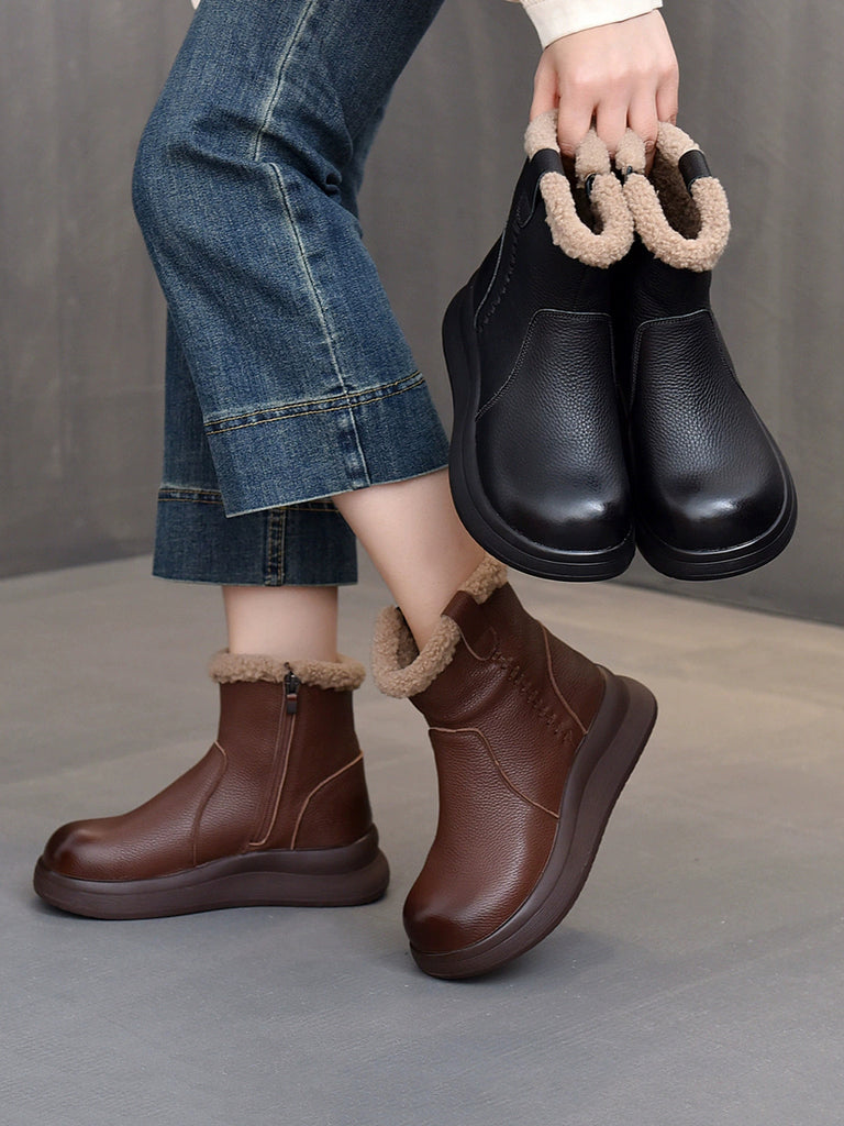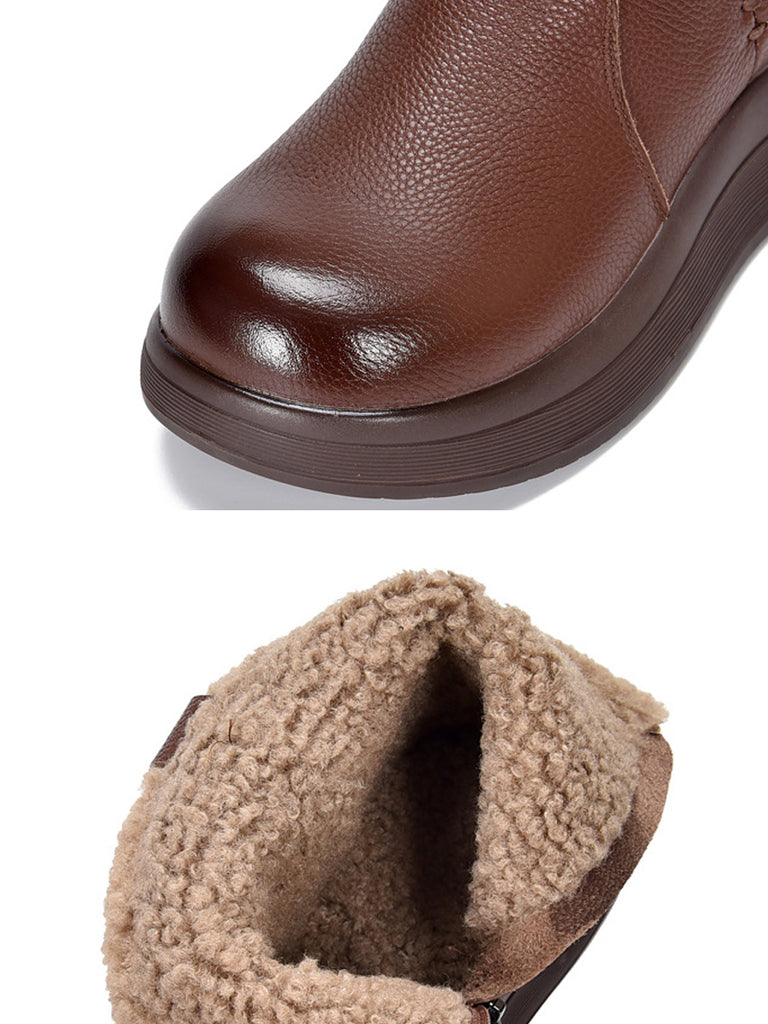 Botas vintage de mujer de piel auténtica con forro polar
