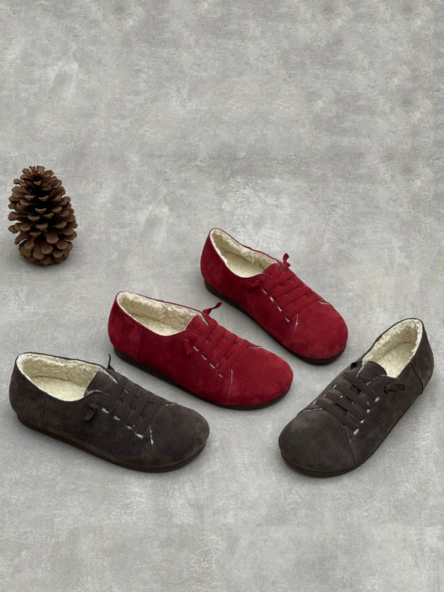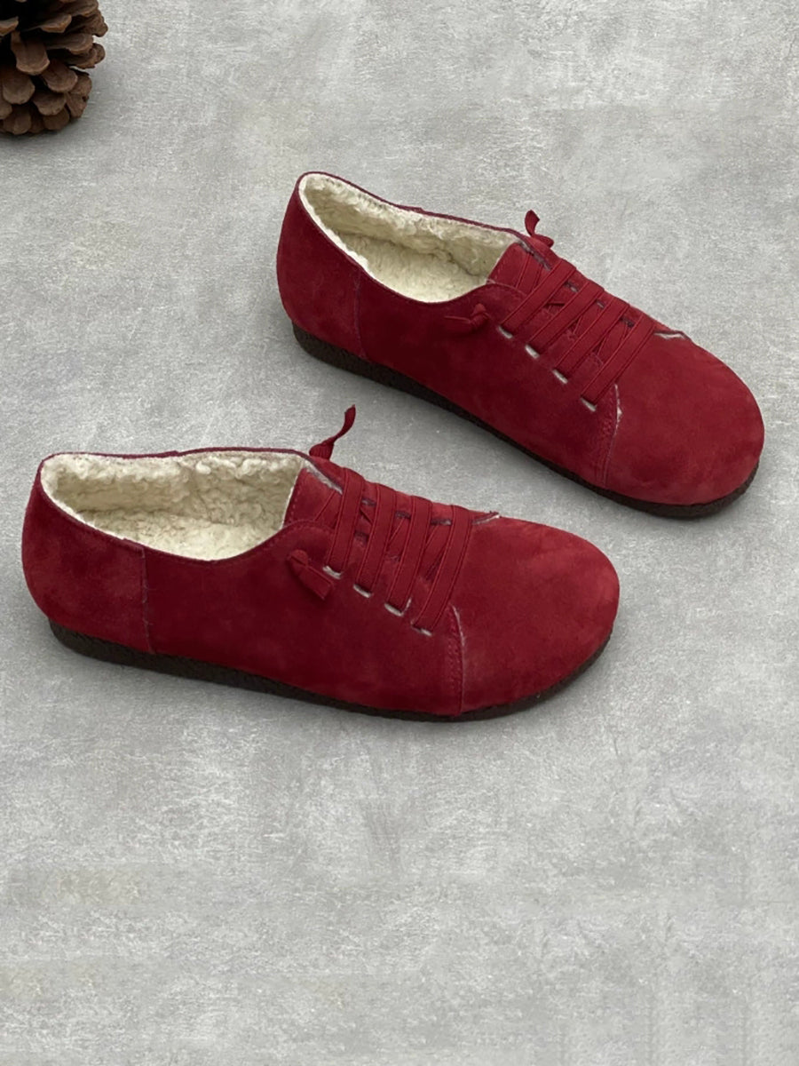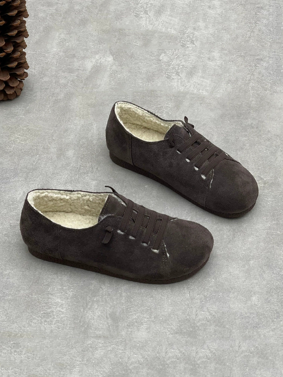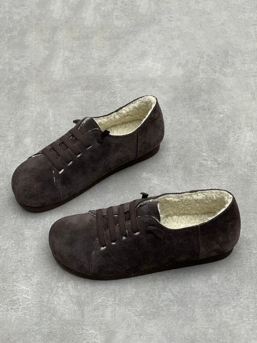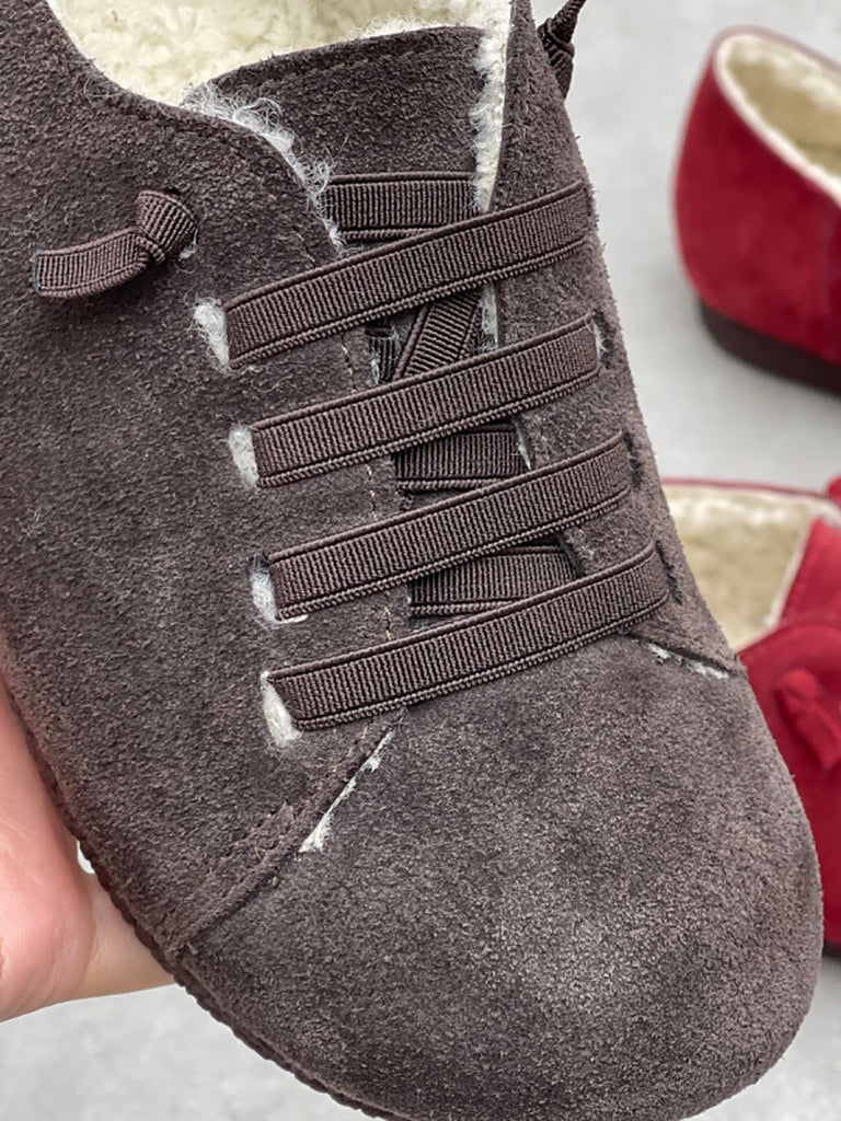 Zapatos vintage de piel auténtica con forro polar para mujer