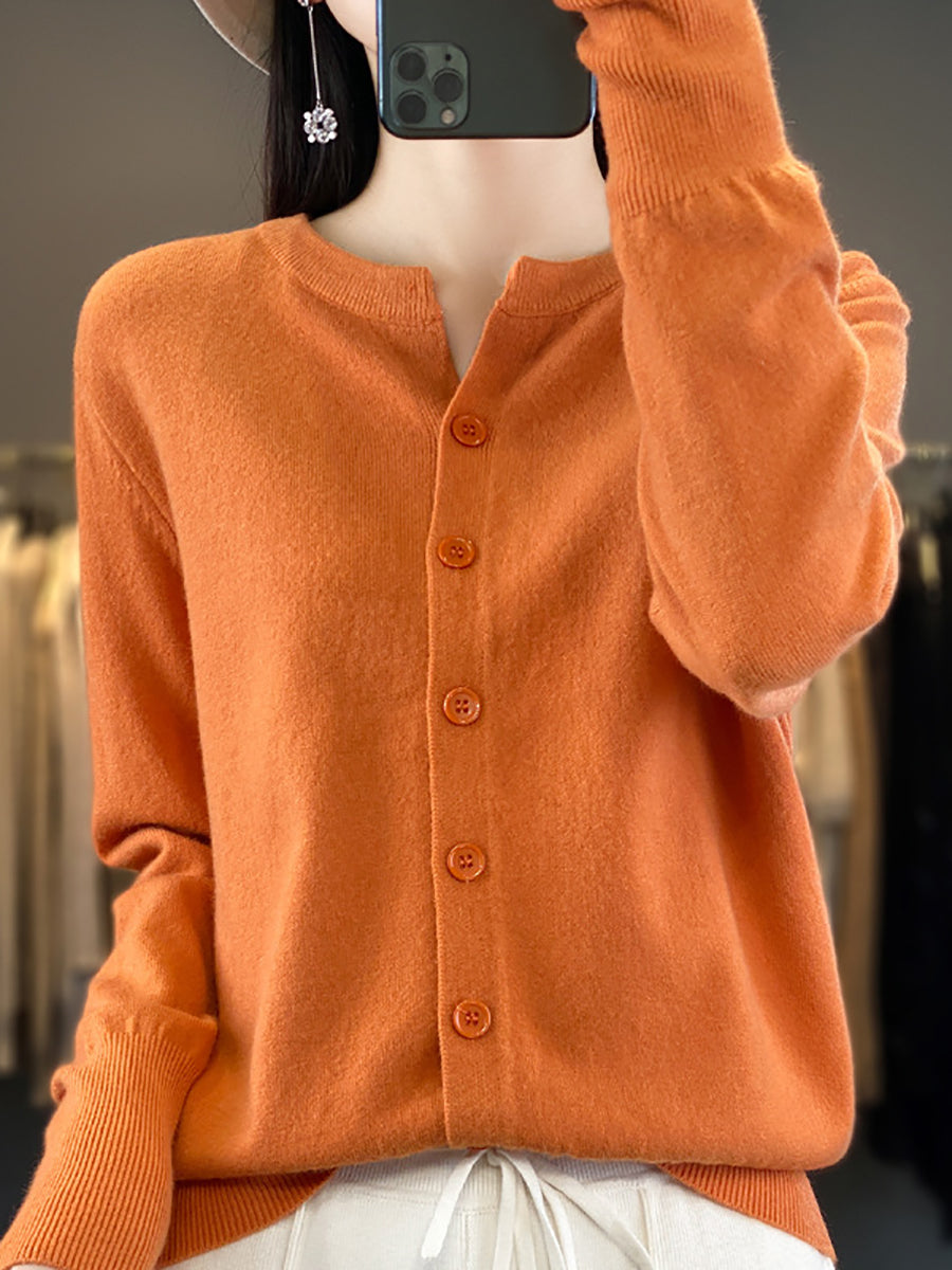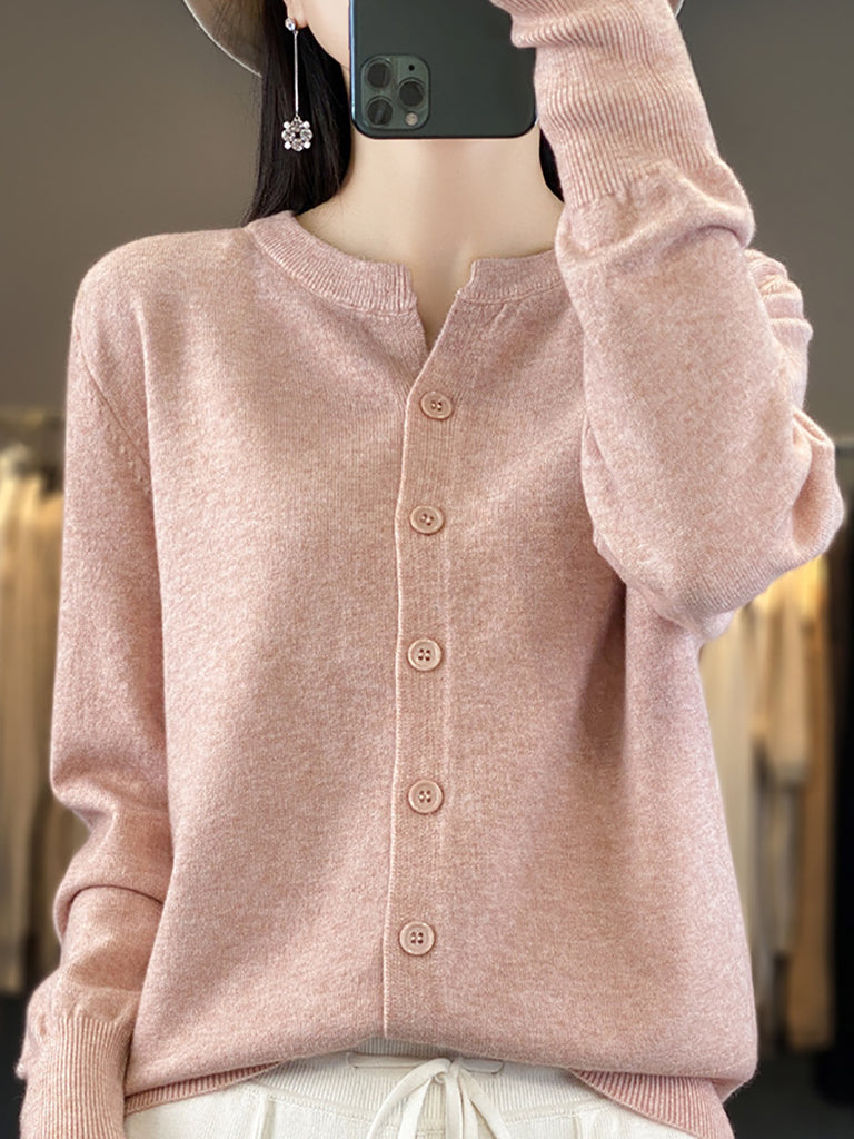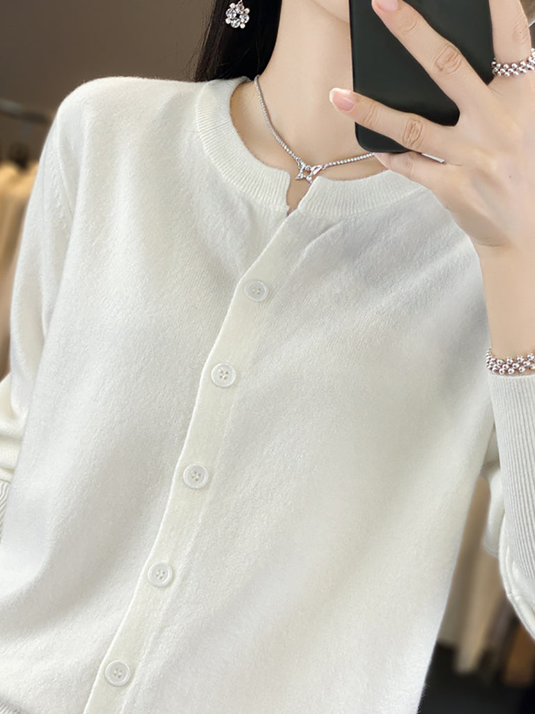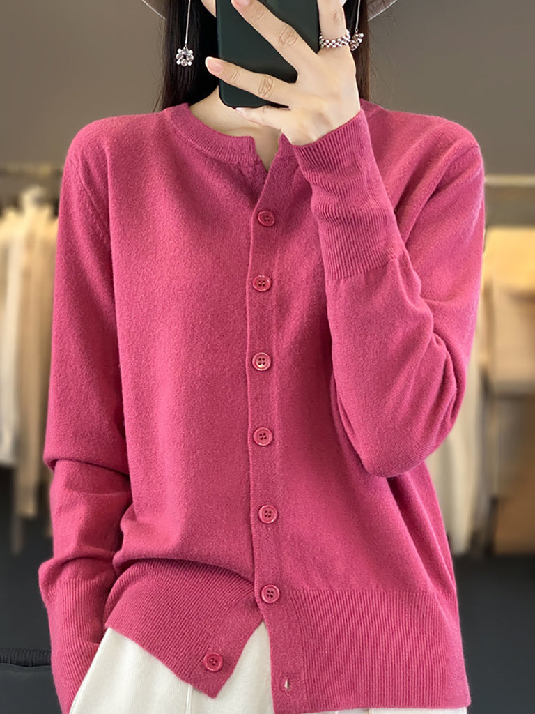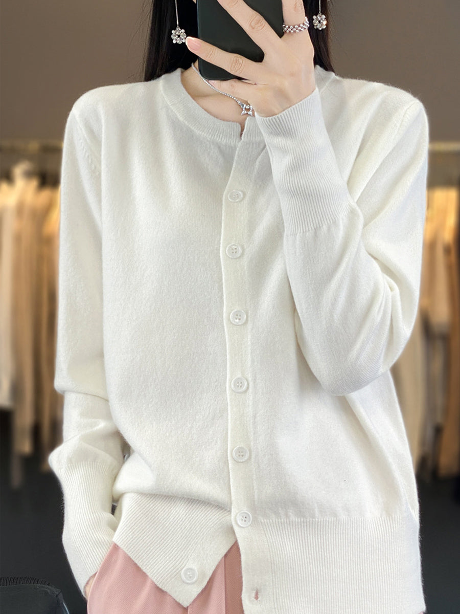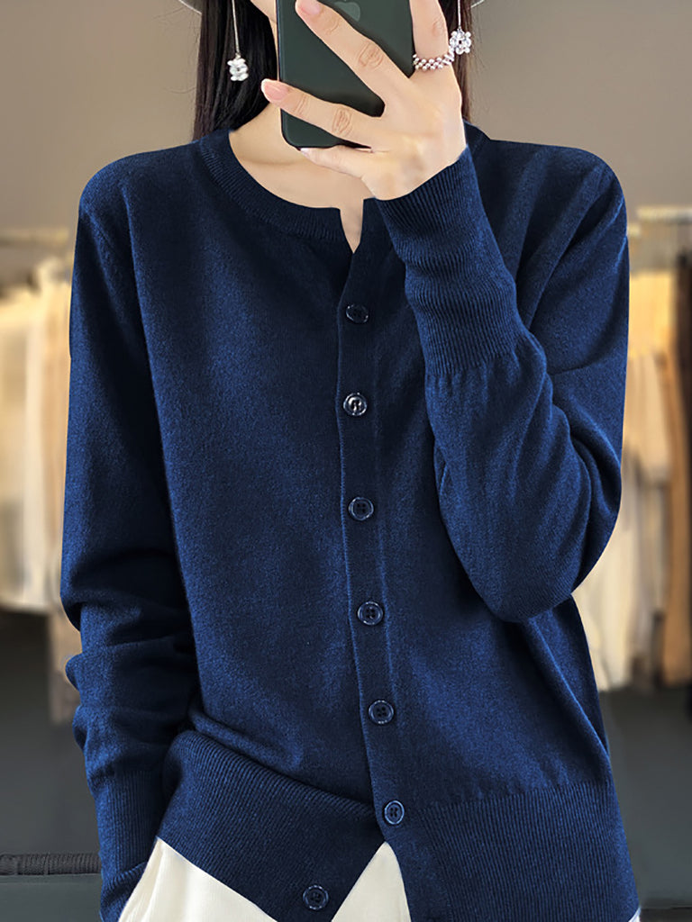 Suéter de punto de cuello redondo de color puro informal de invierno para mujer
